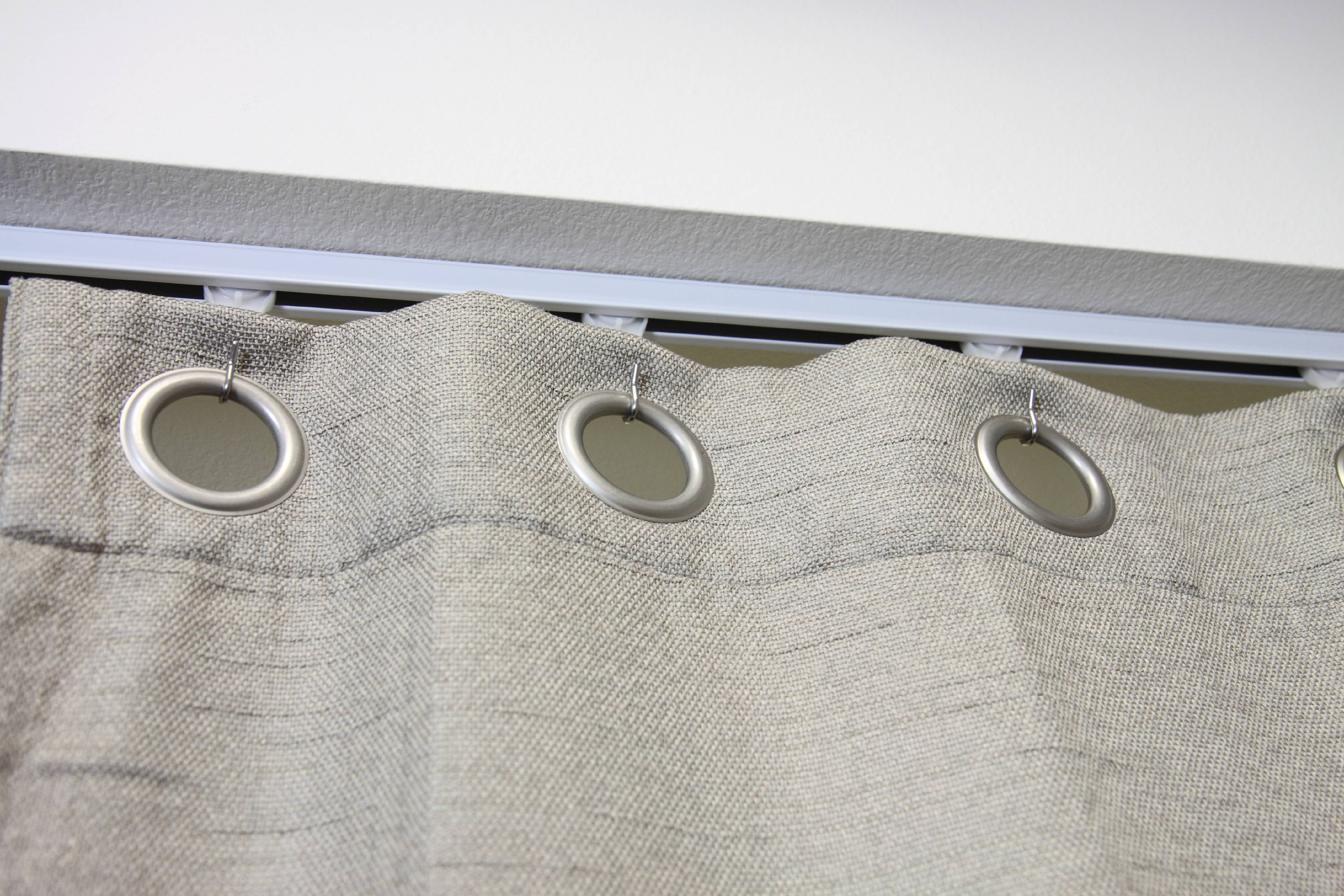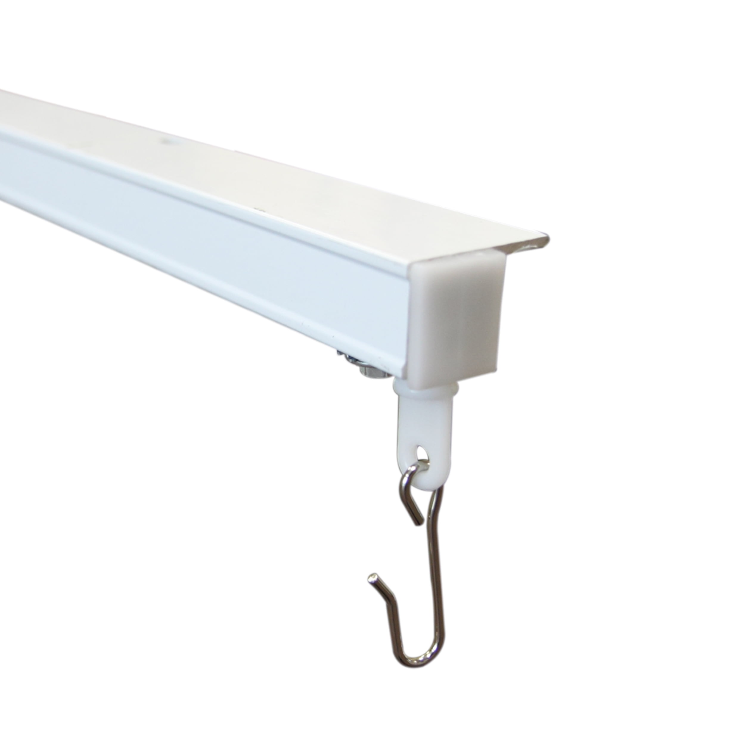 Includes three 8ft white aluminum ceiling track, 40 ball bearing sliders with stainless steel hooks, end caps, and mounting hardware. Curtain is NOT Included Track is 3/4 inch tall and 1-1/8 inch wide, which includes mounting flange 1/2 inch wide Installation instructions included