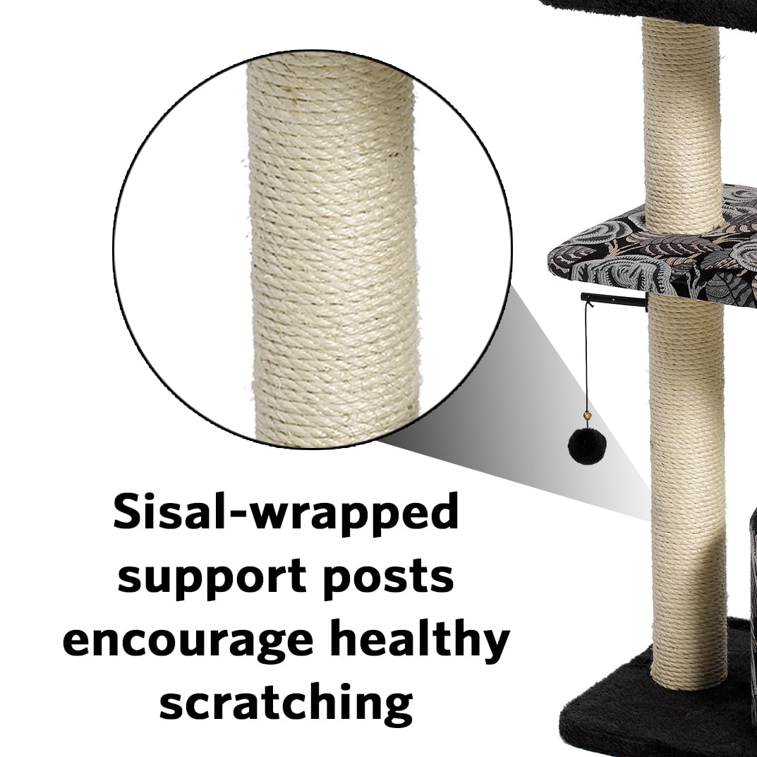 Midwest Cat Furniture in Tower Style: Sturdy cat activity tree w/ multi-tier design | Cat furniture measures 22L x 15W x 50.5H Inches Strong 5 tier, multi-level cat activity tree featuring ultra-soft faux fur w/designer print fabric Cat tree features high-rise bolstered lounging perch, resting benches w/ sisal-wrapped supports & cubby retreat Sisal-wrapped supports provide a tough, resilient scratching post for your cat’s scratching needs Easy assembly sturdy cat tree with all tools included | 1-year MidWest Quality Guarantee