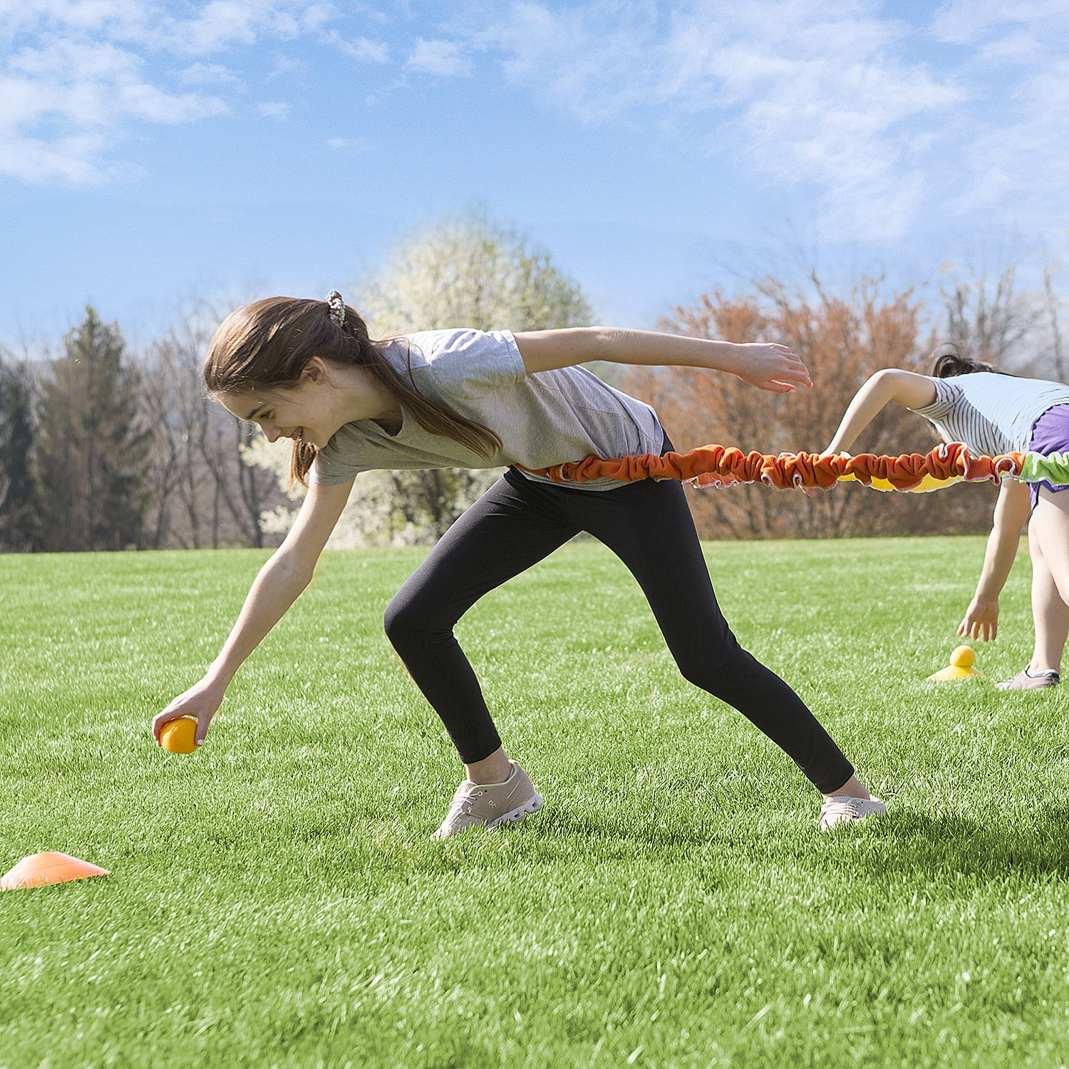 Fun, multi-player twist on the classic game of tug-of-war 14′ circ. strong elastic latex tube is covered with a multi-colored fleece fabric for comfort Includes four cones and four balls for multiple play possibilities (game suggestions included), and storage bag for portability Skill-building play: Competitive and exciting game builds strength, agility and coordination Perfect active outdoor activity for birthday parties, family picnics or summer camp