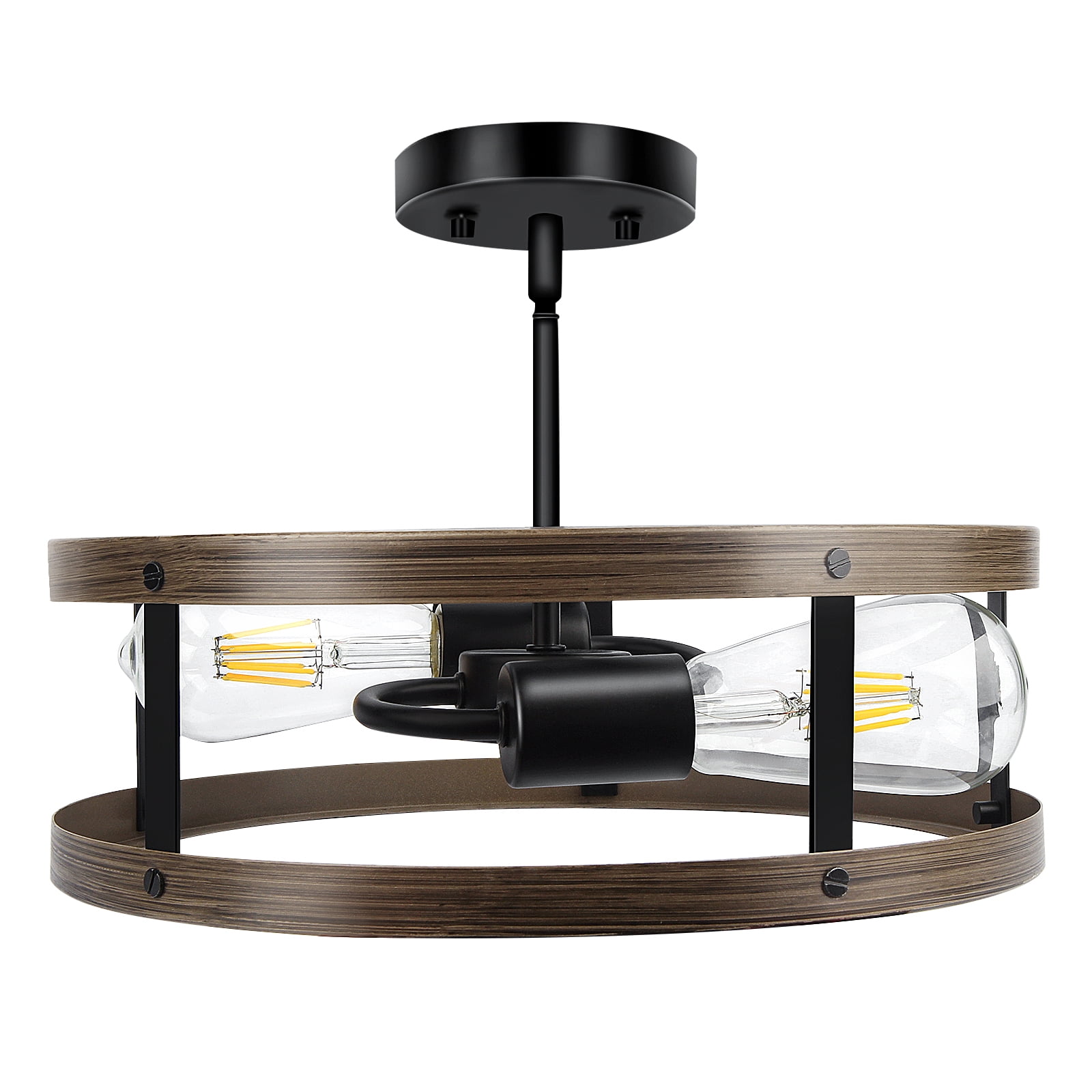 MultiEase 2-Light Retro Semi Flush Mount Ceiling Light Fixture, Black Metal