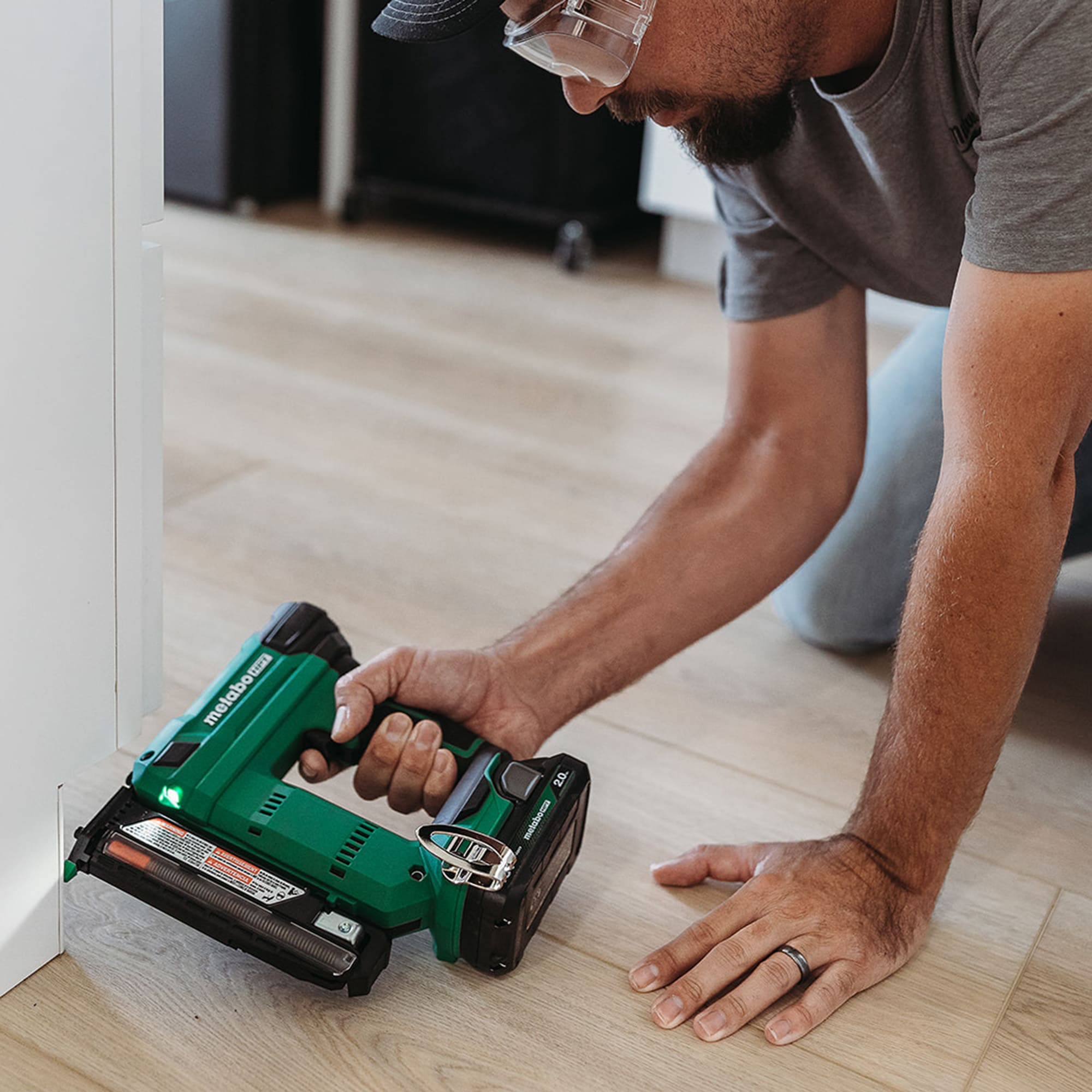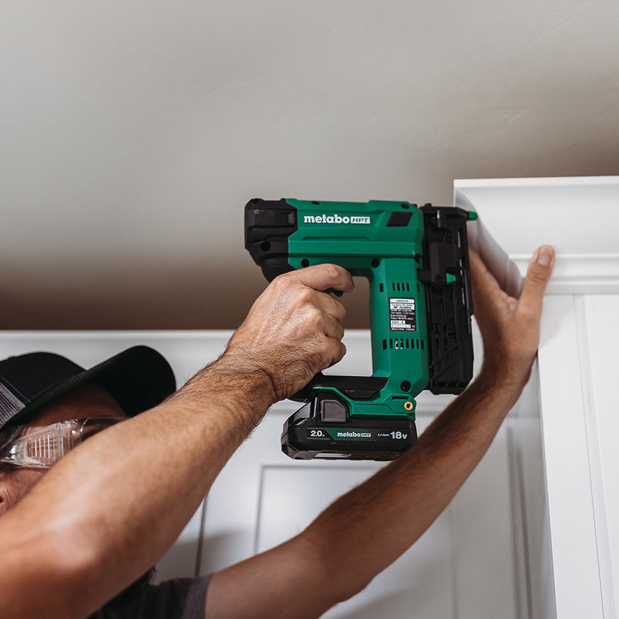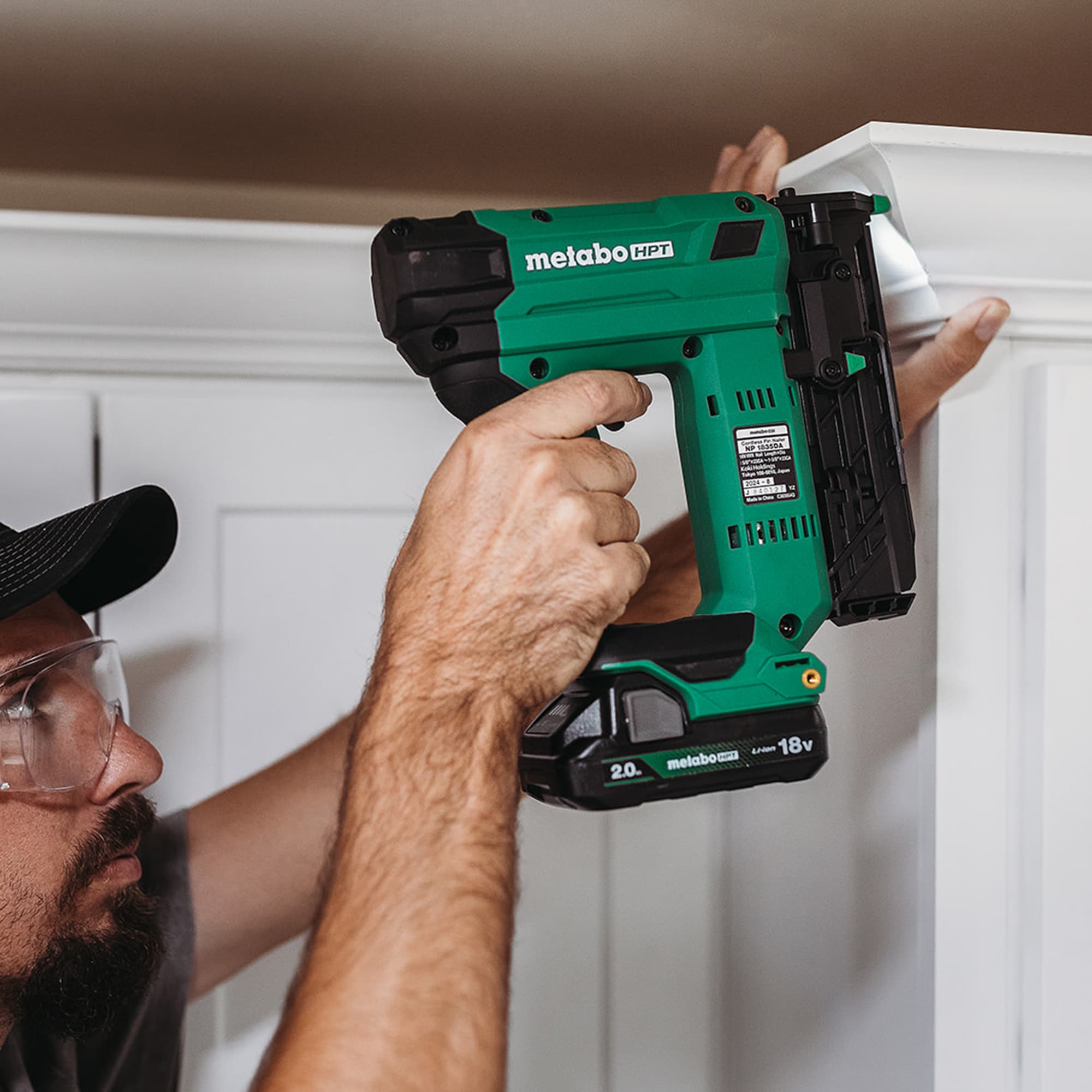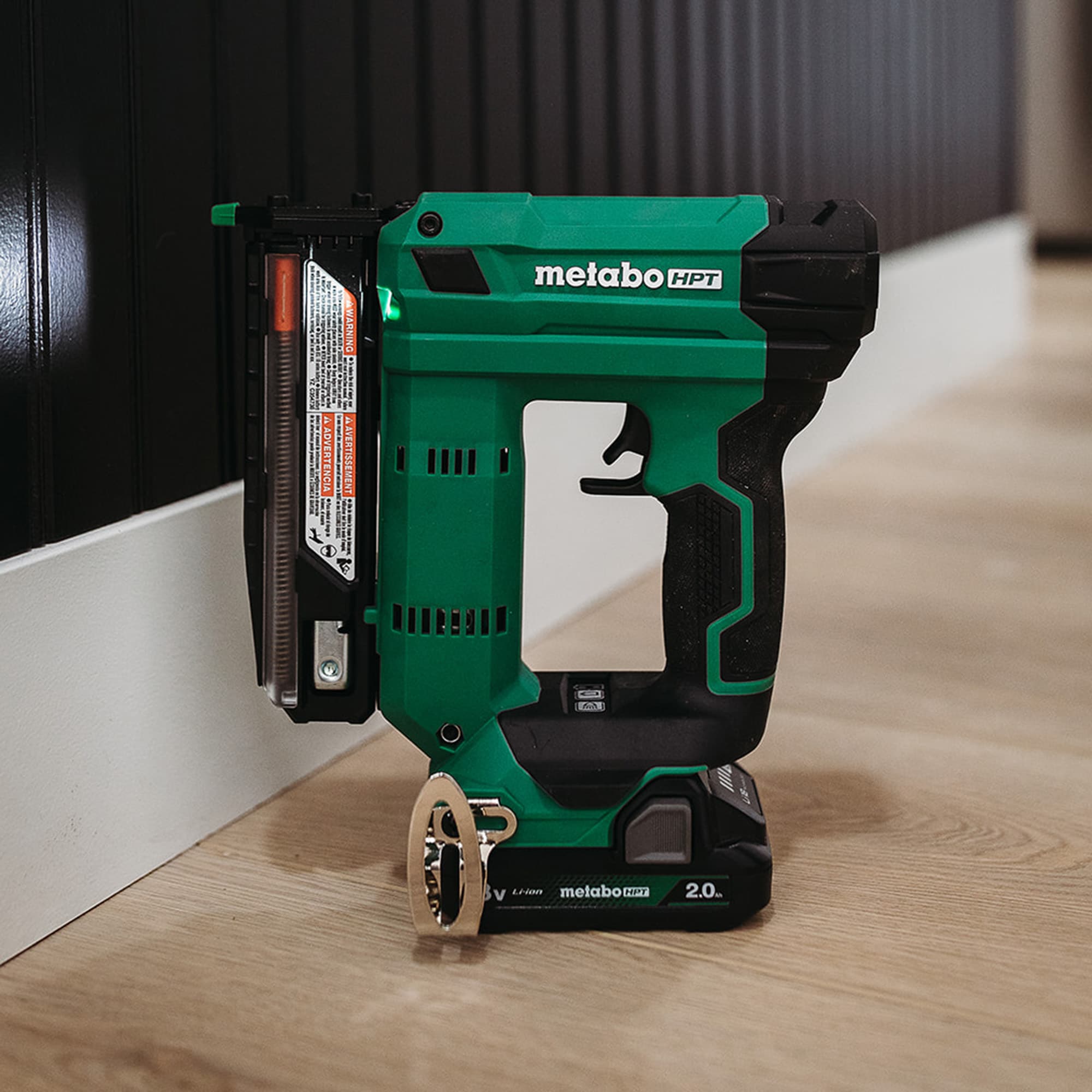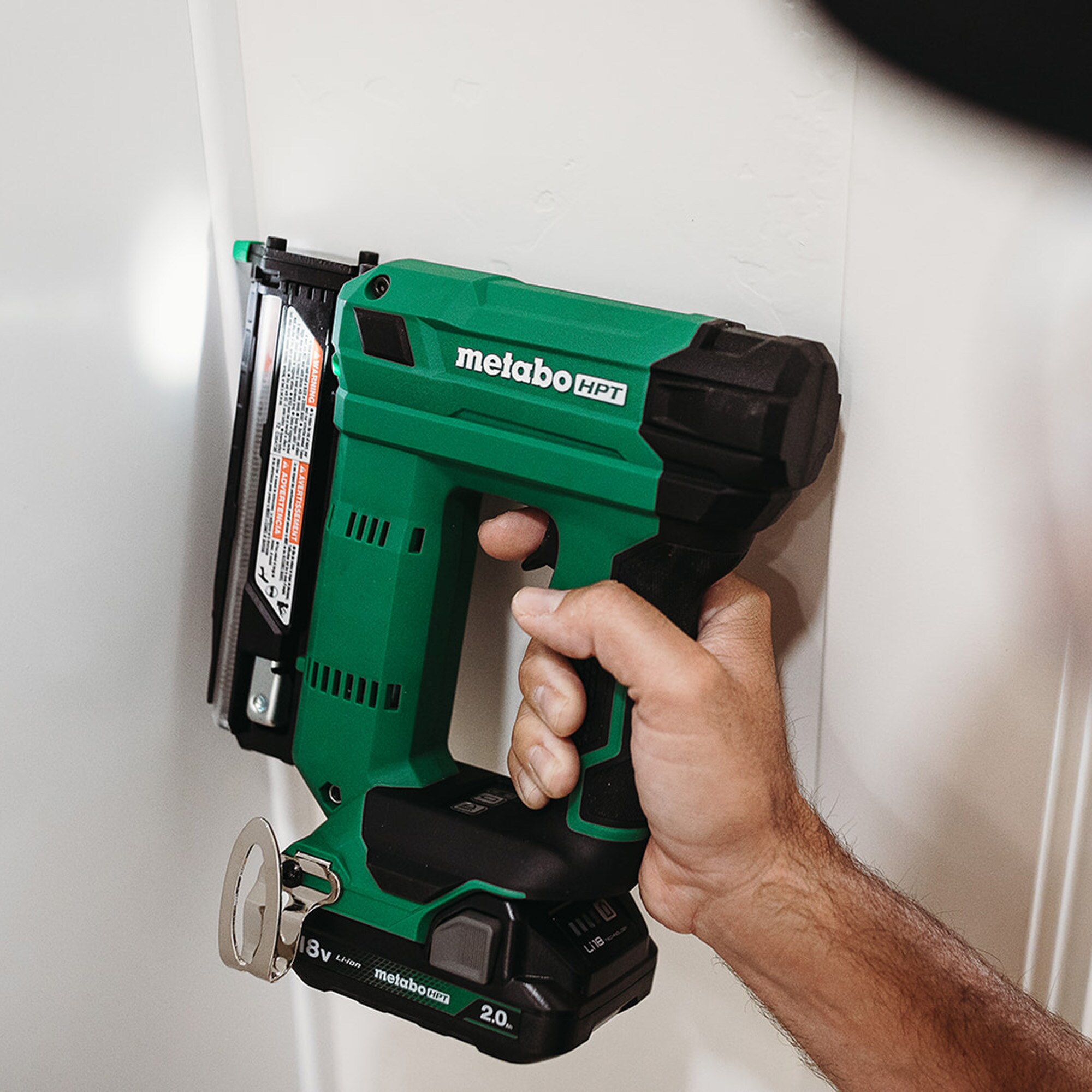 The Pro Preferred Brand of Pneumatic Nailers introduces the ALL NEW for 2024 18V MultiVolt Cordless Compact 23-Gauge Compact Pin Nailer – model NT1835DAM that takes fine finish carpentry to the next level. The included 2.0Ah battery with fuel gauge can drive up to 2,700 pins per charge for complete project efficiency. With this cordless nailer you no longer have to worry about hoses and compressors for your 23-Gauge pin nailer needs. Metabo HPT is proud to build upon its strong pneumatic heritage and offer a professional cordless option. The NT1835DAM equipped with a built-in counterweight that virtually eliminates all recoil while reducing the force needed to actuate the tool. It also features a no-push work contact safety tip that reduces marring and provides a clean finish. The dual trigger actuation mode also provides an extra measure of precision and safety. Additional features include a tool-less depth of drive adjustment, dry-fire lockout, belt hook, soft grip handle, LED light and tool body rubber bumpers. The NT1835DAM 18V Cordless Compact 23-Gauge Pin Nailer is a part of the expanding MultiVolt System of 18-Volt and 36-Volt power tools from Metabo HPT. GO lighter with 18V batteries or GO longer with the unique MultiVolt battery that works on both 18V and 36V tools to double your runtime for up to 8.0Ah of runtime per charge for more power on the GO.