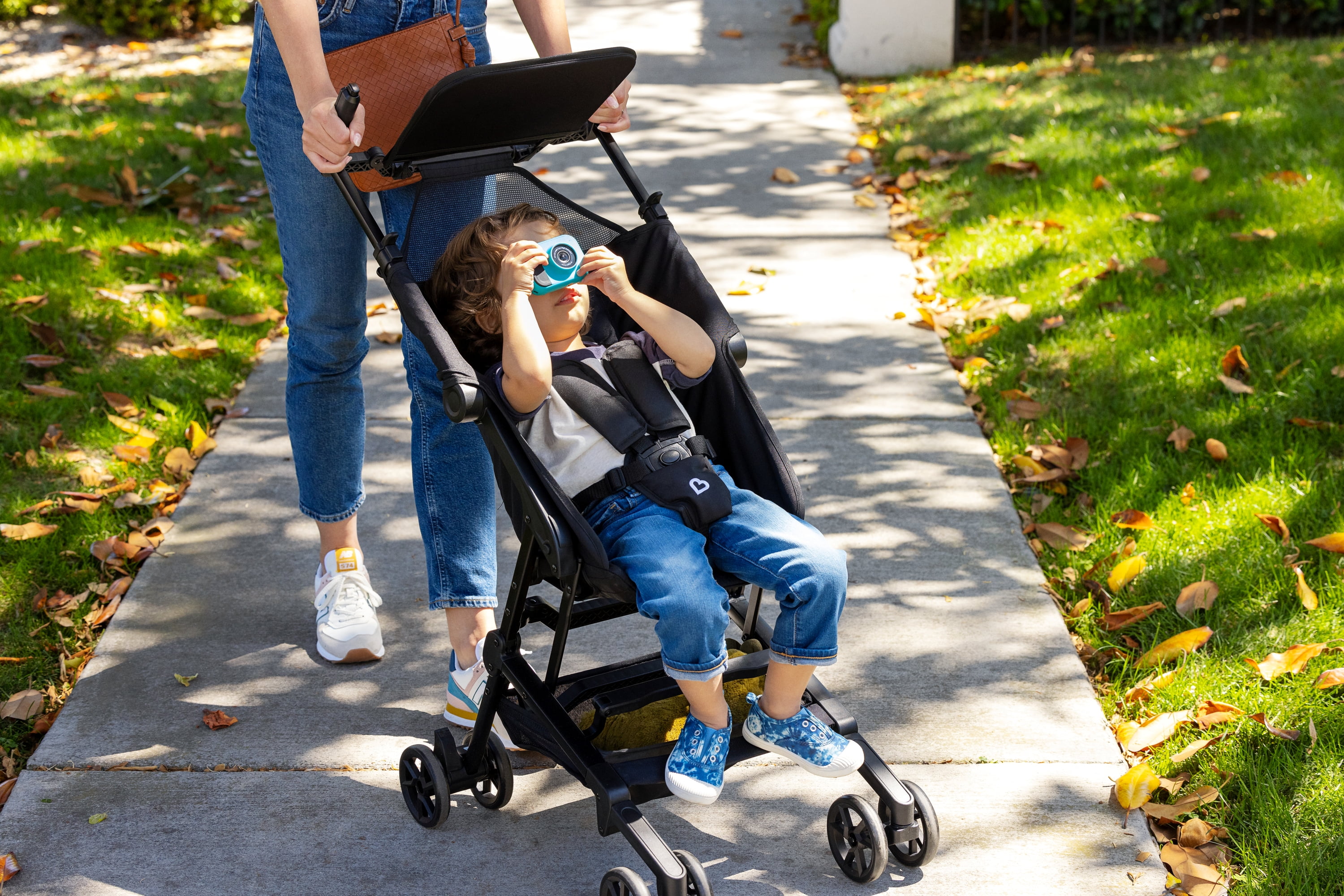 Lightweight collapsible stroller for families on the go Small enough to fit most overhead airplane bins Includes 5-point harness & modern carrying case for easy packing Mesh headrest keeps little ones comfy and cool Includes sun shade and basket for convenience No assembly required – just unfold and go! Measures only 15″ x 14″ x 6.25″ when folded and is under 13lbs. Safe for babies and toddlers up to 55 lbs./25 kg and 41 in/104 cm who can sit upright unassisted Black Unisex