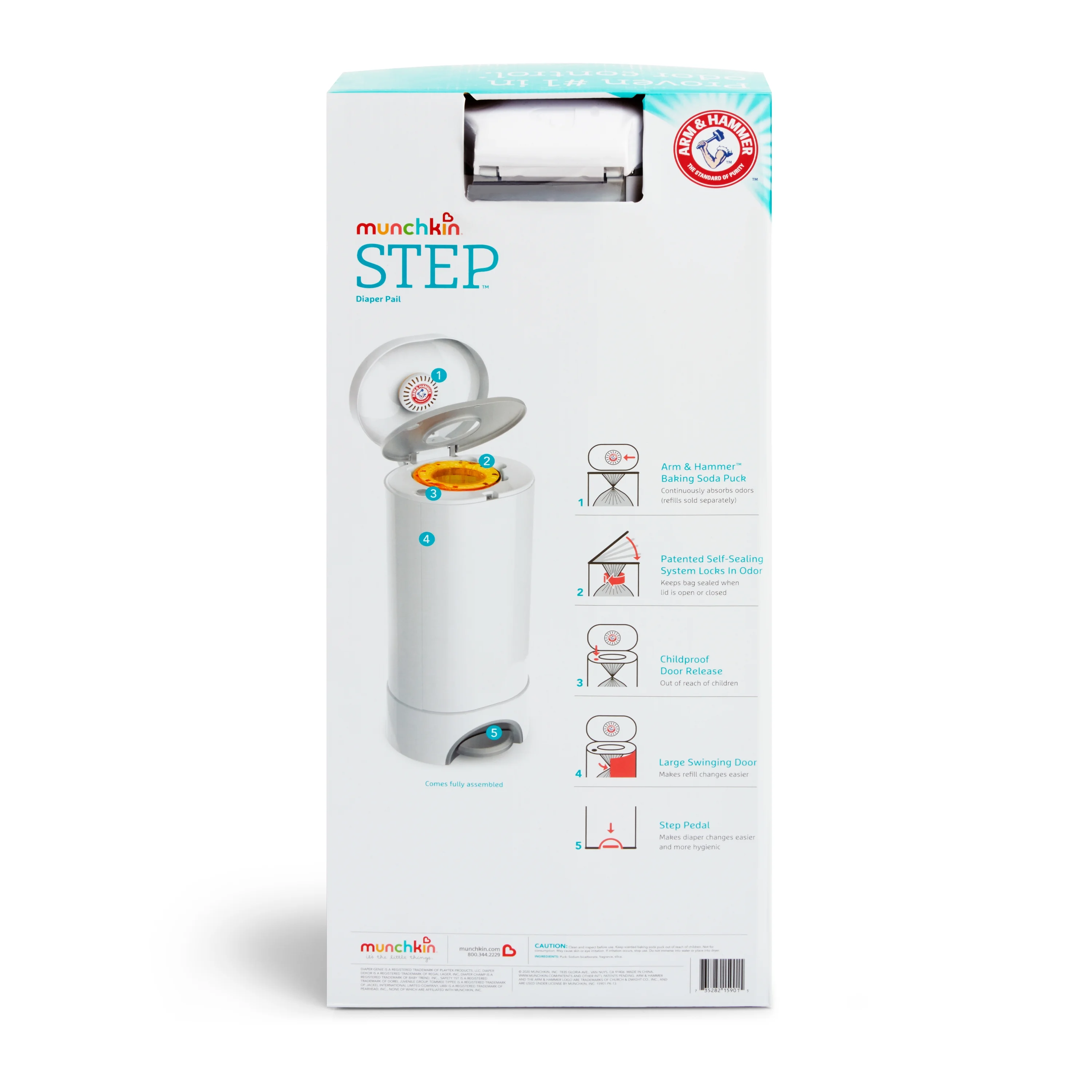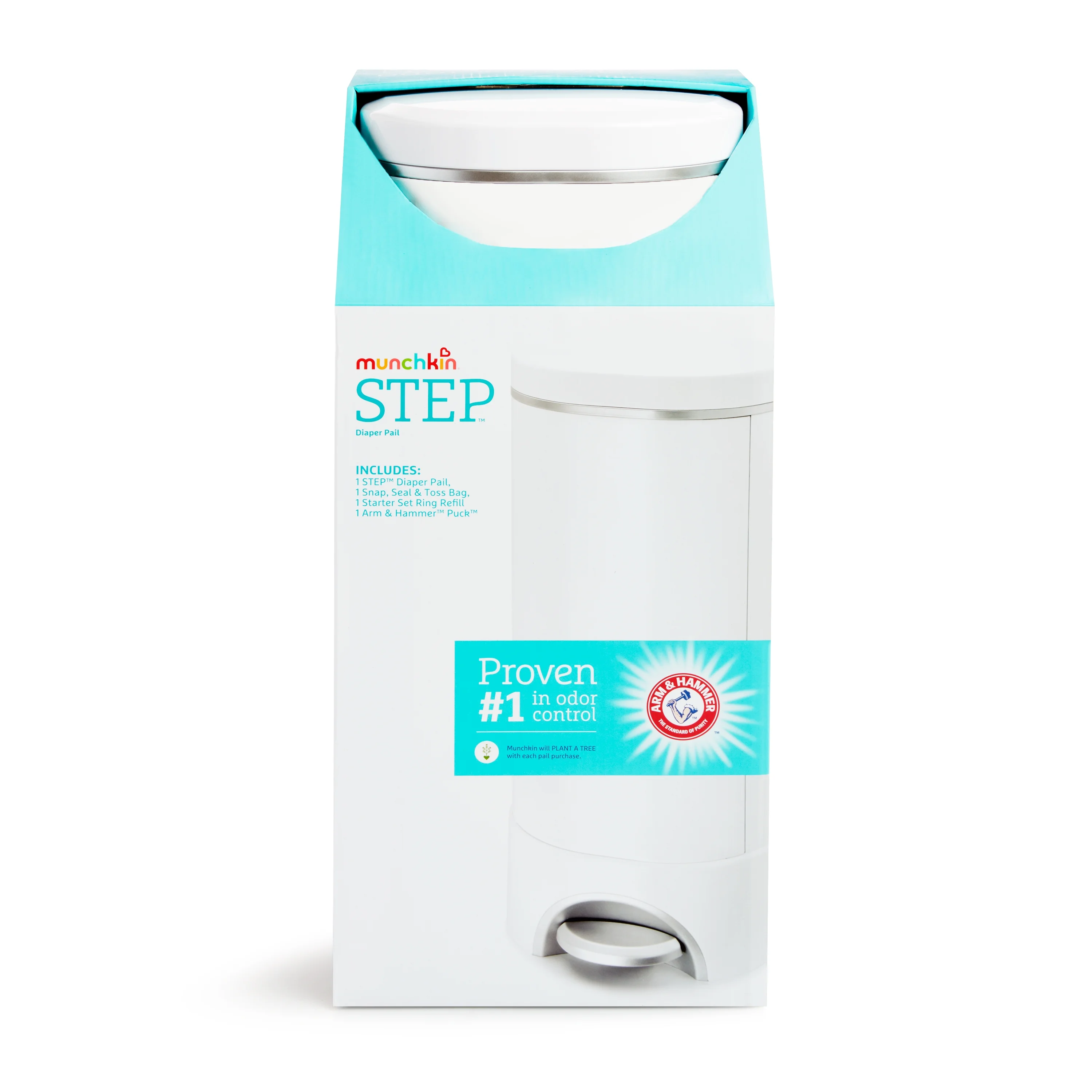 Munchkin® STEP™ Infant Diaper Pail, Powered by Arm & Hammer™, #1 in Odor Control, Hands Free, White