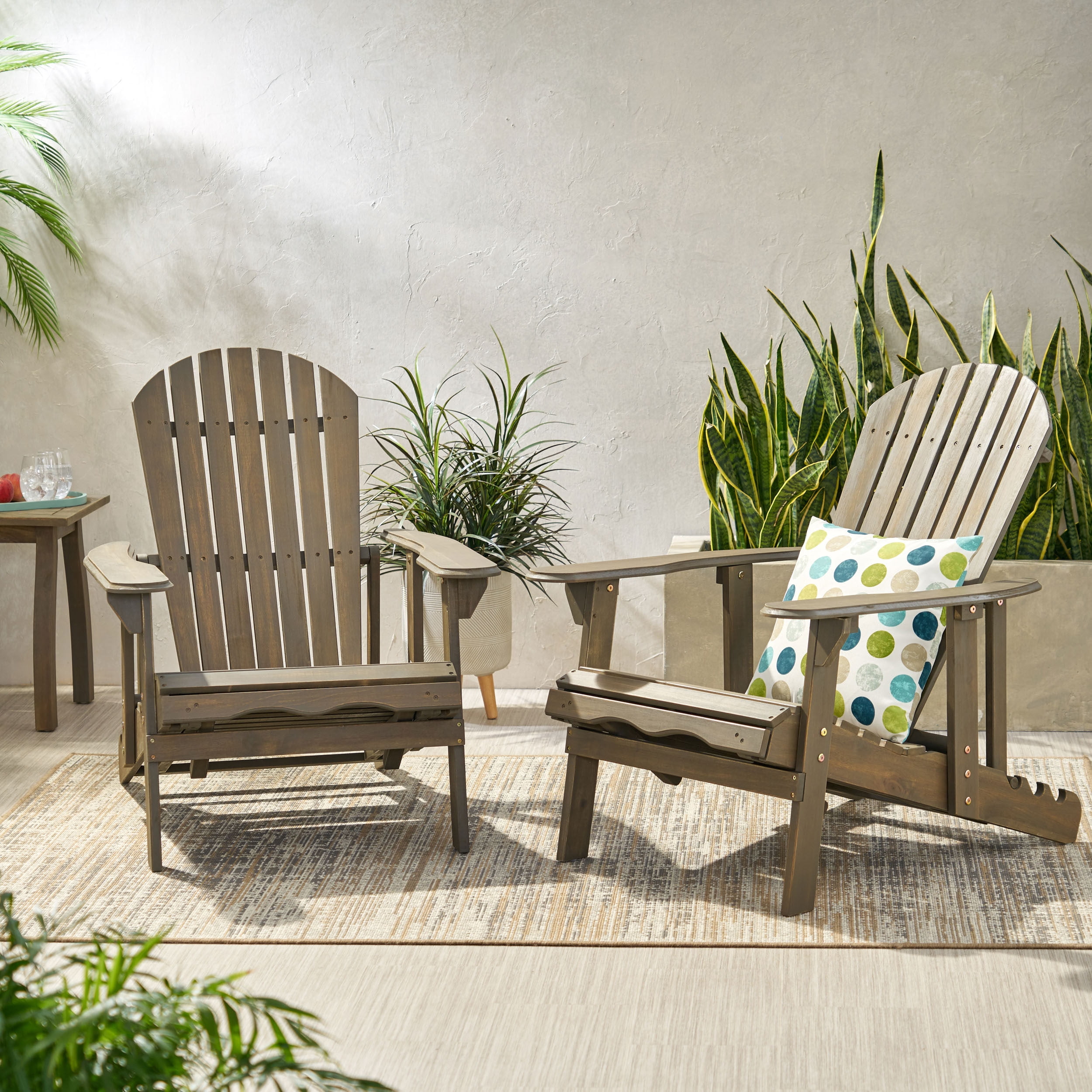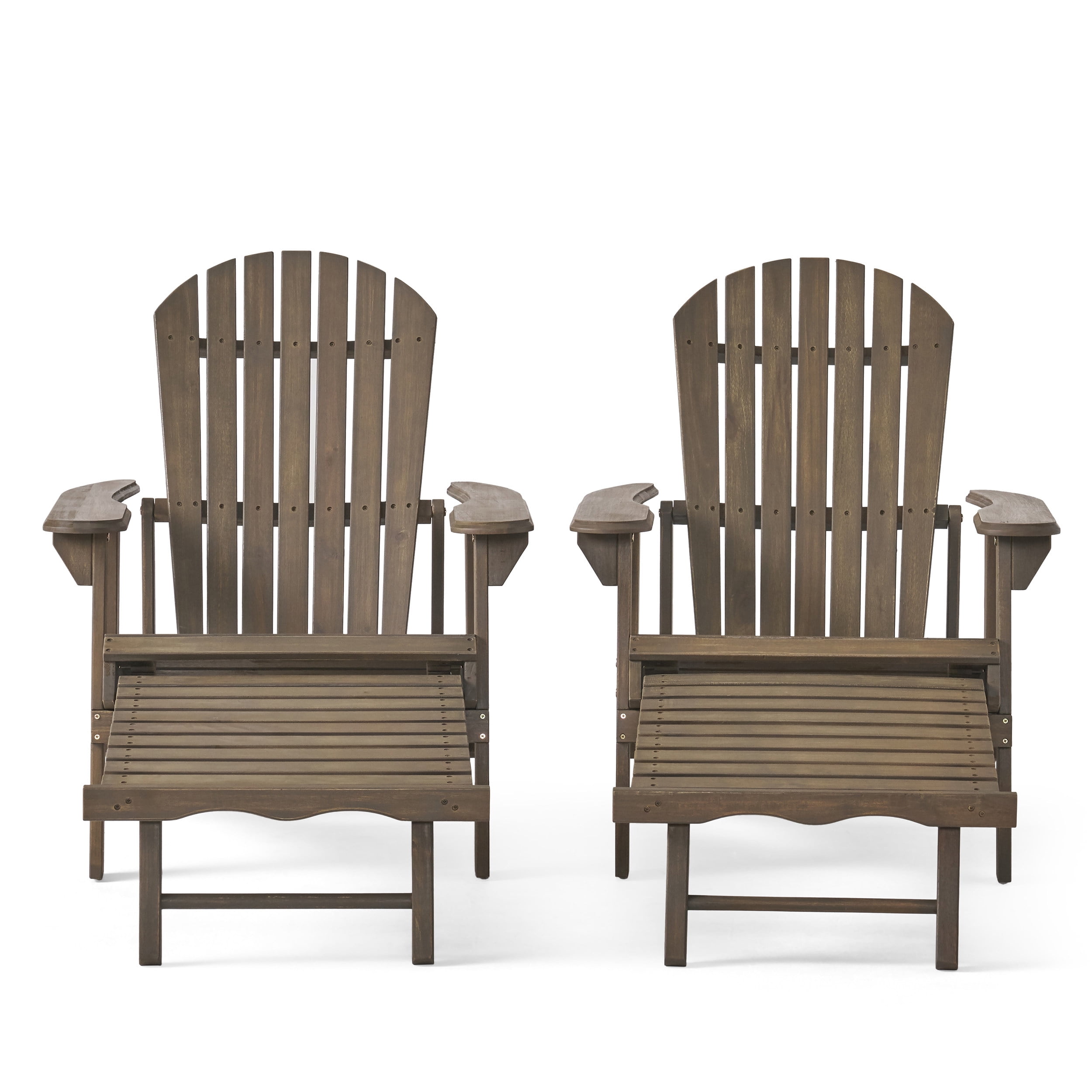 Munoz Reclining Wood Adirondack Chair with Footrest, Set of 2, Grey