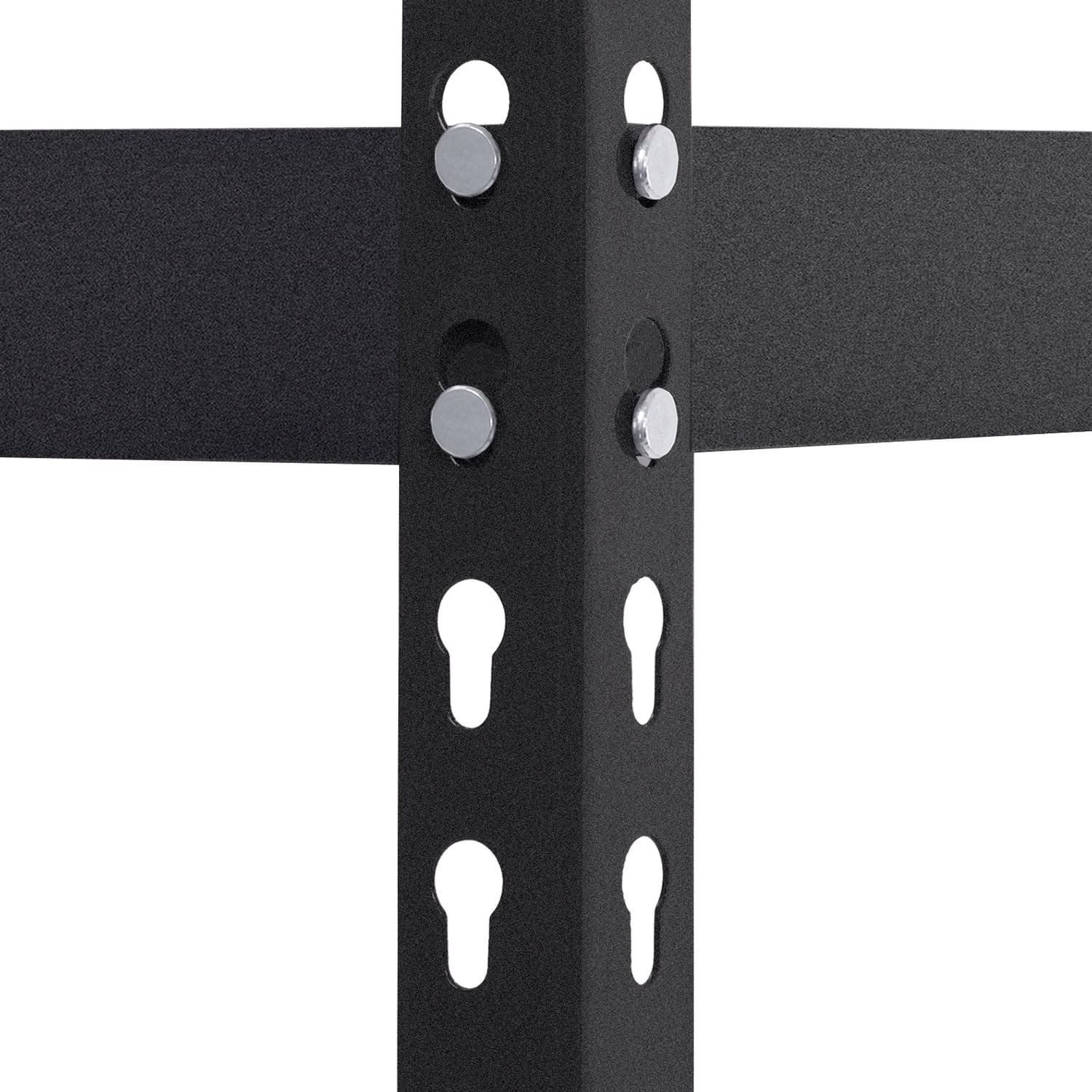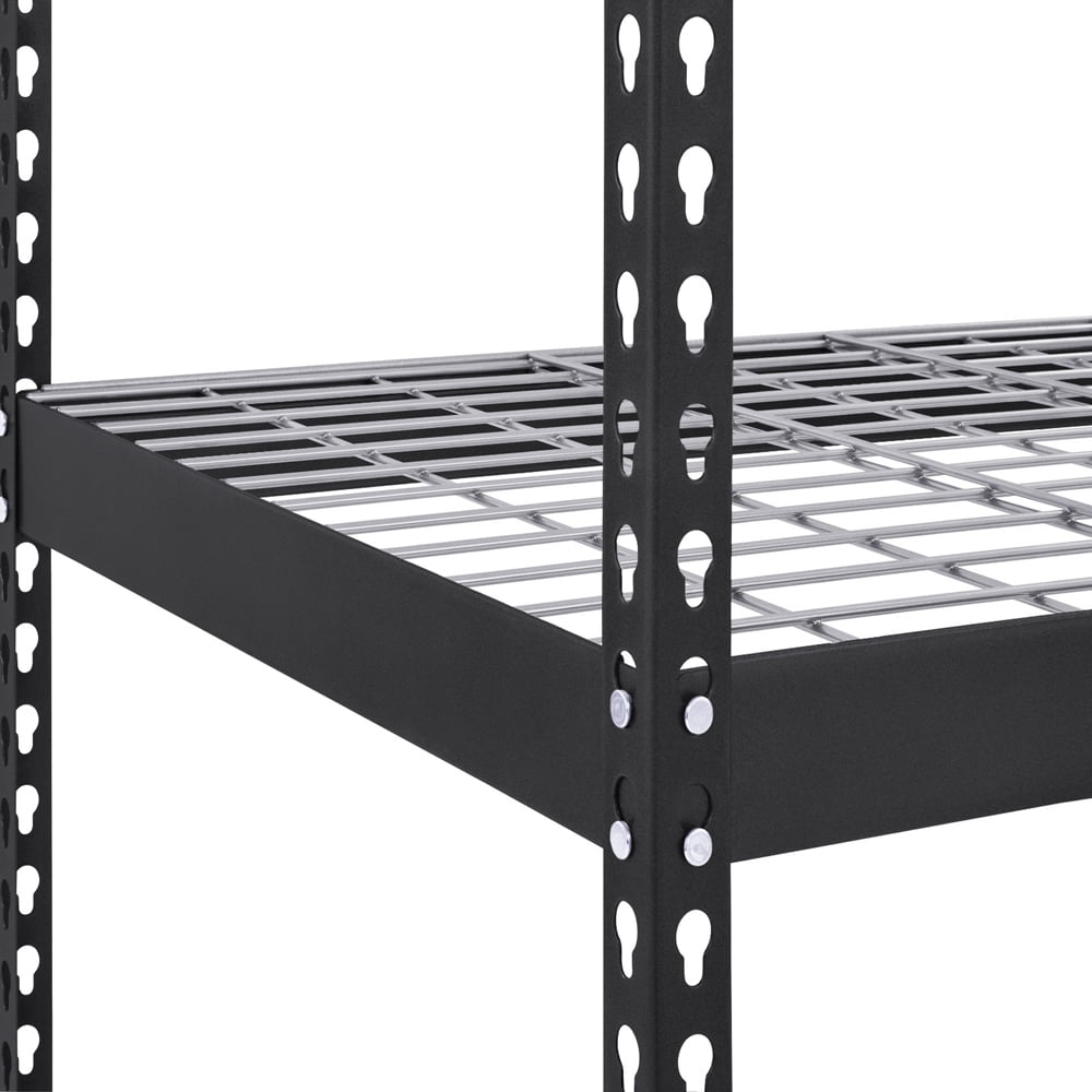 Adjustable 5 shelf unit can handle the weight of whatever you need to store while adapting to your space Each shelf has a 1,000-pound weight capacity that can support a stocked closet’s worth of items Industrial-strength black baked enamel steel frame won’t’ corrode, lengthening this shelf’s lifespan Adjustable steel shelves can be moved up or down in 1.5-inch increments Ideal for organizing toys in your home, sporting equipment in your garage, file boxes in your office, and so much more Material: Steel Dimensions (W x D x H): 48 x 24 x 72 inches Weight: 73 pounds