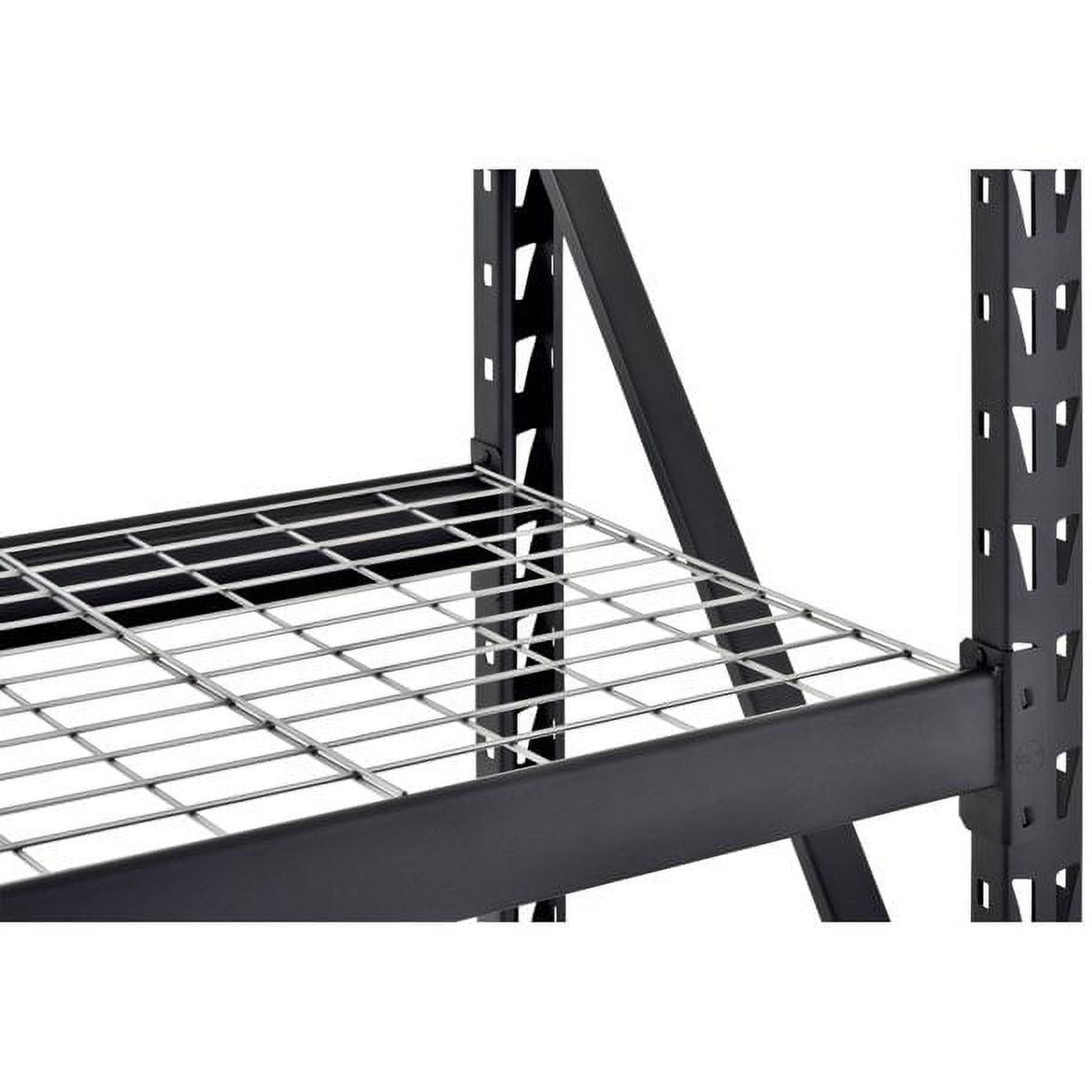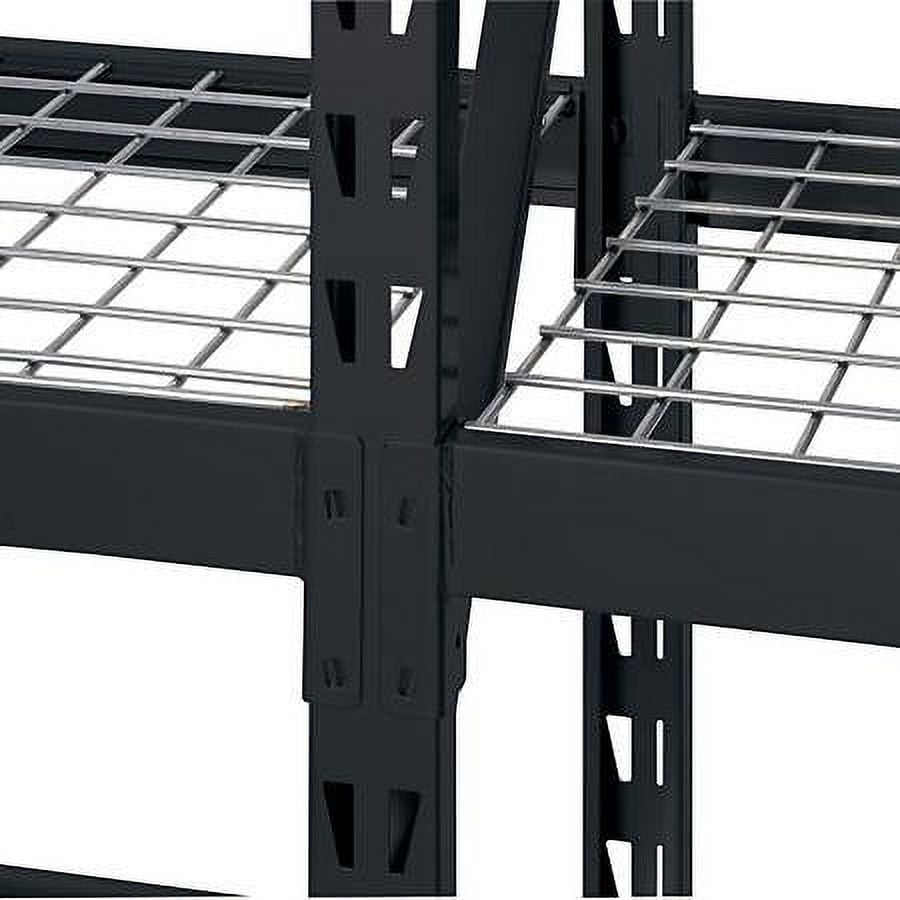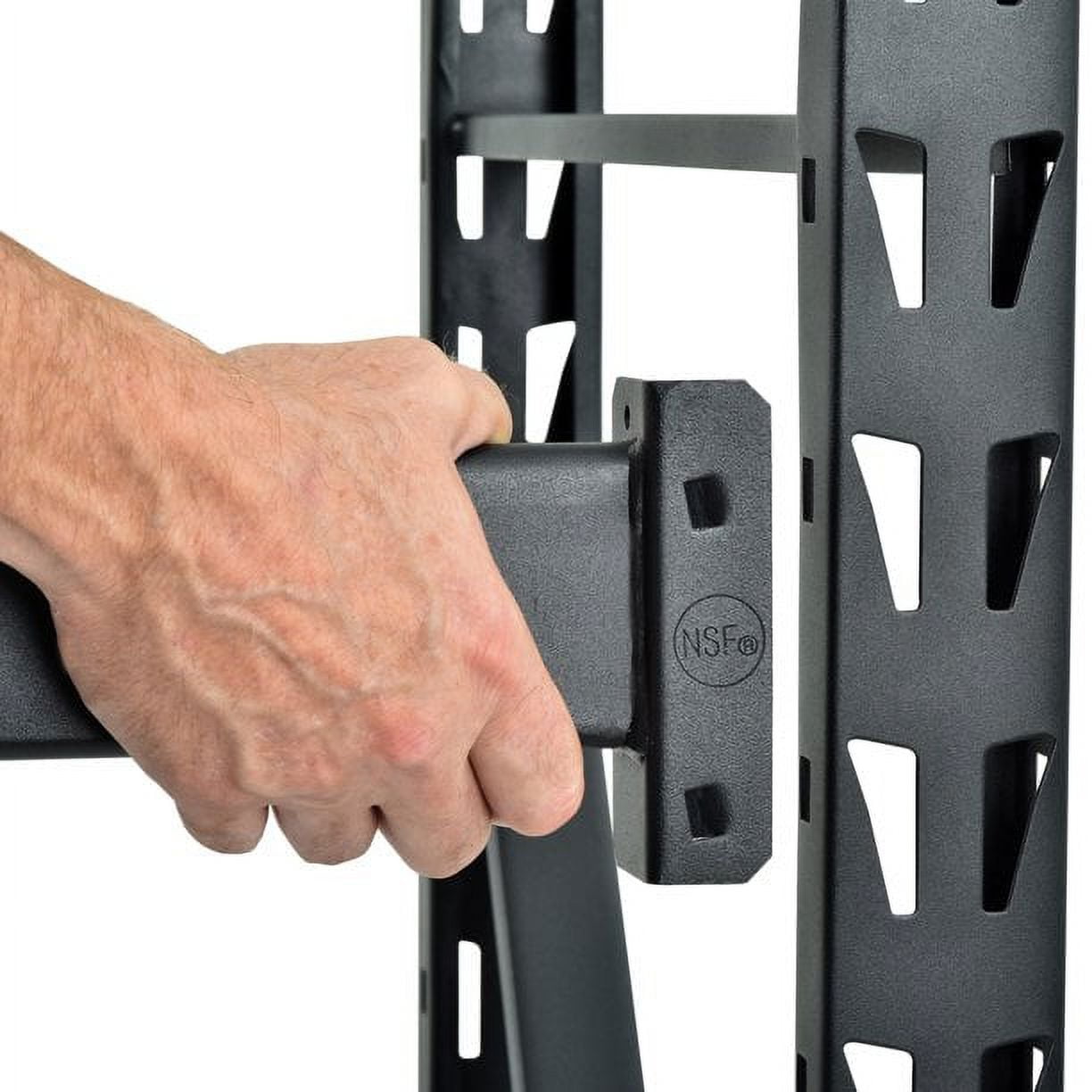 Boltless 4-shelf steel storage rack supports up to 6,000 pounds of evenly distributed weight (1,500 pounds per shelf) Heavy-gauge welded steel frames provide easy set-up and dependable strength and stability Perfect for organizing your basement, garage, workshop, office, or anywhere you need a heavy-duty durable storage solution Black powder coat finish resists abrasion, chipping, and corrosion for lasting strength and durability Dual locking system allows you to easily expand the shelf using additional shelving units Shelves are adjustable in 3″ increments NSF-approved for professional use Quick and easy to assembly (Rubber mallet recommended for assembly; sold separately.) Assembled size: 77″W x 24″D x 72″H