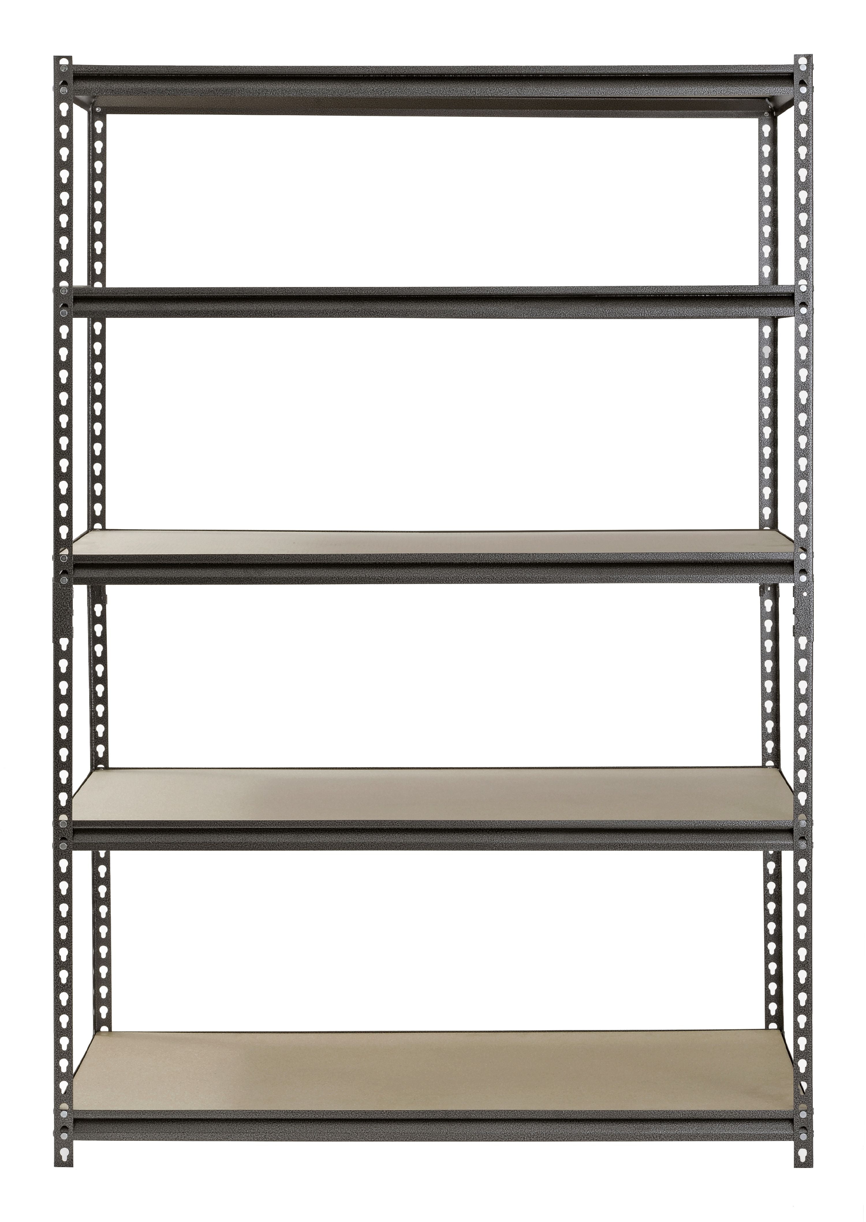 Muscle Rack 5-Shelf Steel Shelving, Silver-Vein, 48″W x 24″D x 72″H: Shelves are made of particle board Shelves supported by double-riveted beams and braces Adjust in 1-1/2″ increments Post connectors allow easy assembly in just minutes Rivet-lock design for boltless assembly Instructions included Rubber mallet recommended for assembly (sold separately) 2-piece post design for the vertical assembly of a single 72″H unit or for horizontal assembly of two 36″H units Muscle Rack shelving is built with industrial-grade steel construction for optimal durability and strength Z-beam design provides strength and rigidity Durable design Adjustable, metal 5-shelf storage rack shelves move easily for quick customization Model# UR482472PB5P-SV Muscle Rack 5-Shelf Steel Shelving, Silver-Vein, 48″W x 24″D x 72″H: Shelves are made of particle board Shelves supported by double-riveted beams and braces Adjust in 1-1/2″ increments Post connectors allow easy assembly in just minutes Rivet-lock design for boltless assembly Instructions included Rubber mallet recommended for assembly (sold separately) 2-piece post design for the vertical assembly of a single 72″H unit or for horizontal assembly of two 36″H units Muscle Rack shelving is built with industrial-grade steel construction for optimal durability and strength Z-beam design provides strength and rigidity Durable design Adjustable, metal 5-shelf storage rack shelves move easily for quick customization Model# UR482472PB5P-SV