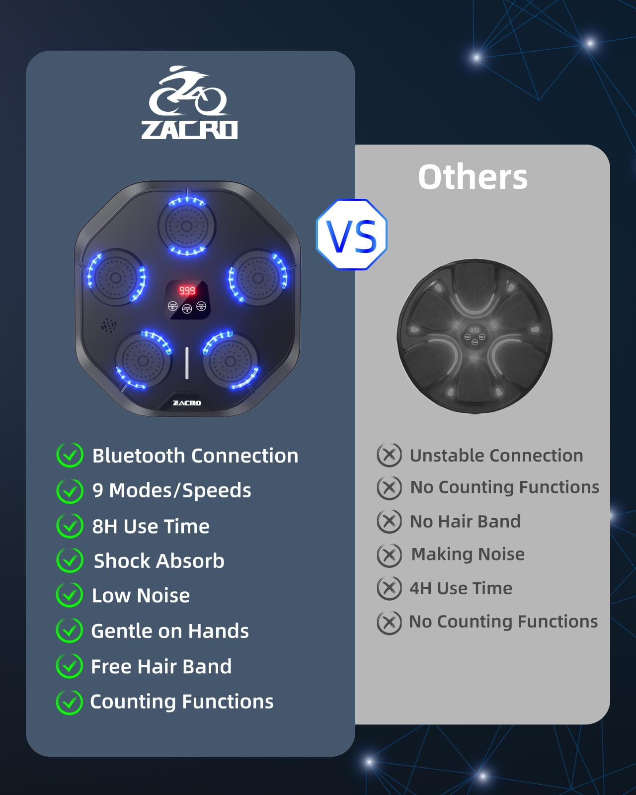 This Music Boxing Machineis the perfect professional training and daily workout tool for professional boxers, fitness professionals, dieters, kids, teens, office workers and more. With 9 training modes and speeds to suit all fitness levels, this musical boxing machine helps you create a professional workout in the comfort of your own home.Surround sound and dynamic lighting create an immersive training experience, and every boxing move is accompanied by a subtle and beautiful musical rhythm that releases stress and motivates you to box your way to fitness.