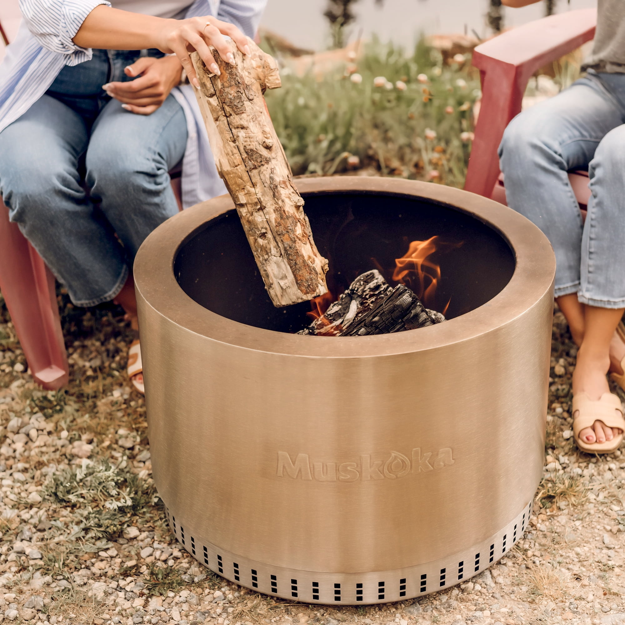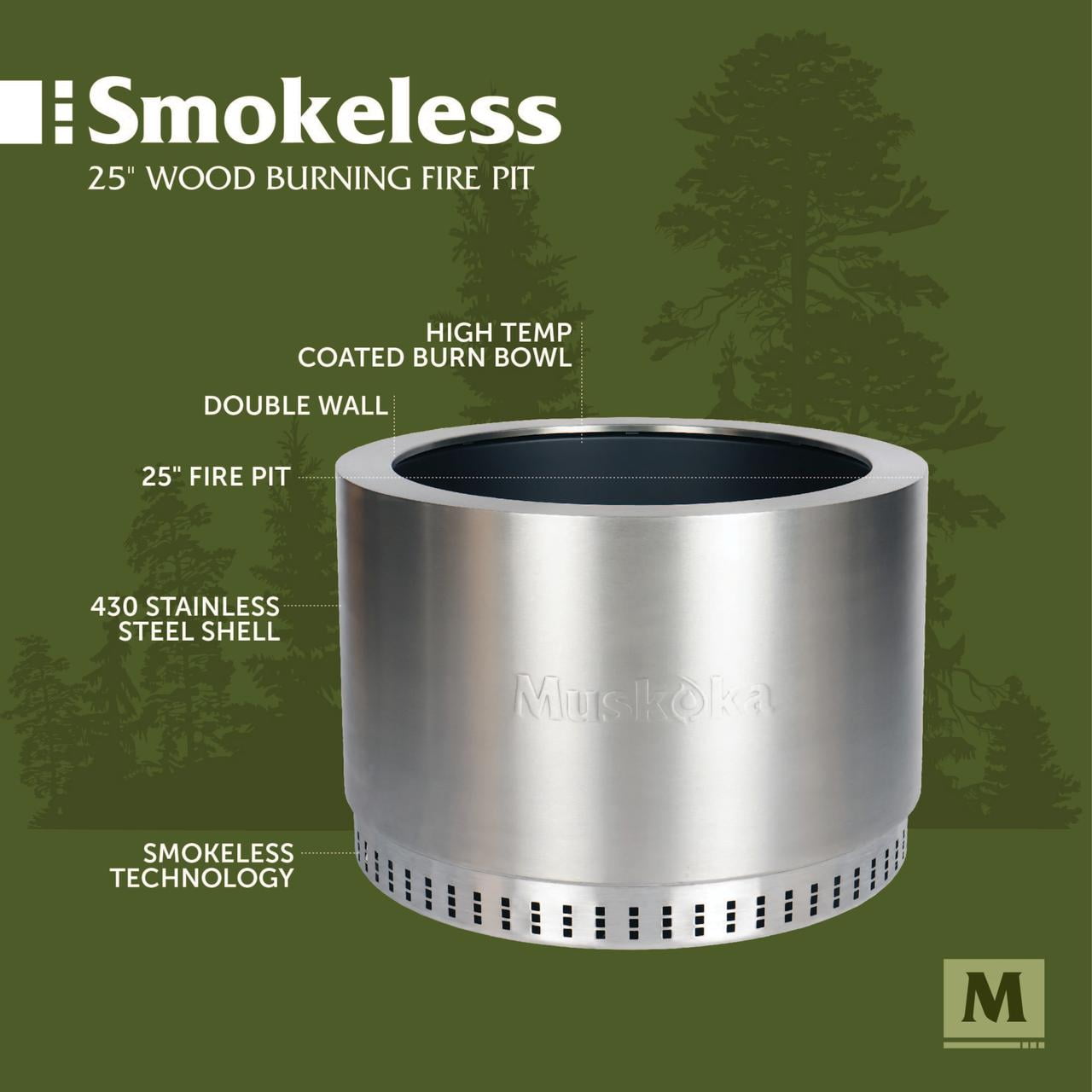 Muskoka 25″ Stainless Steel Smokeless Wood Burning Fire Pit with Protective Cover