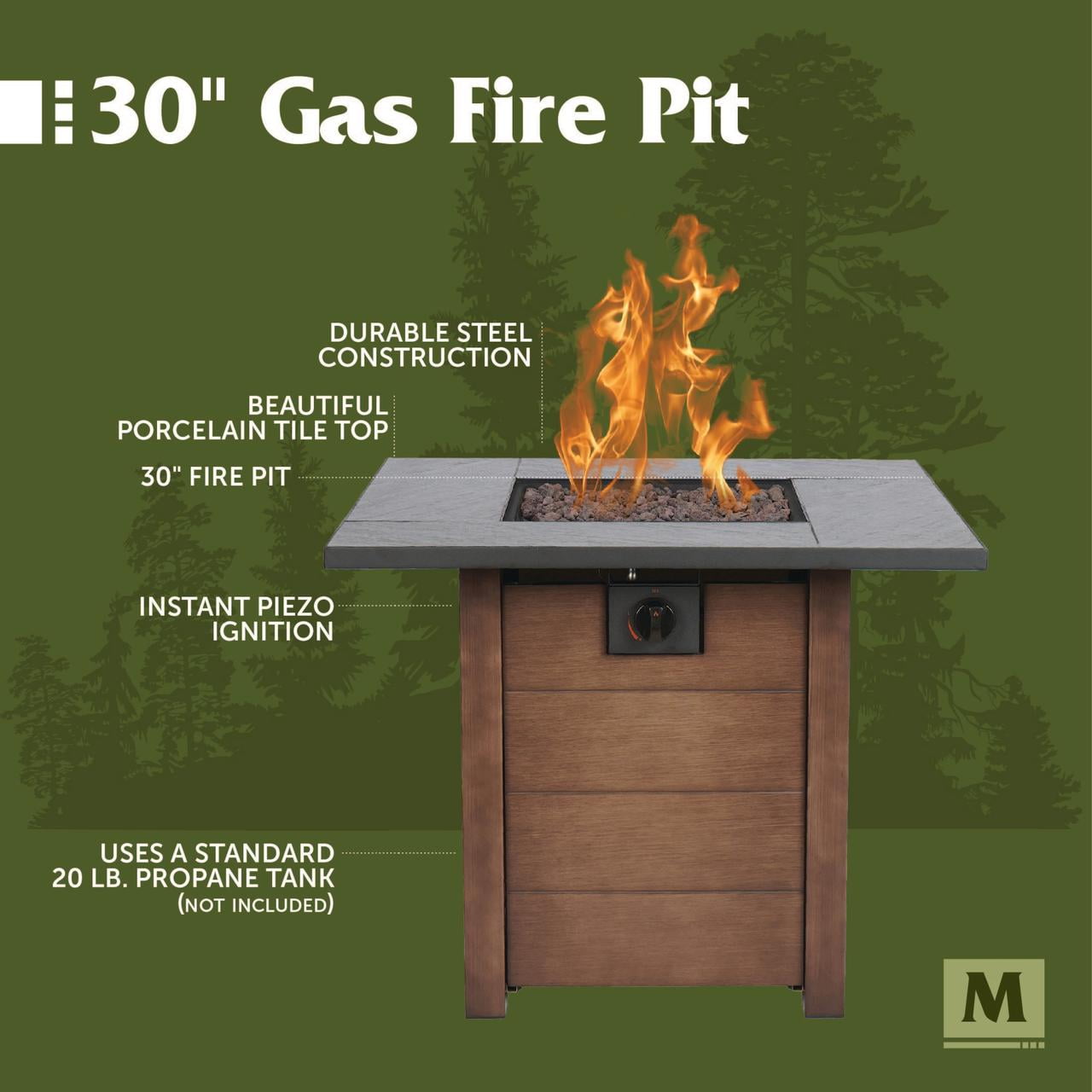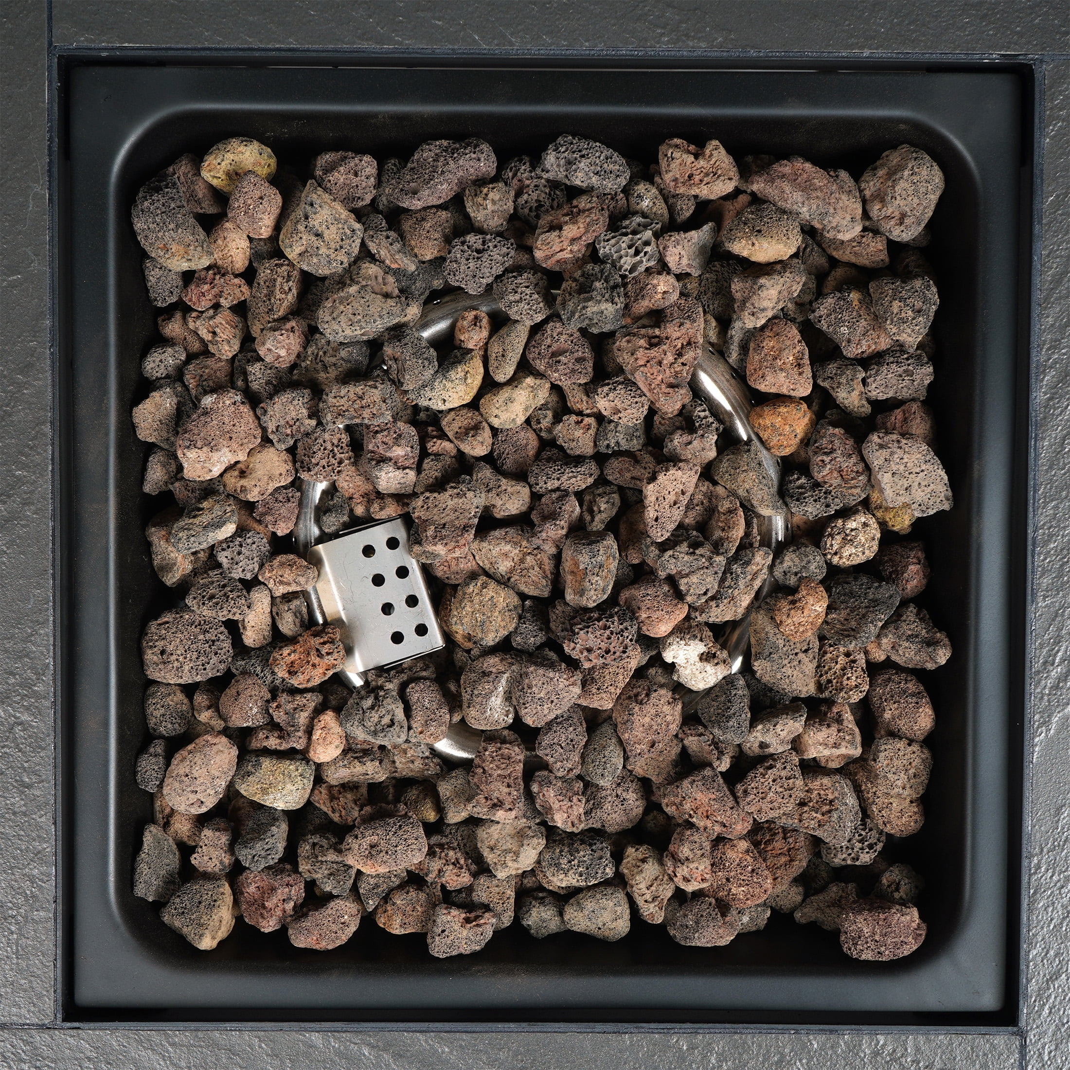 When the weather is too brisk for your liking, keep warm beside the Muskoka 30″ Square Gas Fire Pit. Wow your guests and quickly heat up your patio space, while you enjoy snacks and beverages outdoors. This unique backyard propane fire pit is made of porcelain and steel, giving you an exquisite centerpiece that will hold up outdoors for years to come. A convenient access door located in the base allows you to easily conceal the 20 lb. propane tank (sold separately). Lava rock firebowl filler is included. It also comes with a steel insert to cover the burner when not in use, making it appear and function as a normal table. Seamlessly adjust the flame to your liking and extinguish with no mess and no fuss. Make the most out of your outdoor living space with the Muskoka 30″ Gas Fire Pit. Some assembly required.