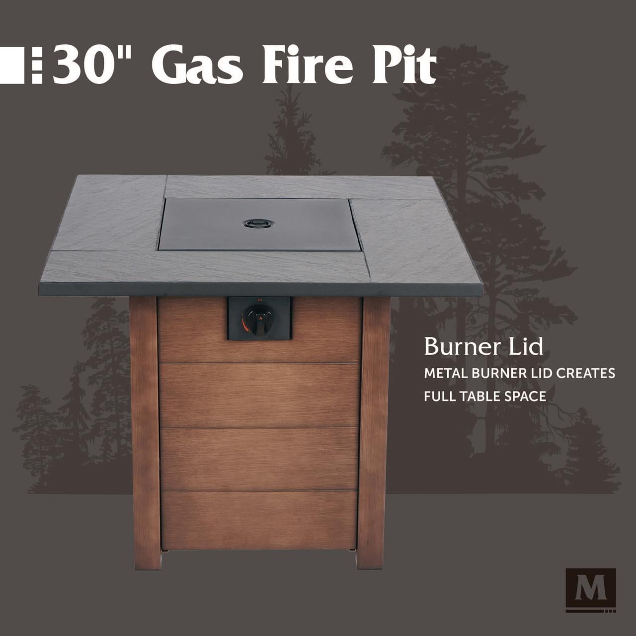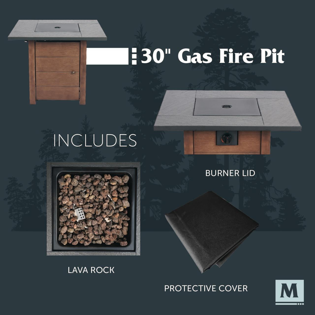 Muskoka 30″ Square 50,000 BTU Propane Fire Pit Table with Lava Rock, Burner Lid and Protective Cover