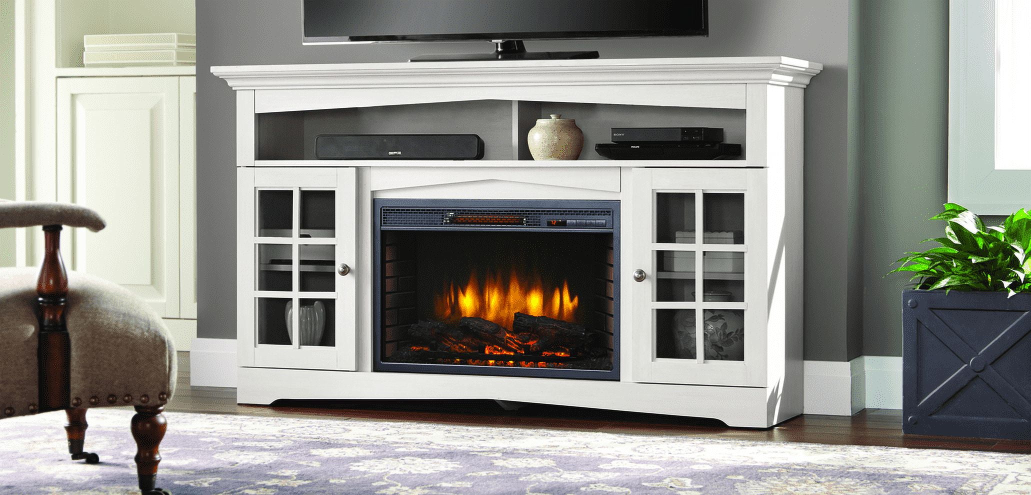 Muskoka Huntley 59″ TV Stand Electric Fireplace White Wood Finish for TVs up to 65″