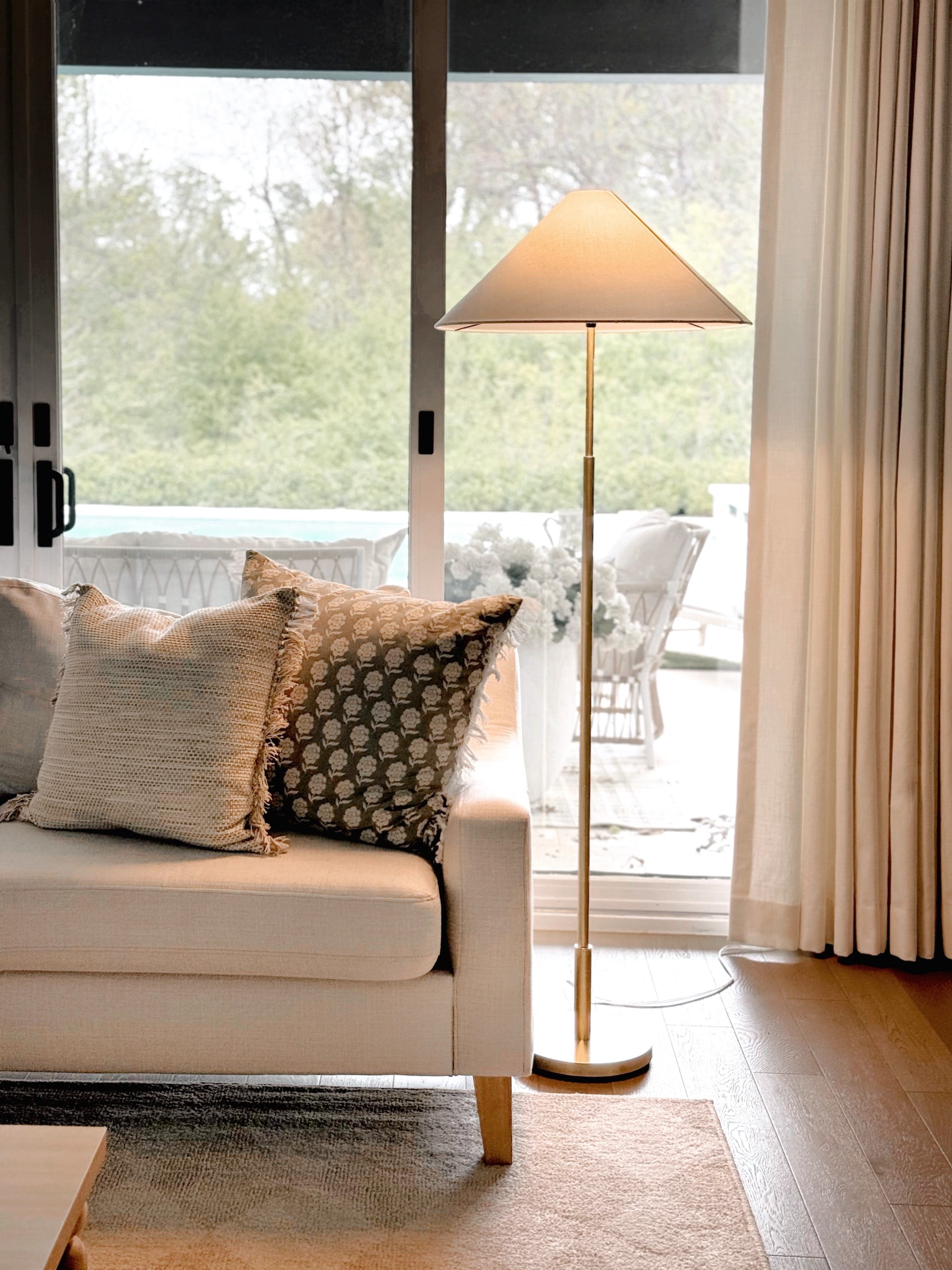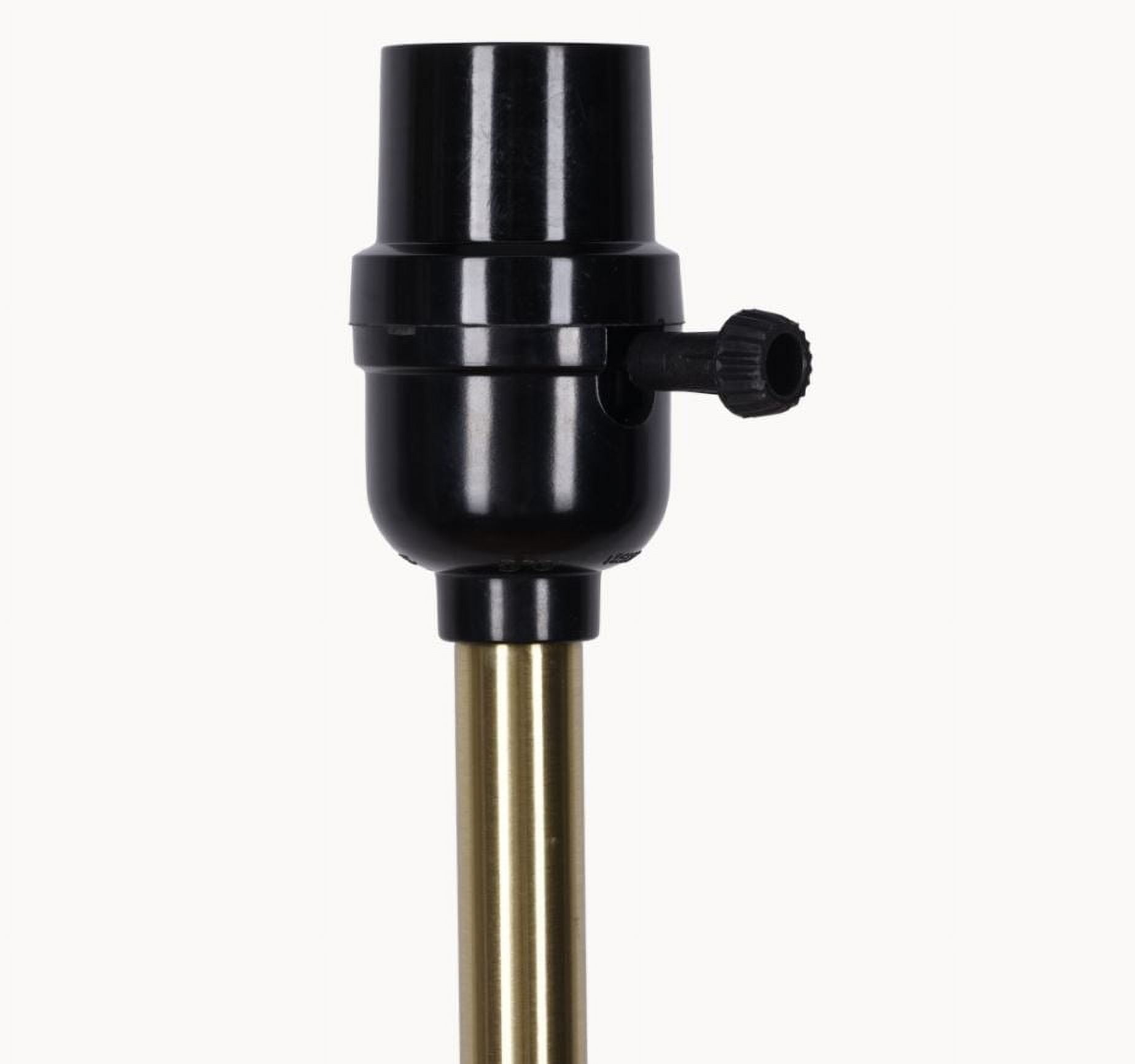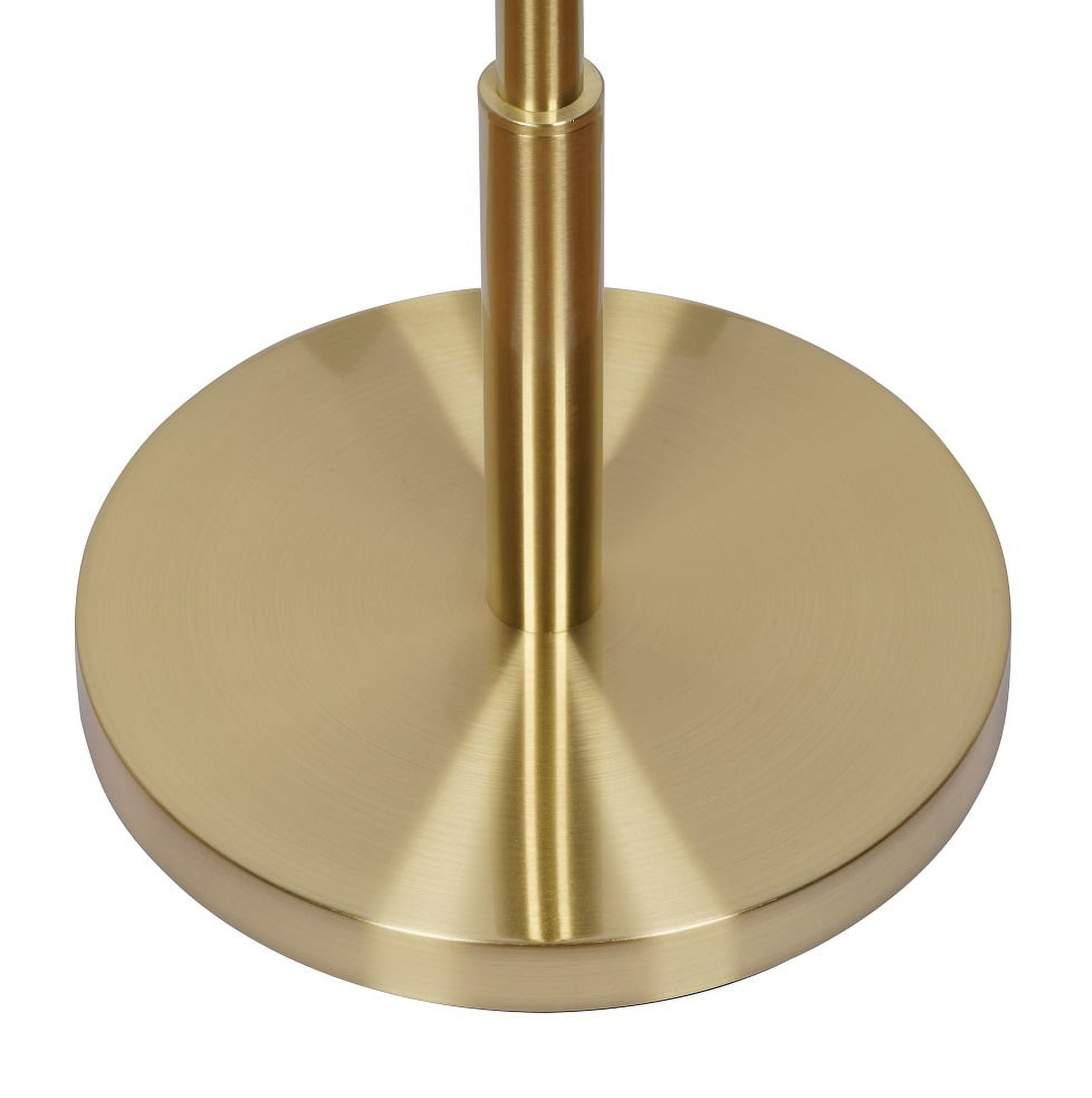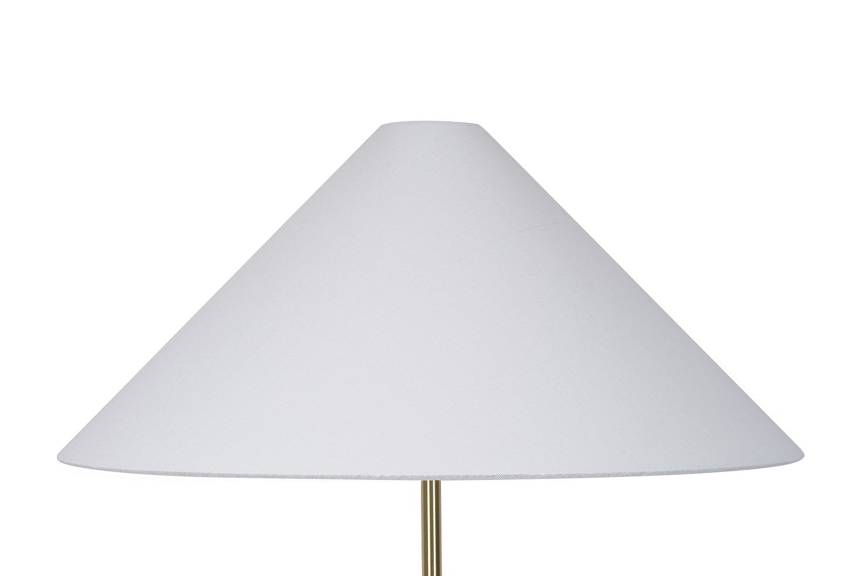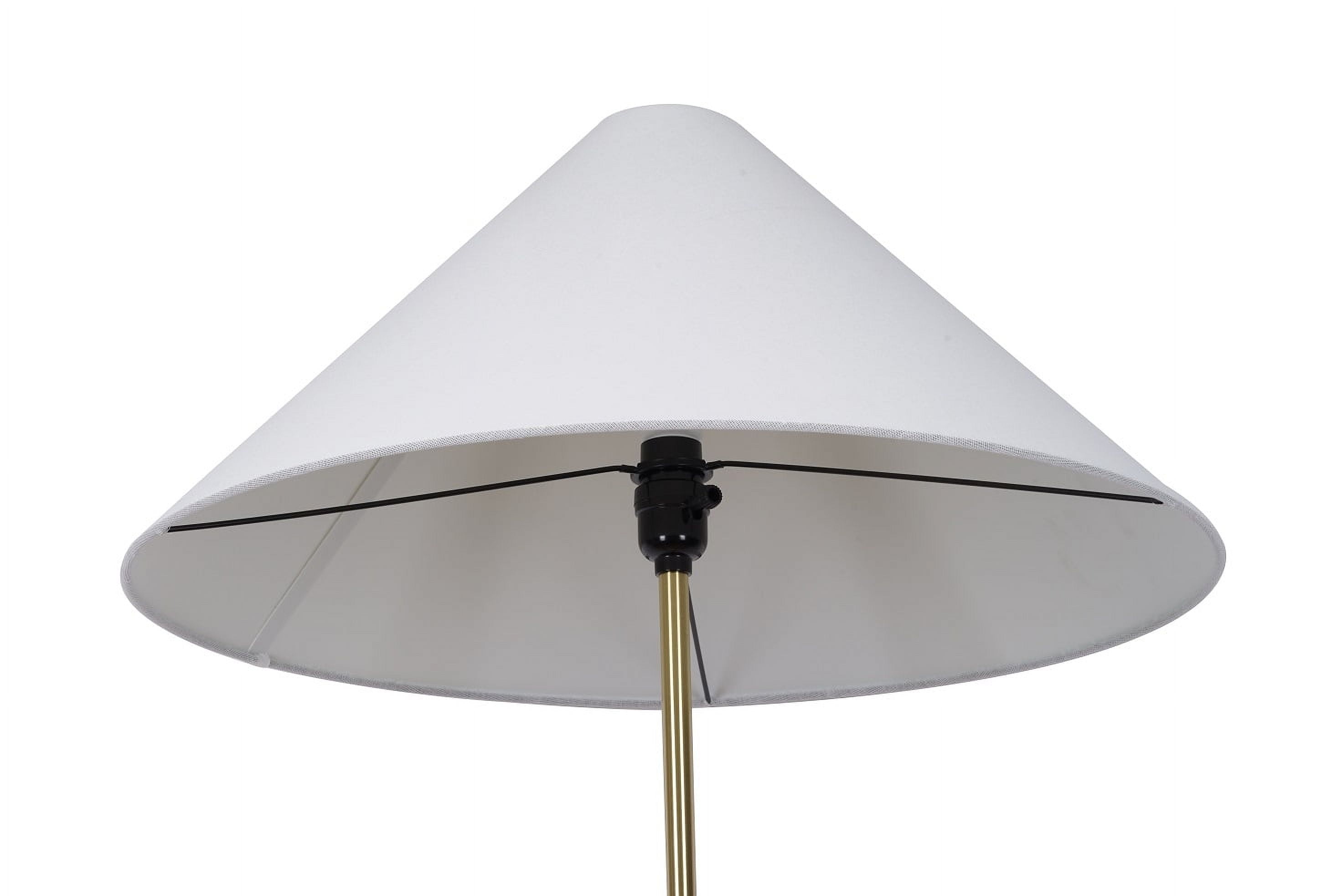Elegant design featuring a white fabric empire shade Sturdy gold metal pole and base for durability Convenient rotary on/off switch for easy operation Base diameter measures 10 inches for stability Assembled dimensions: 22″L x 22″W x 64″H Shade dimensions: Top 3″, Bottom 22″, Height 19.75″ Compatible with one 100-watt incandescent bulb or LED equivalent (not included) 72-inch clear power cord for flexible placement Recommended for indoor use only