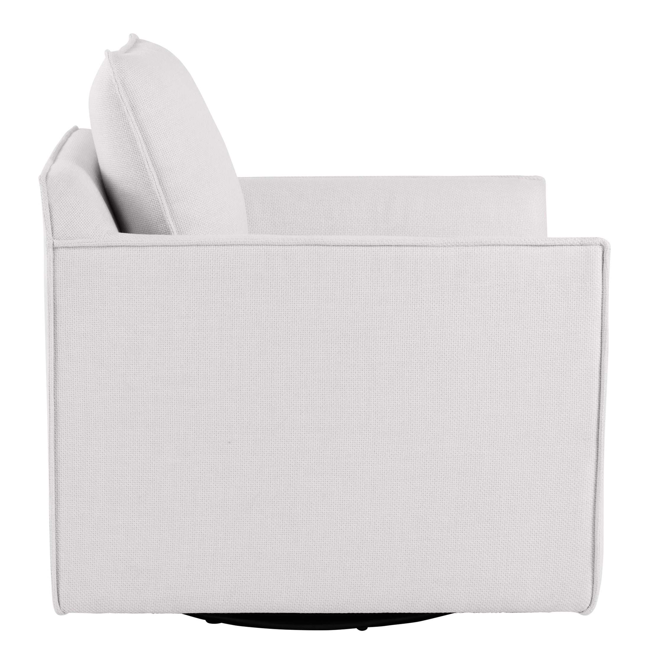 360-Degree Swivel: Durable Cream Linen Fabric: Reversible Seat and Back Cushions: Solid Wood Construction: Contemporary Design: Product Dimensions: Product Weight: Packaging Dimensions: Model# Reversible Seat and Back Cushions: Solid Wood Construction: Contemporary Design: Product Dimensions: Product Weight: Packaging Dimensions: Model#