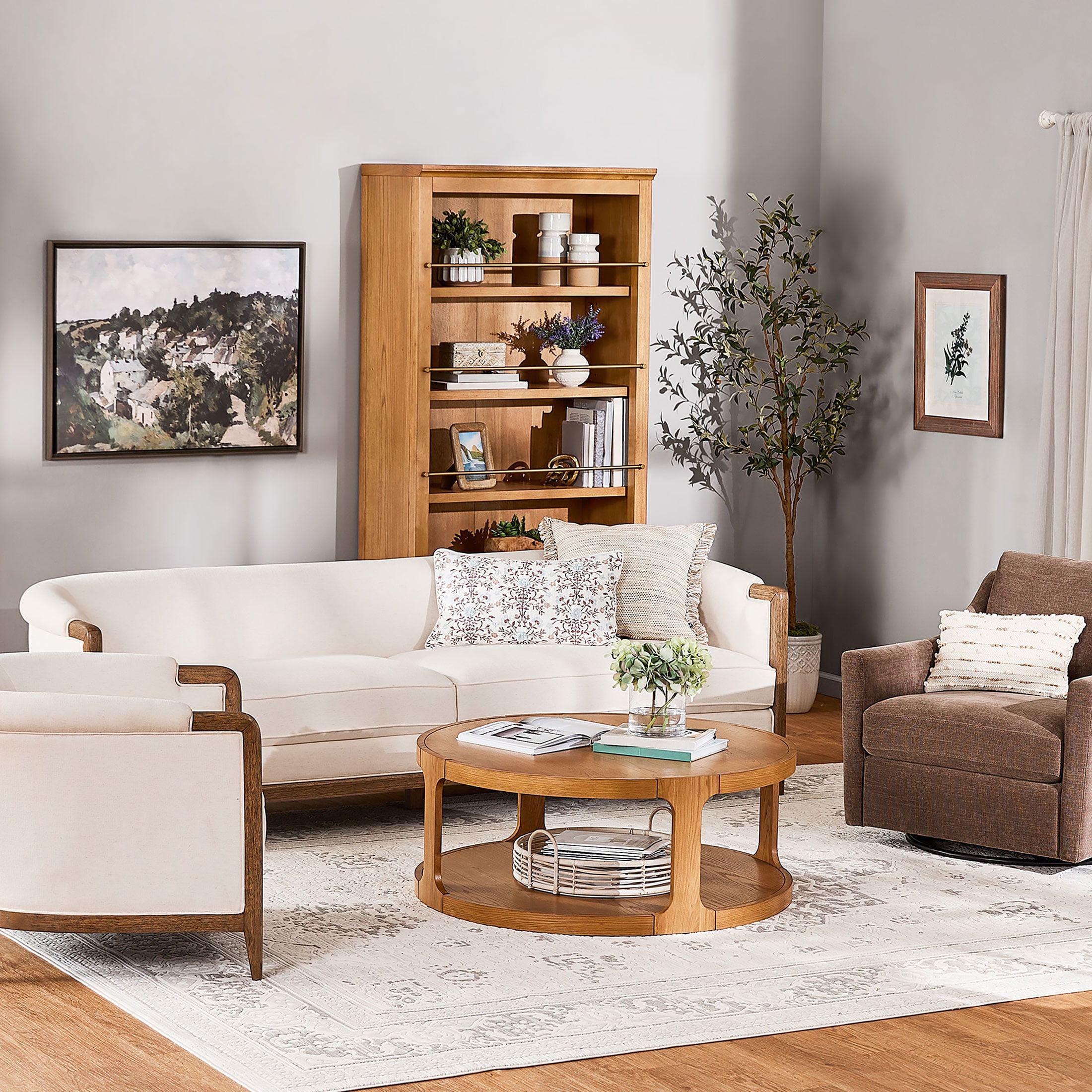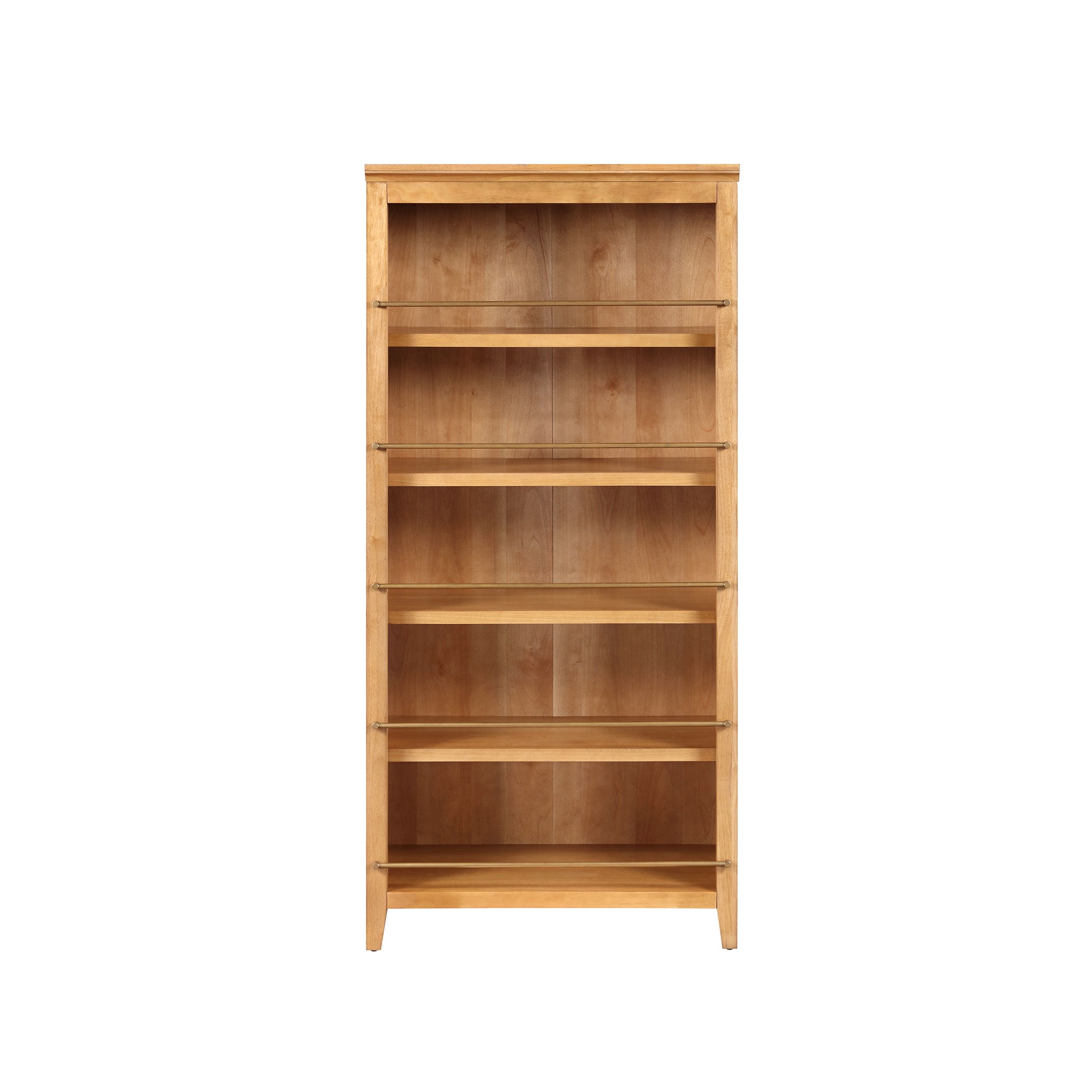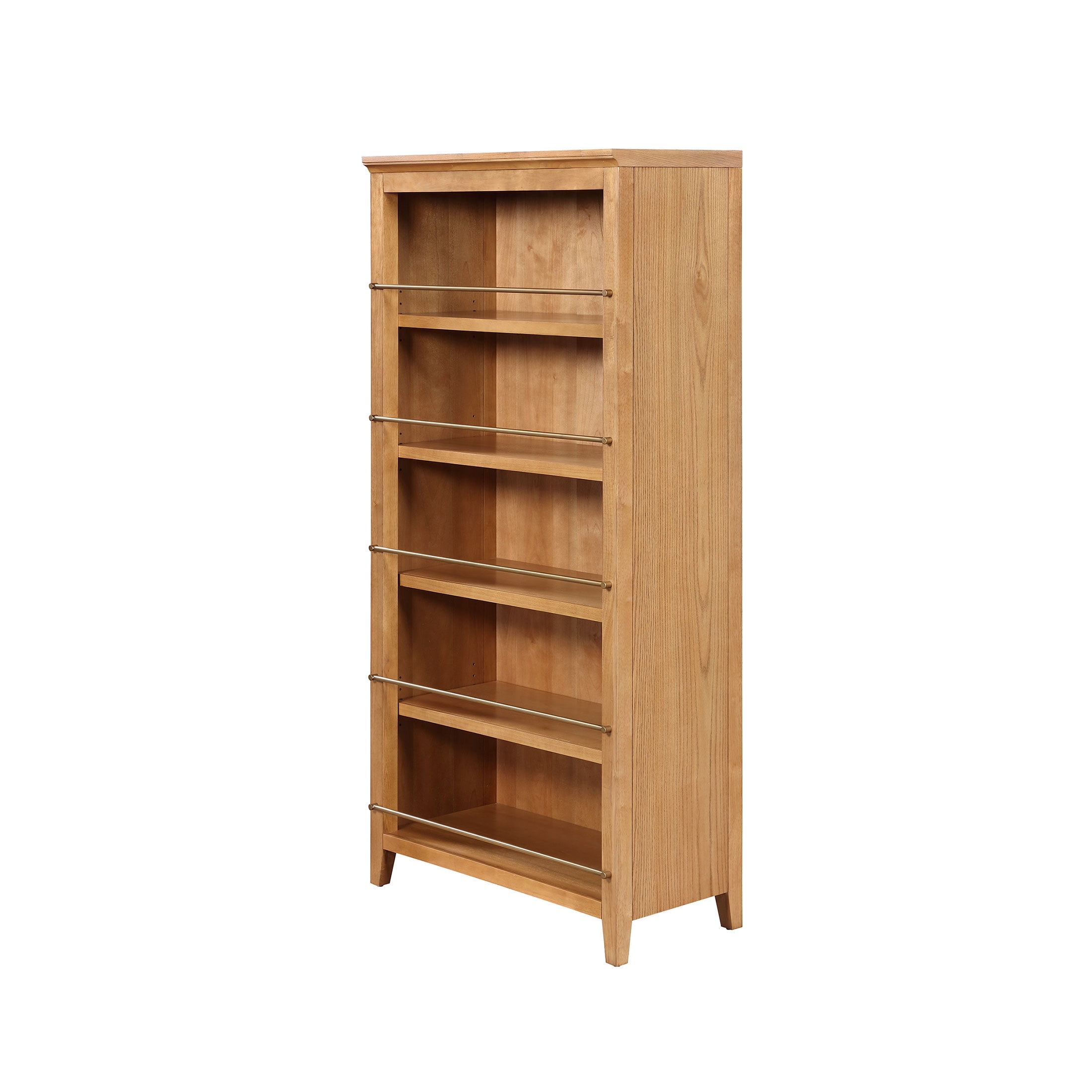 5 spacious shelves offer plenty of room for books, décor, and more 3 adjustable shelves let you customize your storage needs Warm brown finish adds a cozy, timeless touch Antique gold metal accents bring subtle sophistication Mid-century inspired design fits effortlessly into modern homes Anti-tipping hardware included for added safety Product Dimensions: 35.5 in W x 18 in D x 76.25 in H (90.2 cm x 45.8 cm x 193.6 cm) Product Weight: 123.9 lb (56.2 kg) Packaging Dimensions: 82.25 in x 23 in x 8.5 in Packaging Weight: 145.5 lb (66 kg) Model# MT65250047100A5