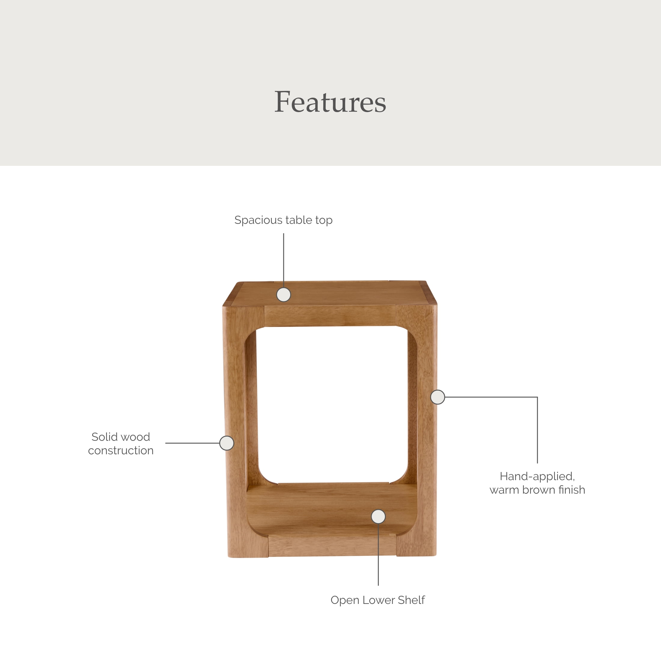 Spacious Table Top: Perfect for décor and everyday essentials Solid Wood Construction: Ensures durability and longevity Warm Brown Finish: Complements various decor styles Open Lower Shelf: Provides easy-access storage for books, magazines, and more Hand-Applied Finish: Offers a unique, artisanal touch Contemporary Design: Blends seamlessly into modern and traditional living spaces Great for additional storage and table space in your living room or family room Product Dimensions: 20 IN W x 20 IN D x 24.25 IN H (50.8 CM x 50.8 CM x 61.6 CM) Product Weight: 24.91 lb Packaging Dimensions: 34.25 IN x 28.125 IN x 4.75 IN Packaging Weight: 31.9 lb (14.5 kg) Model# MT6425004710003