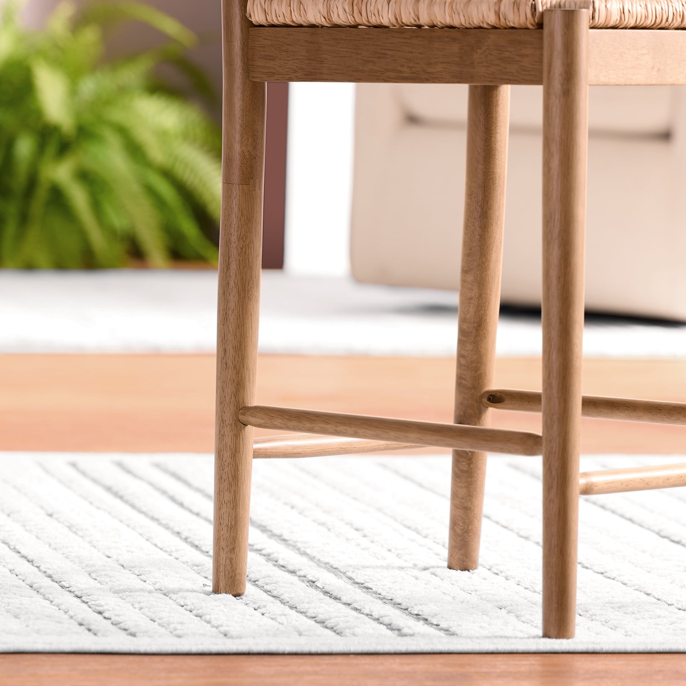My Texas House Laurel Counter Stools with Woven Seagrass Seat, Kitchen, Warm Brown, 2 Pack