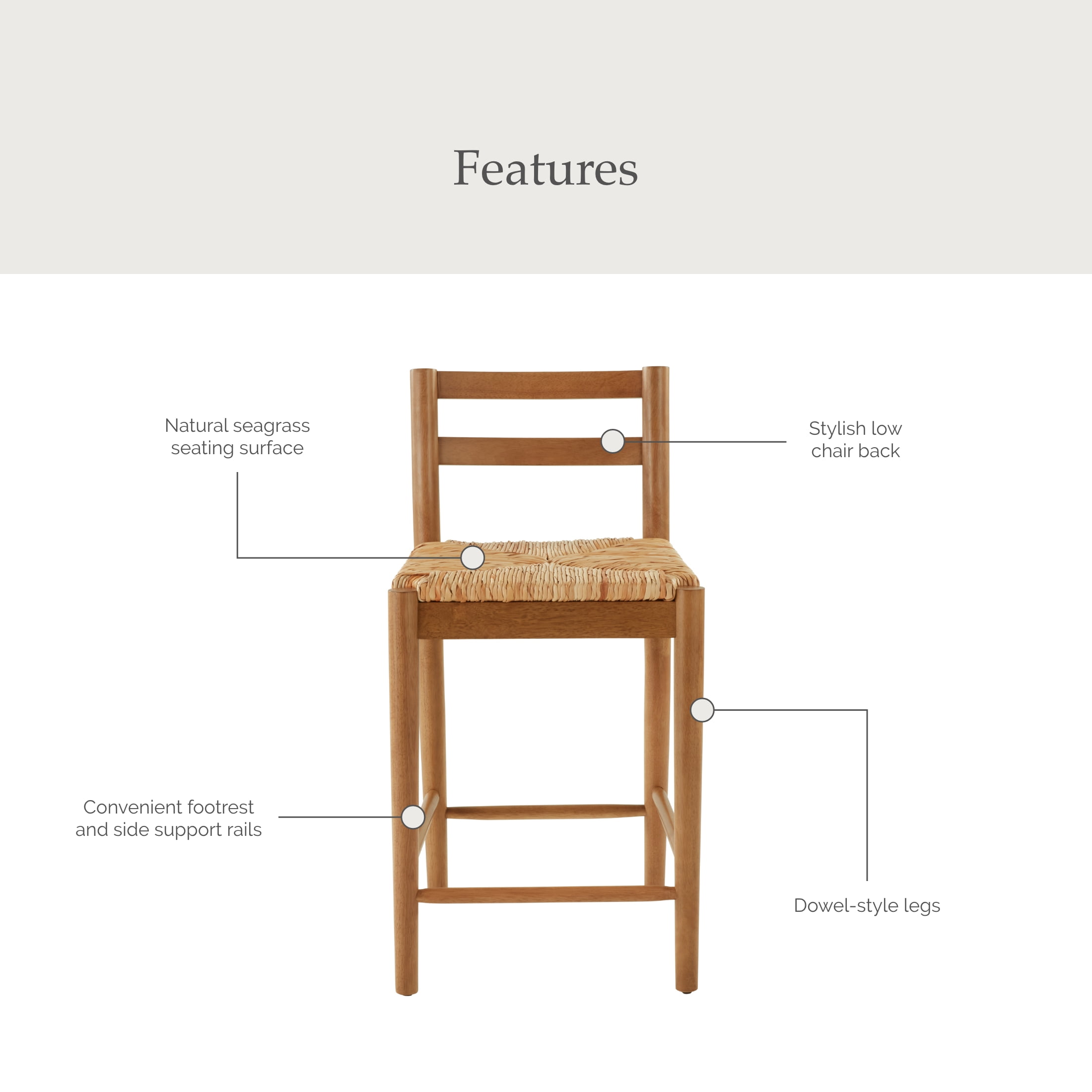 Natural Seagrass Seating: Provides a unique and comfortable seating surface Stylish Low Chair Back: Offers modern design, comfort and support Footrest & Dowel-style Legs: Enhance comfort and stability Contemporary Design: Complements both traditional and modern interiors Perfect for Families: Ideal for counter-height dining tables and kitchen counters Product Dimensions: 18 IN W x 20.625 IN D x 34.875 IN H (45.7 CM x 52.5 CM x 88.6 CM) Product Weight: 31.53 lb Packaging Dimensions: 38 IN x 22.25 IN x 9.25 IN Packaging Weight: 41 lb (18.6 kg) Model# MT6425004710006 Stylish Low Chair Back: Offers modern design, comfort and support Footrest & Dowel-style Legs: Enhance comfort and stability Contemporary Design: Complements both traditional and modern interiors Perfect for Families: Ideal for counter-height dining tables and kitchen counters Product Dimensions: 18 IN W x 20.625 IN D x 34.875 IN H (45.7 CM x 52.5 CM x 88.6 CM) Product Weight: 31.53 lb Packaging Dimensions: 38 IN x 22.25 IN x 9.25 IN Packaging Weight: 41 lb (18.6 kg) Model# MT6425004710006