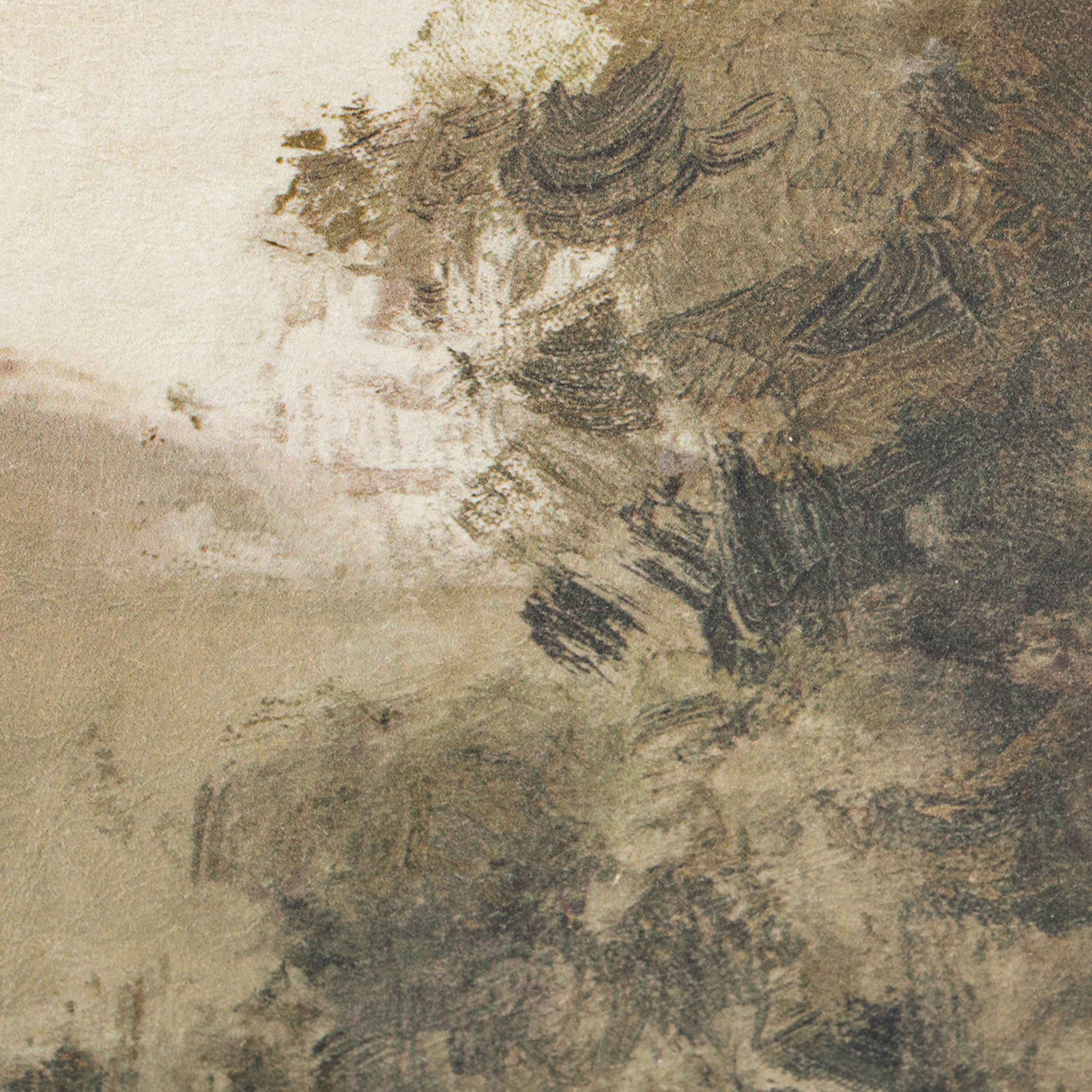Sepia toned, landscape art printed on antique paper canvas Antique gold frame with light texture & white spacers Ready-to-Hang wall art with 2 D-Ring Hangers preinstalled