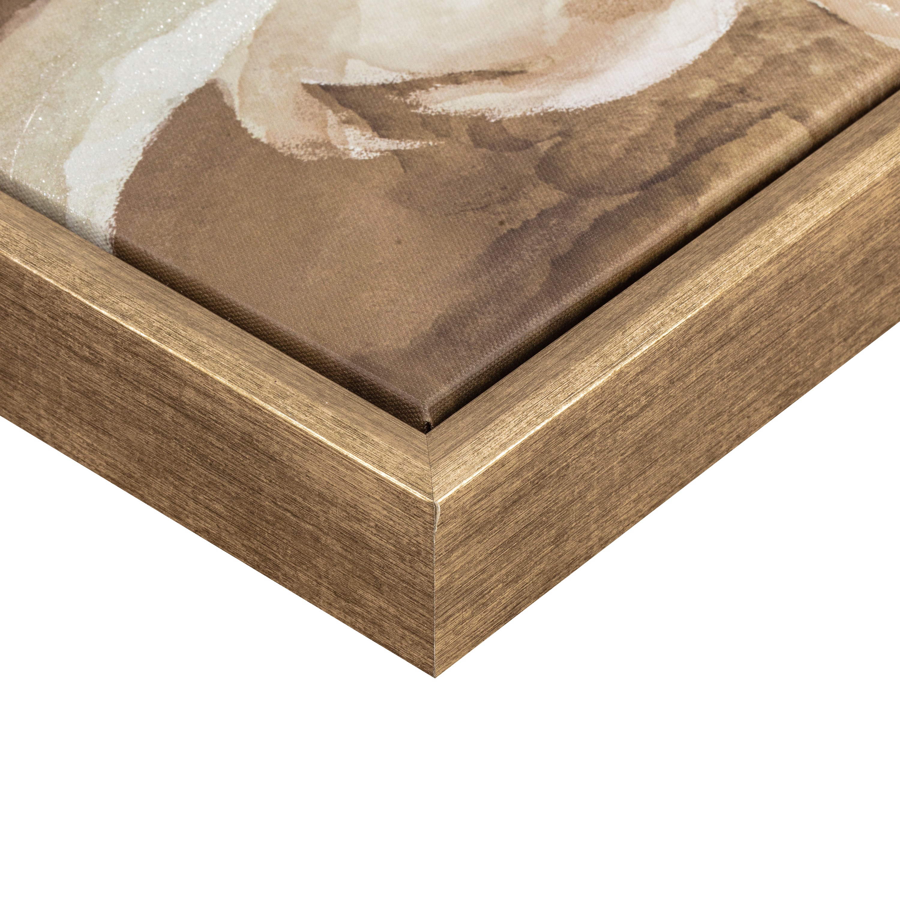 Dimensions: 30x40x1.92 Brushed antique champagne frame Two D-Ring Hangers