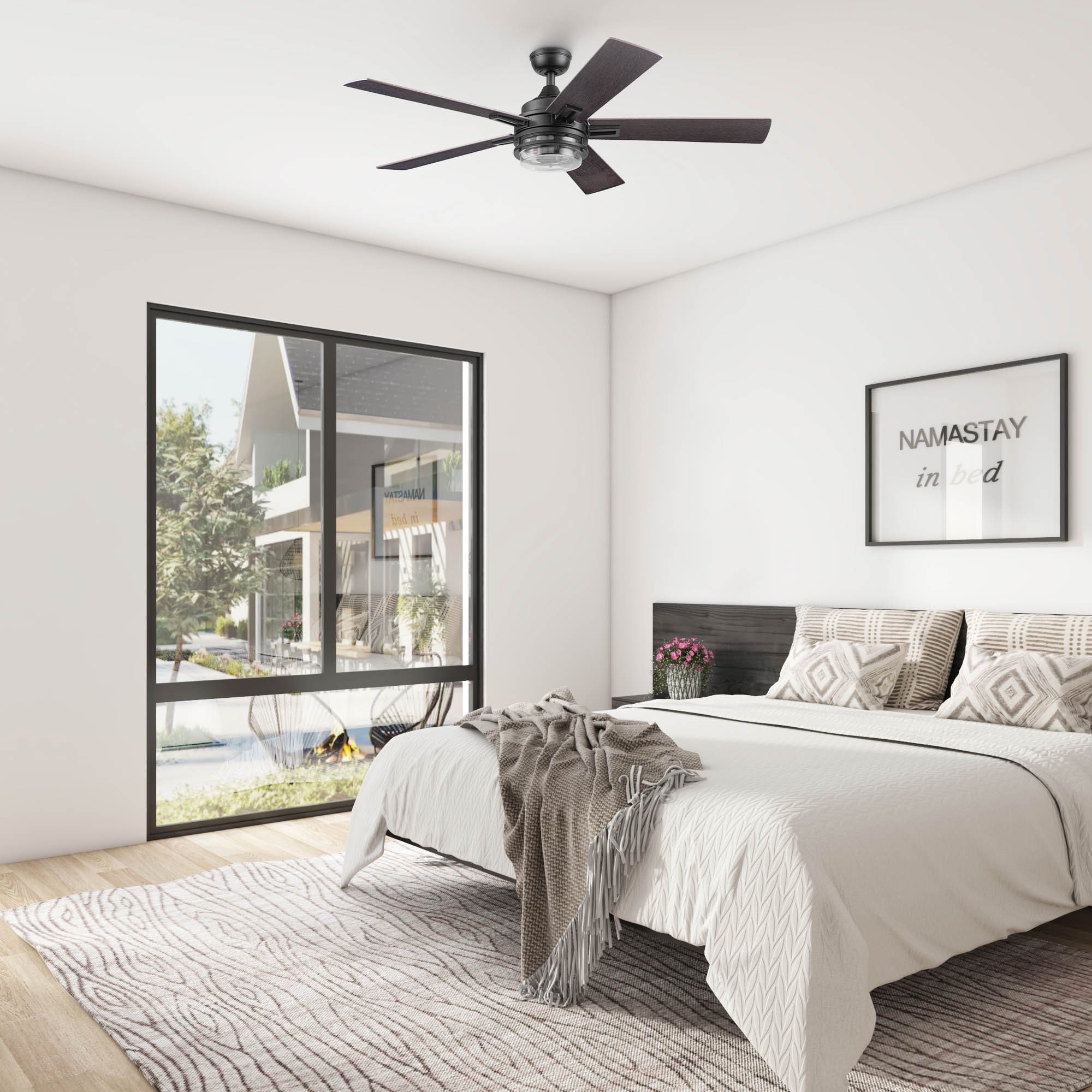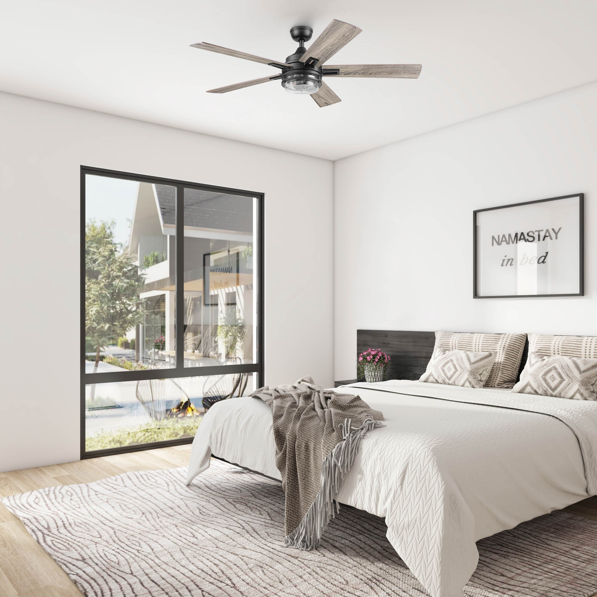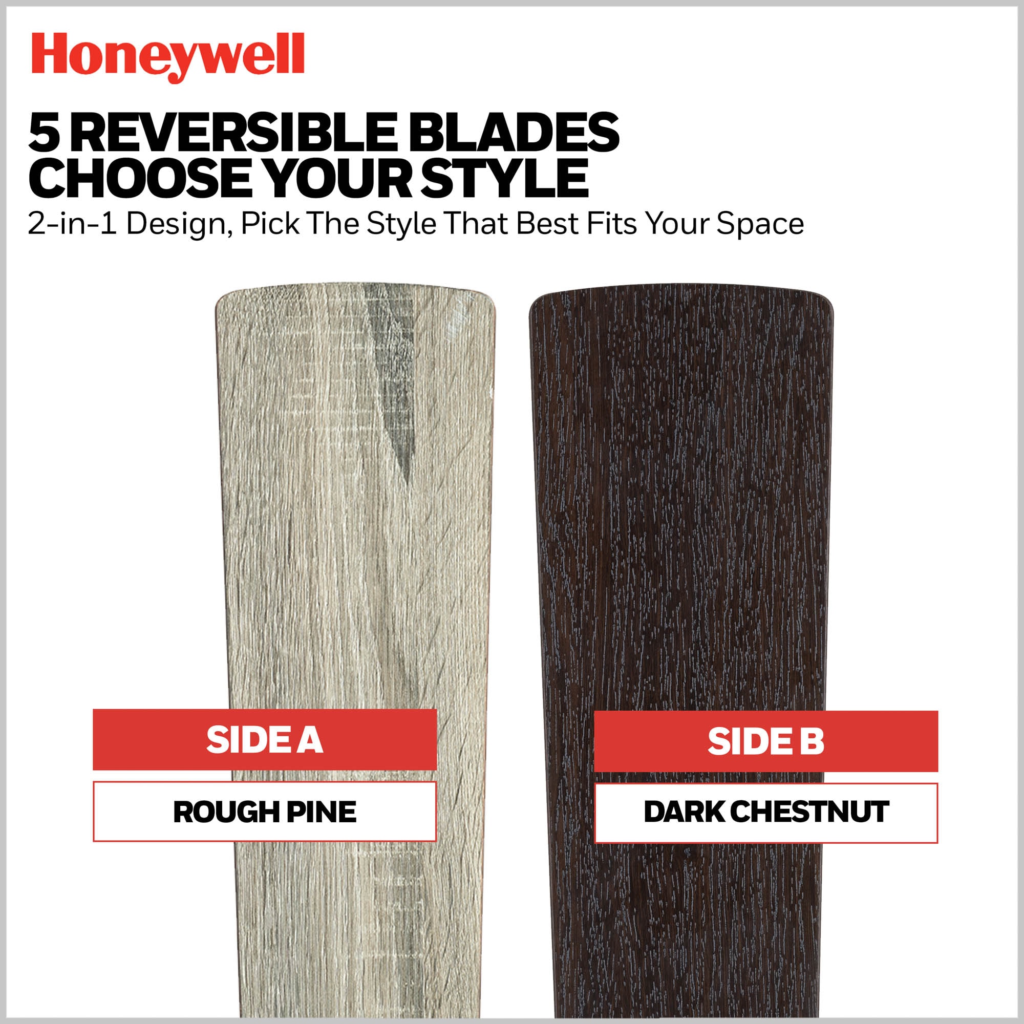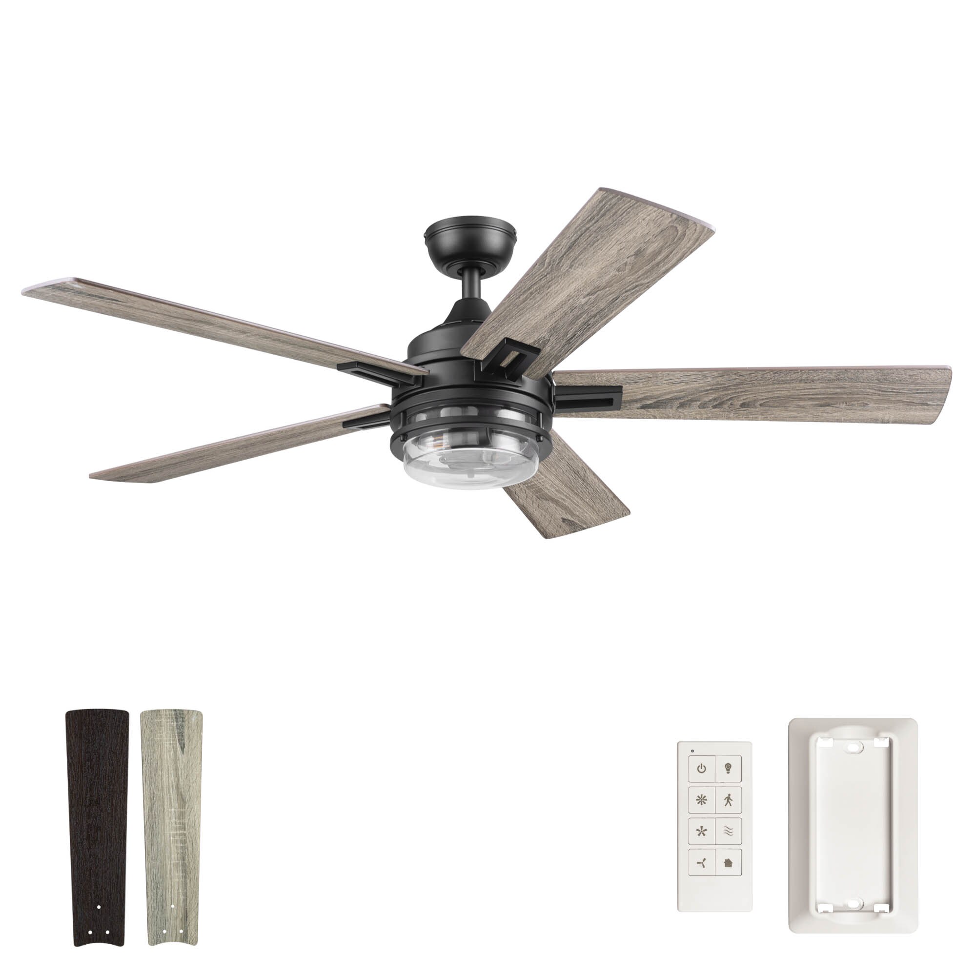 Honeywell Ceiling Fans make your home comfortable in all seasons as well as help to reduce energy costs. Enjoy the welcome breeze in any room of your home while looking stylish. Myers Park is an upscale modern farmhouse style, multi-position ceiling fan that effortlessly combines a lantern-inspired shade with reversible blades featuring natural wood tones. With unique details and contemporary elements, this modern ceiling fan presents a classy design that is the perfect blend of sophistication and farmhouse style sure to enhance the overall allure of your living space. The innovative 5-blade design provides ultra-efficient, adjustable and energy efficient airflow while the LED lights provide the ideal lighting to fit your mood. Control your Honeywell ceiling fan with the touch of a button with our easy-to-use ceiling fan remote control with wall mount option (batteries included). Enjoy year-round comfort by adjusting the reversible airflow switch that easily allows you to change the direction of the fan to properly distribute air. During the hot summer months, it will provide a cooling effect or when reversed, spreading warm air in the winter to help reduce energy costs. Honeywell Ceiling Fans features a collection of fans in various sizes and specifications to ensure your choice of indoor or outdoor fan delivers optimum performance for your room’s size. You can trust the quality of Honeywell Ceiling Fans to deliver maximum airflow and a stylish lighting option. Honeywell Ceiling Fans use high-quality materials that are long lasting and durable with satisfaction guaranteed by the manufacturer’s limited lifetime warranty.