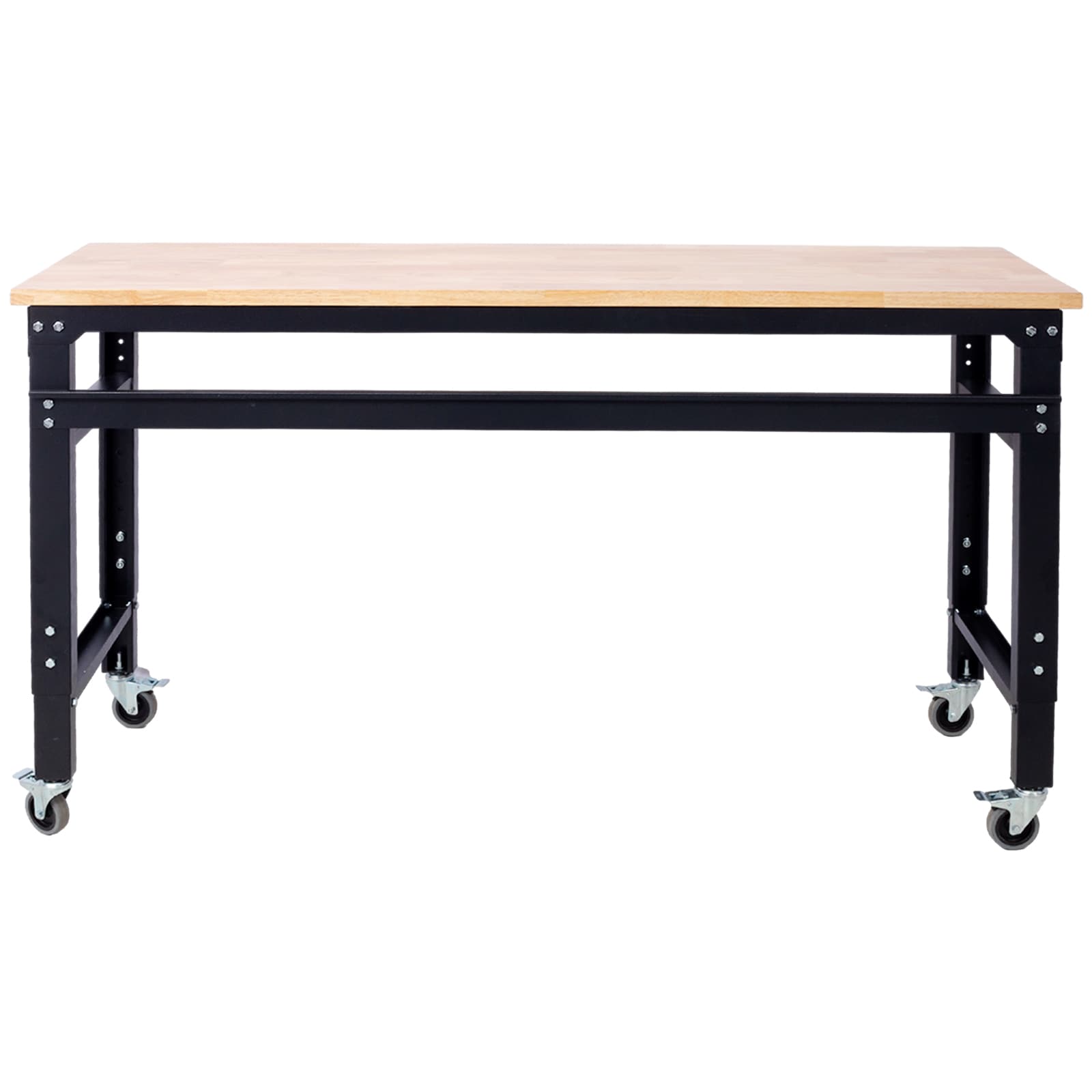 Upgrade your workspace with this incredible workbench! It’s the ultimate multi-purpose solution, serving as a garage workstation, kitchen counter, home office desk, or crafting table. Its easy mobility, thanks to customizable feet and locking wheels, lets you work wherever you need. With five height settings for ergonomic comfort and a durable steel frame with a tough acacia wood surface, it’s built to last. The premium material is scratch-resistant and low maintenance, and assembly is a breeze. With its spacious 60’Wx20’Lx34 – 45’H dimensions, it offers plenty of room for your projects. Get this workbench today and transform your workspace!