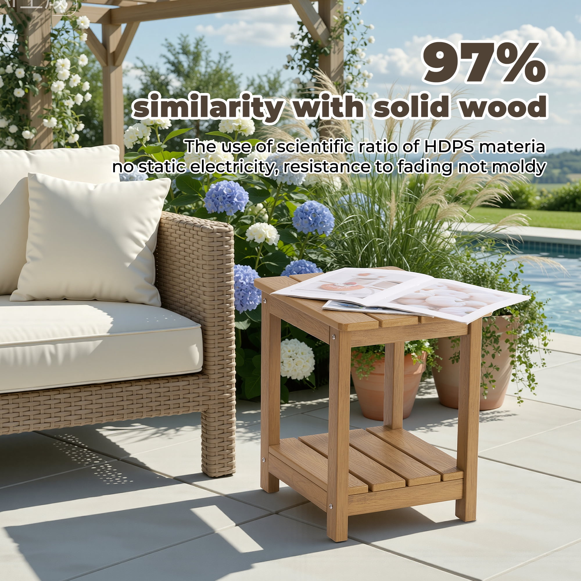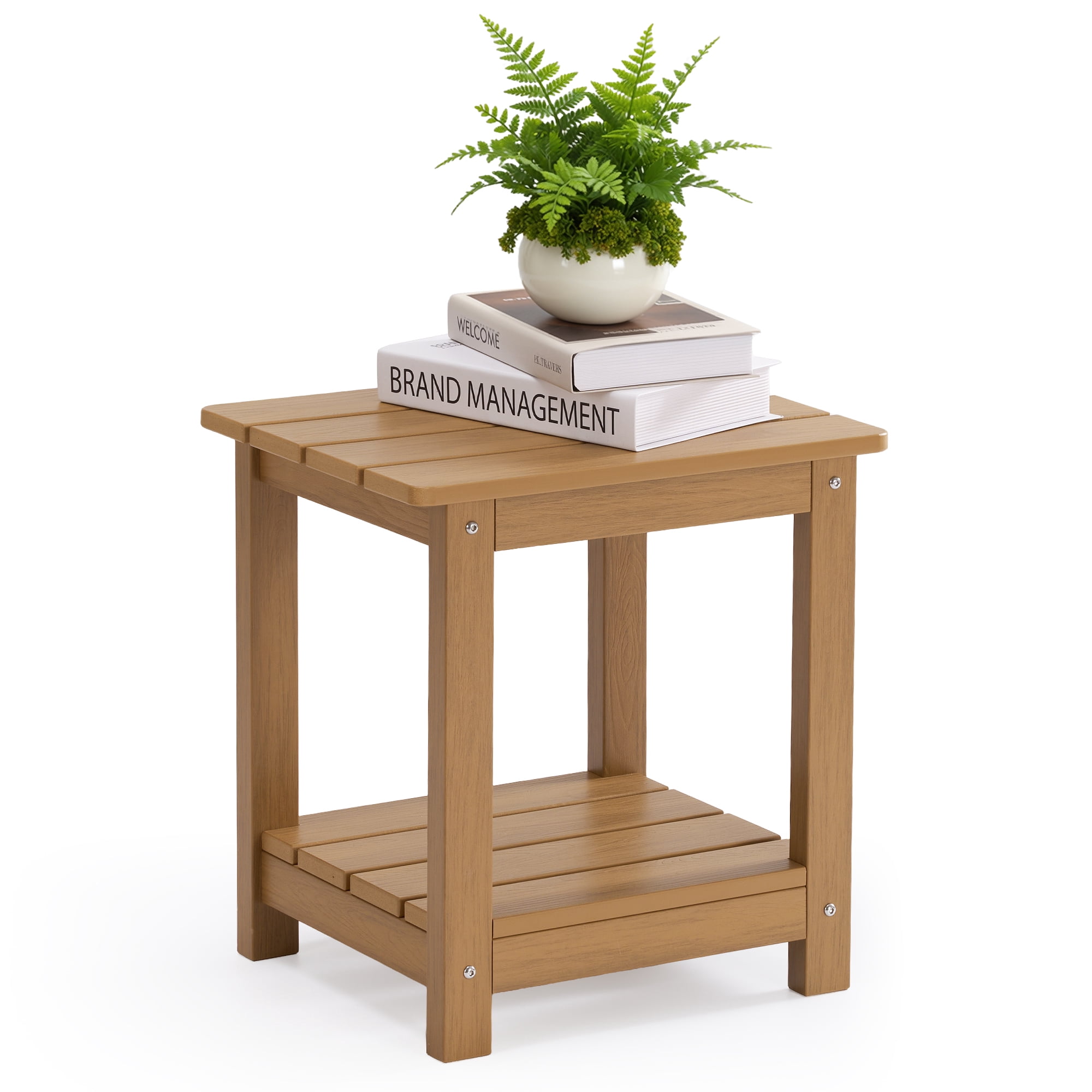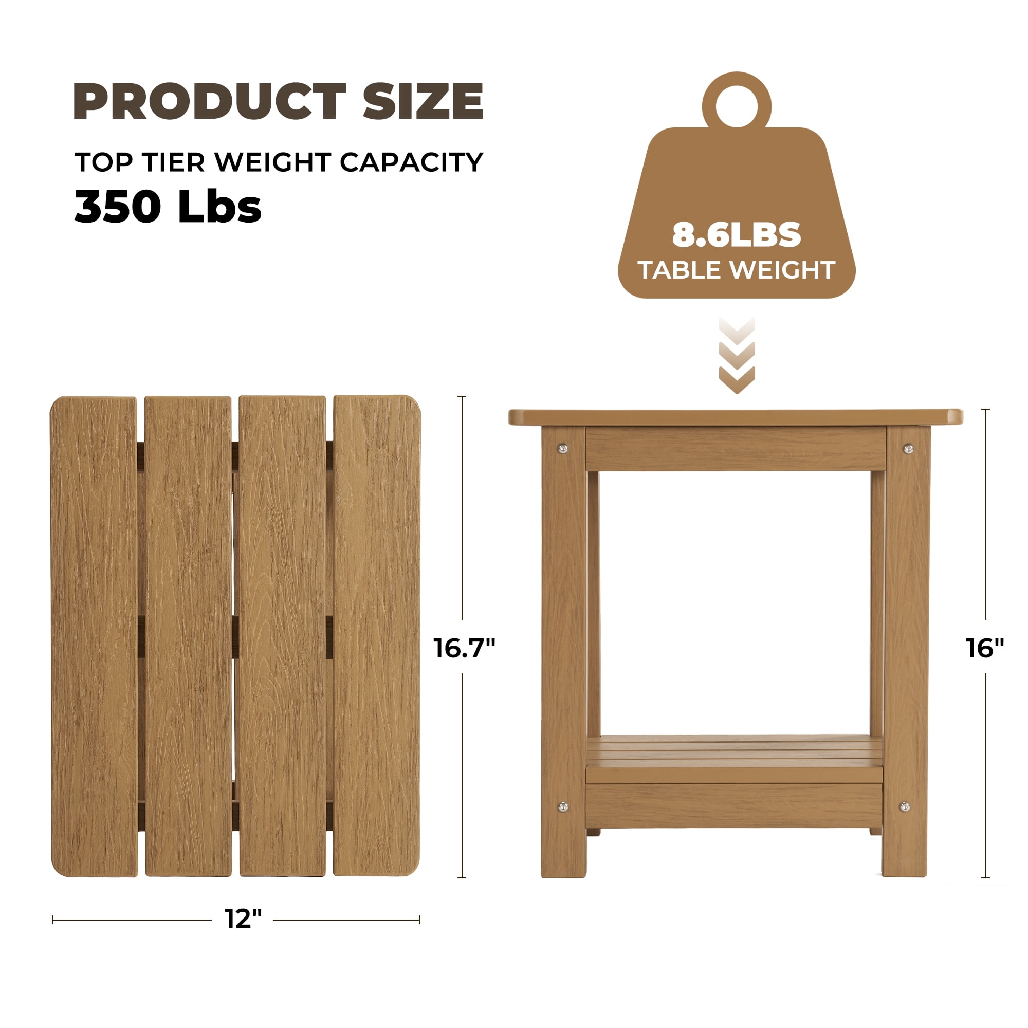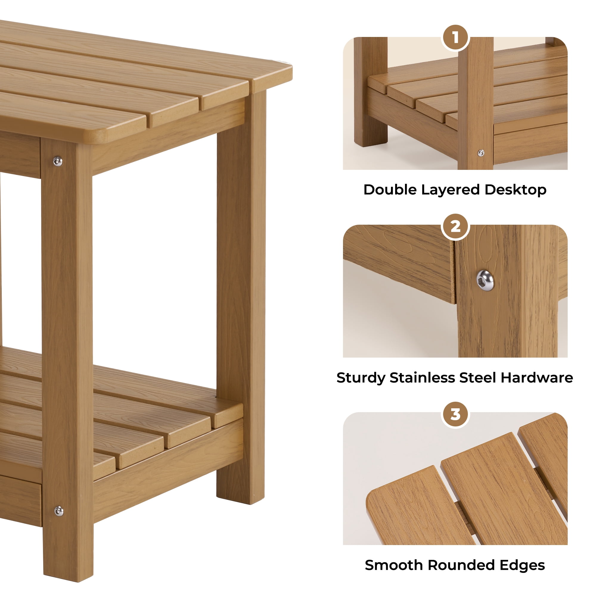 Naipo Outdoor Side Table for Patio, Double Deck Adirondack End Table, Weather Resistant HDPS Rectangular Patio Table for Deck Garden Poolside, All-Weather Outdoor Furniture, Easy Assembly – Teak