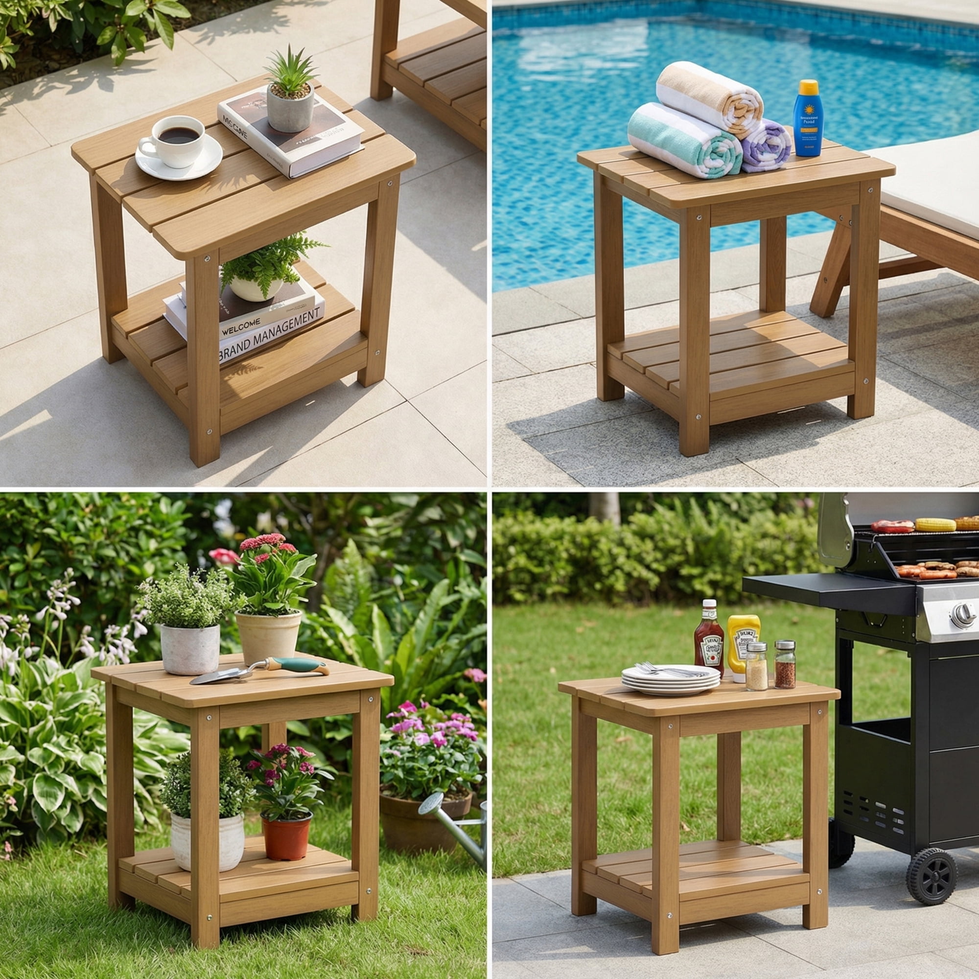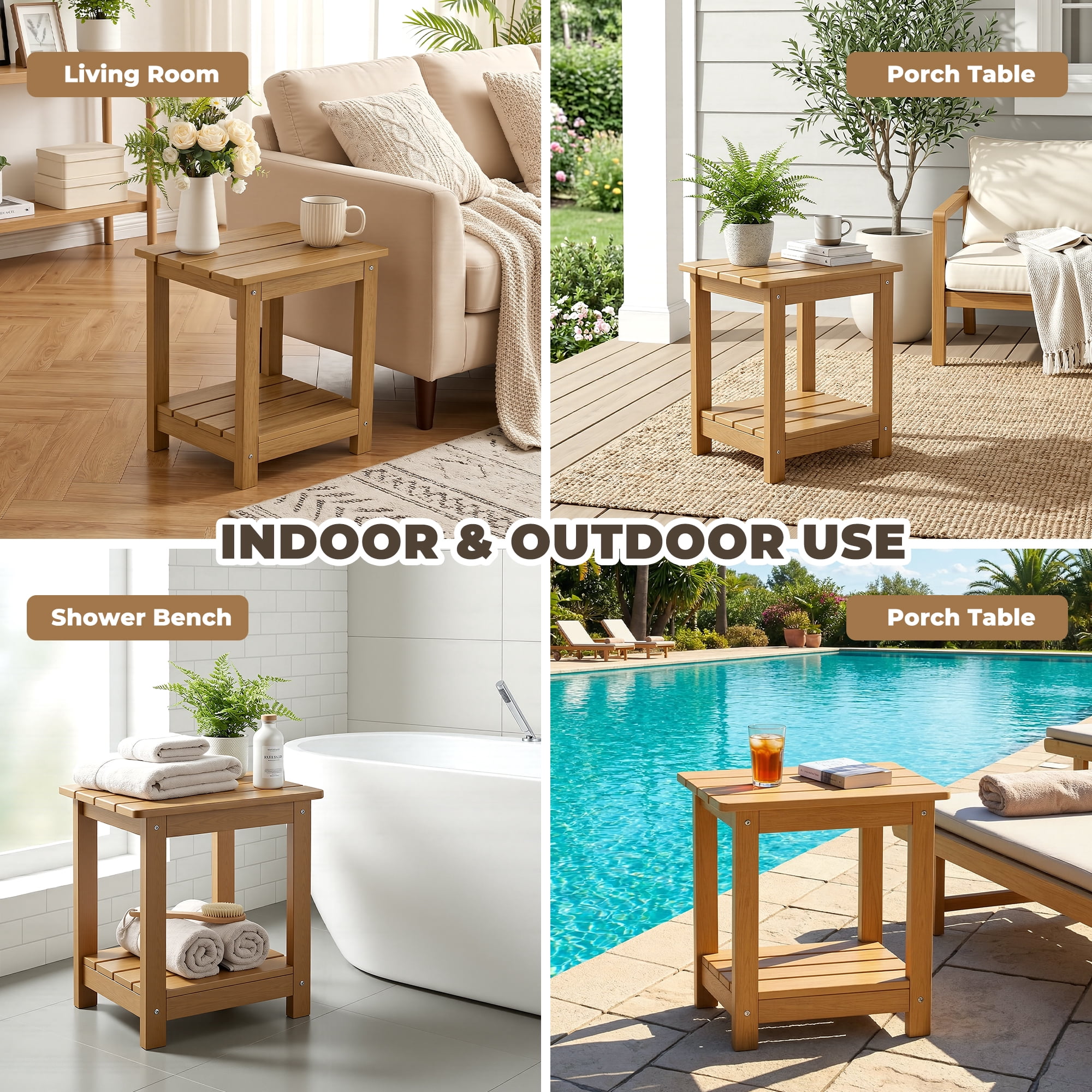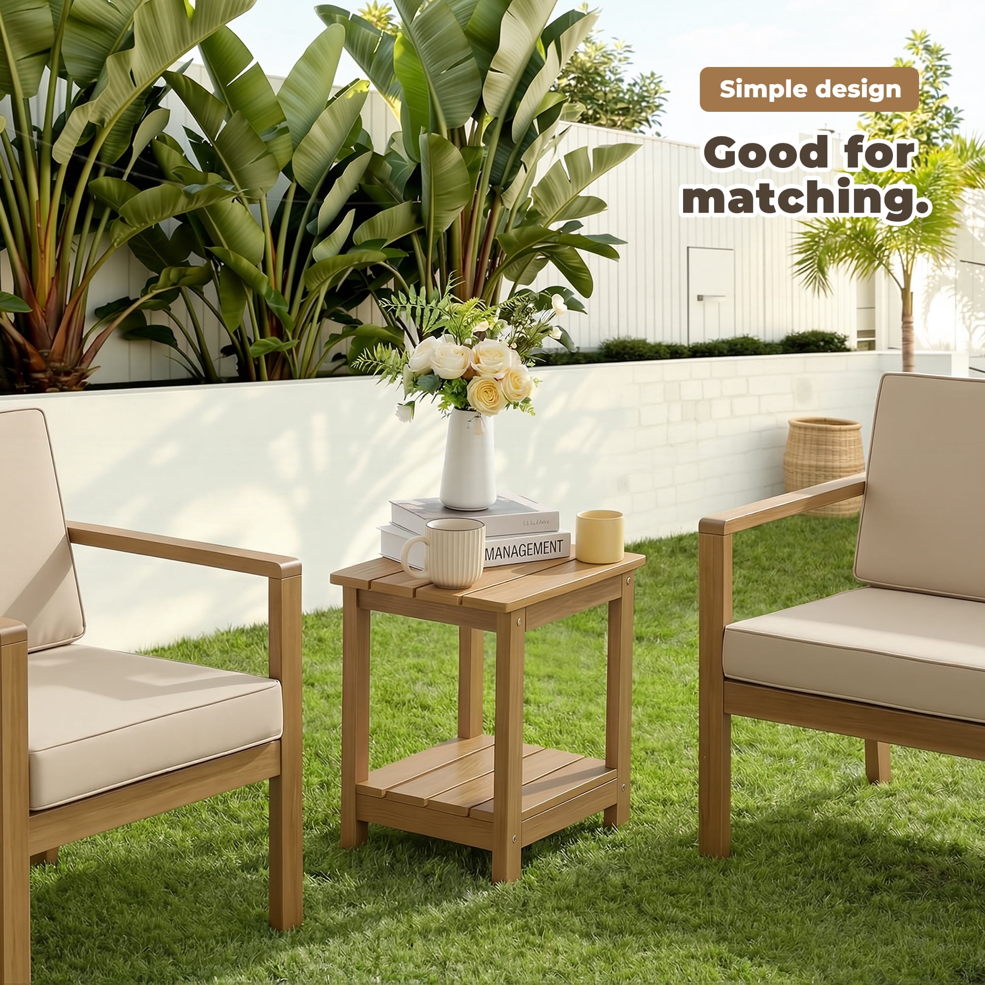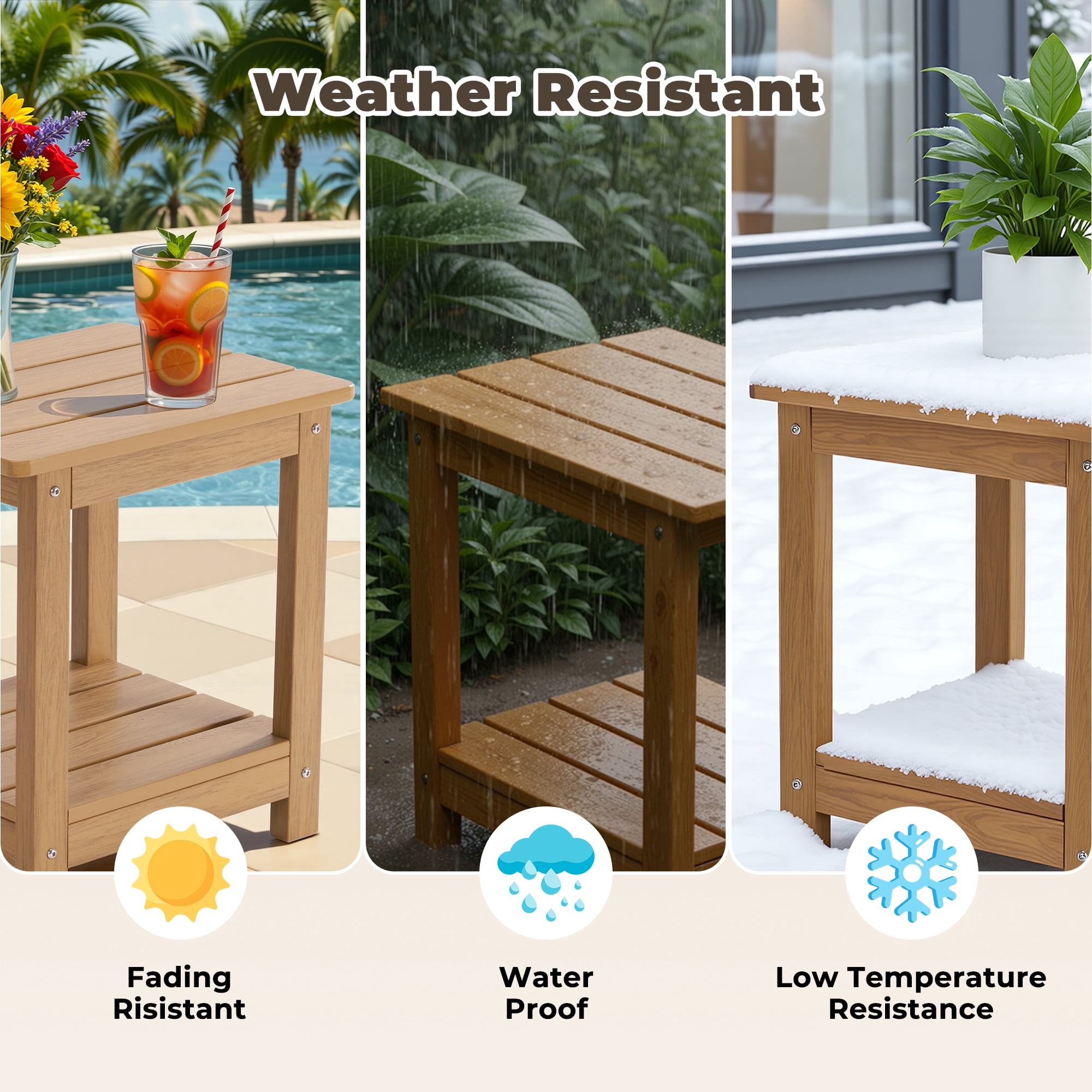 Naipo Outdoor Side Table for Patio, Double Deck Adirondack End Table, Weather Resistant HDPS Rectangular Patio Table for Deck Garden Poolside, All-Weather Outdoor Furniture, Easy Assembly – Teak