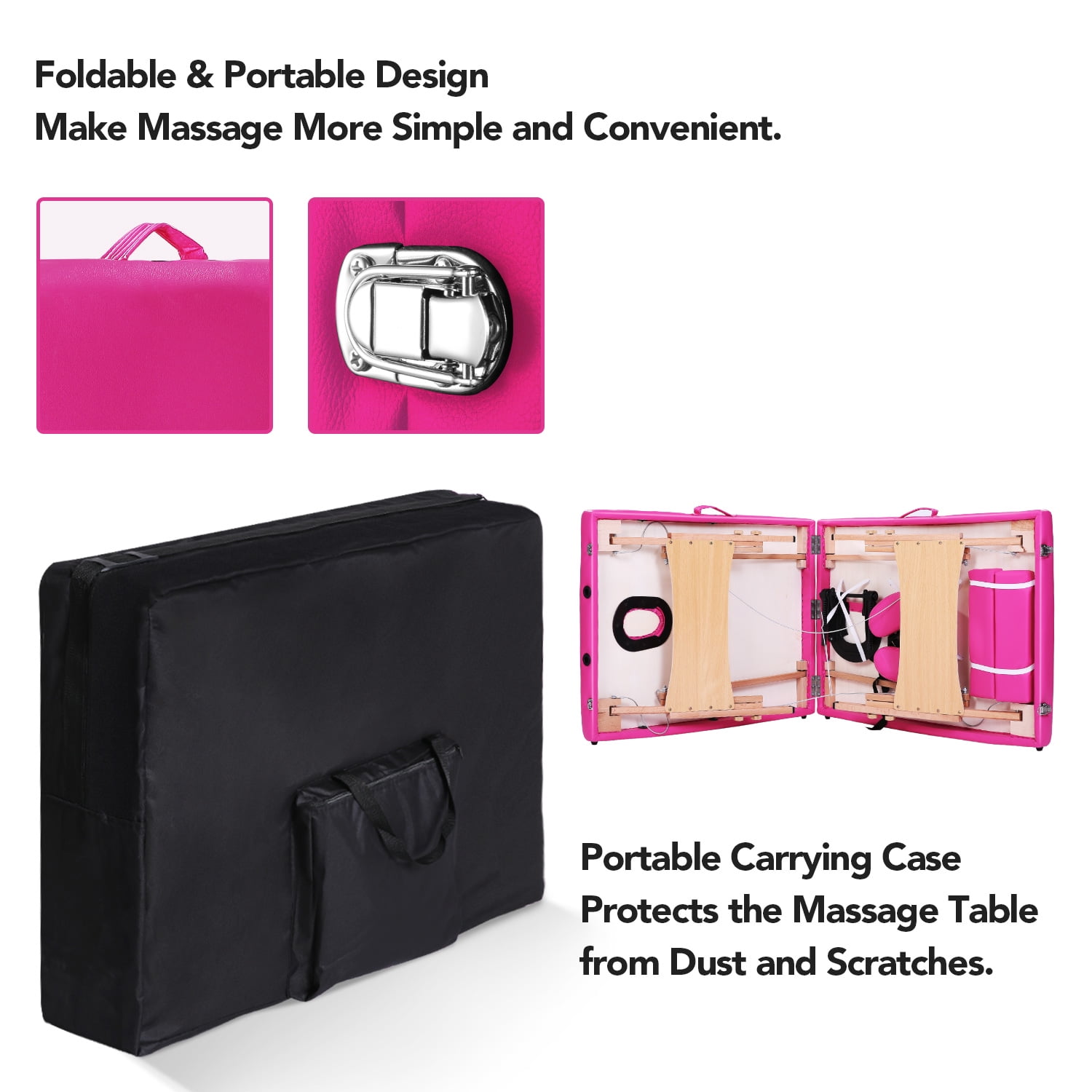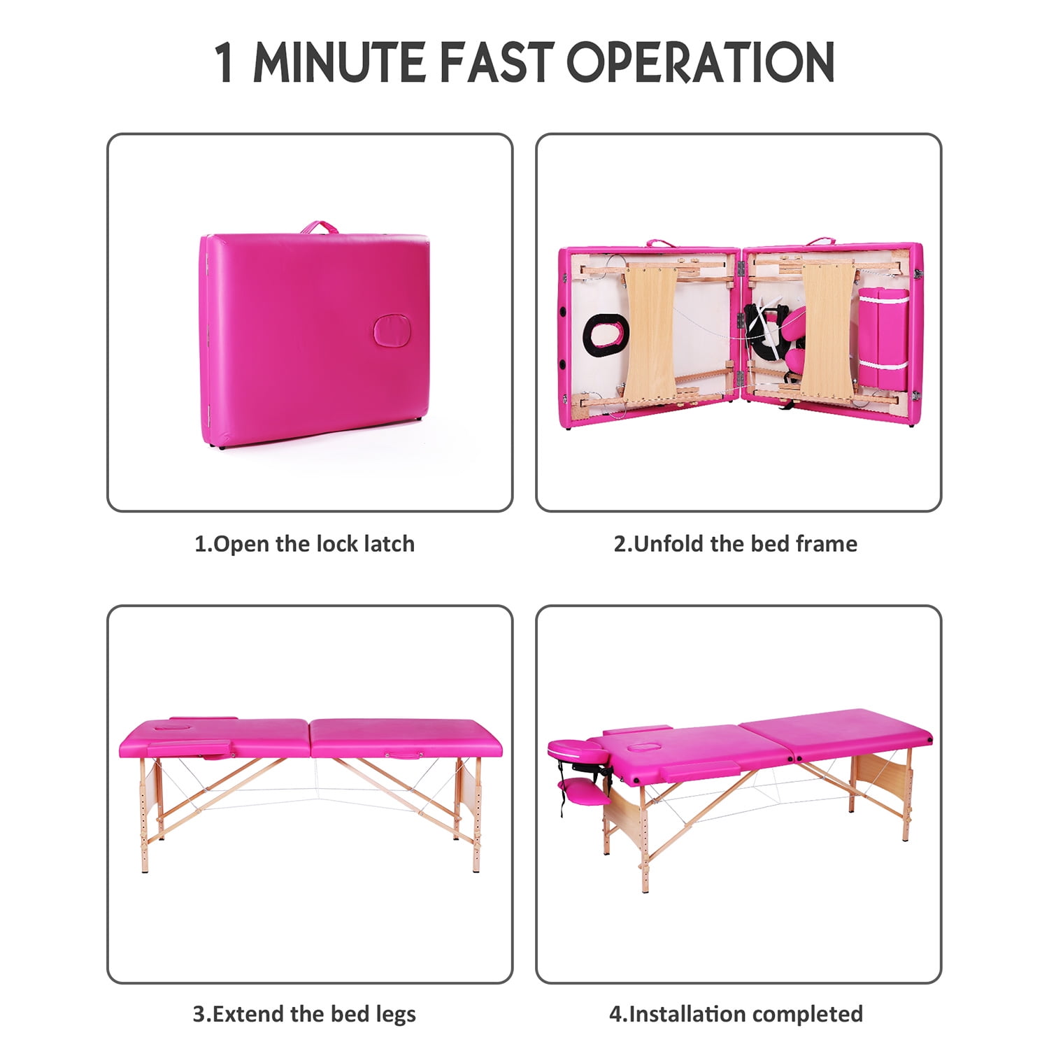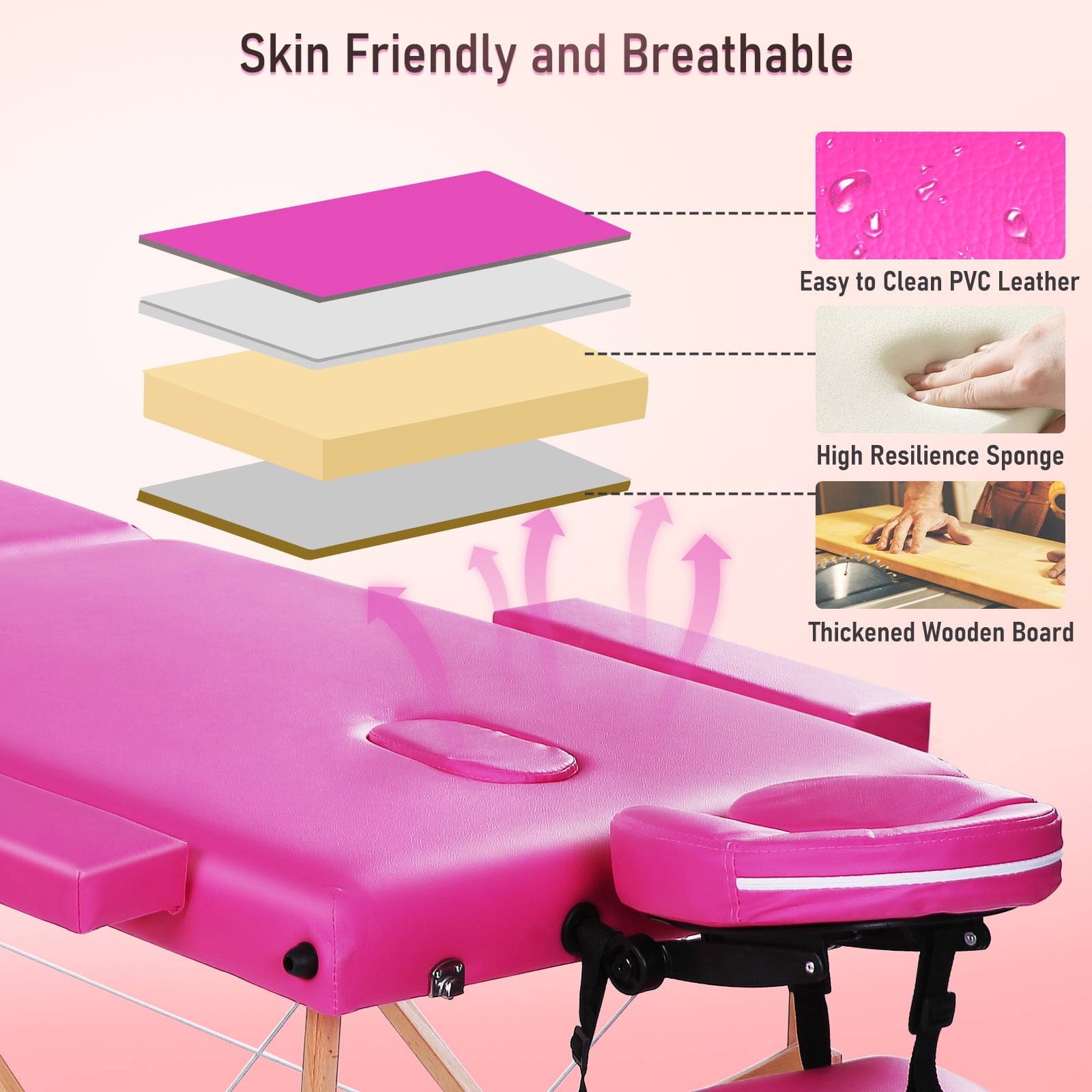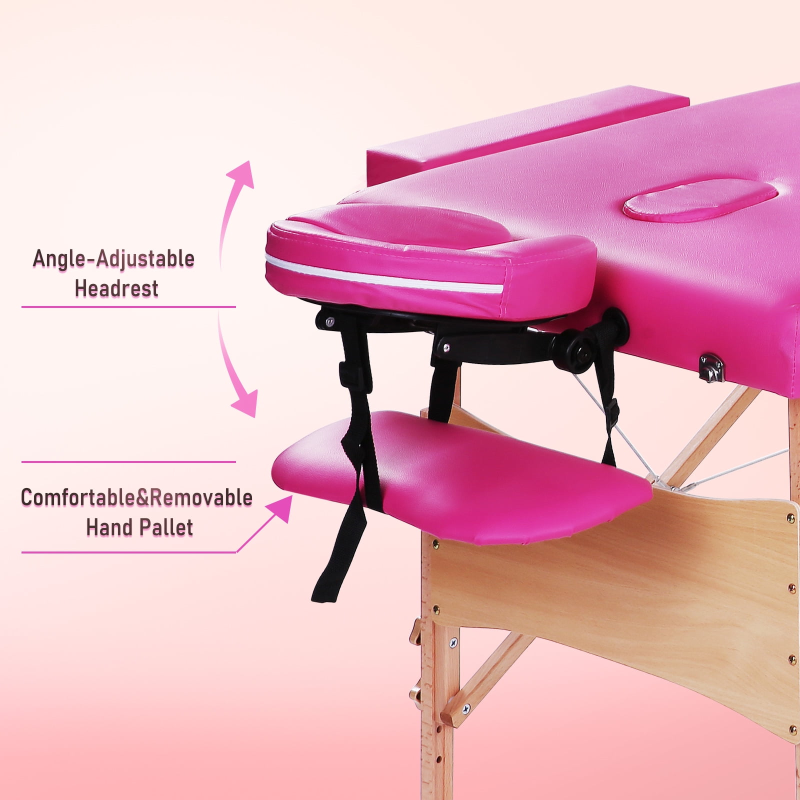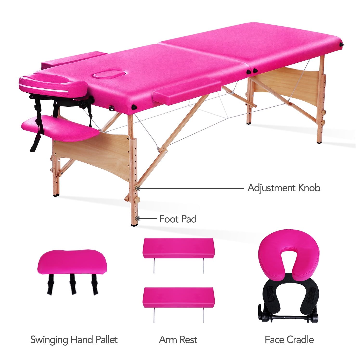 Naipo Massage Table Portable Massage Bed Pink Lash Bed Spa Bed Adjustable Height 2 Folding Wood Maximum Weight 496LB Carry Case