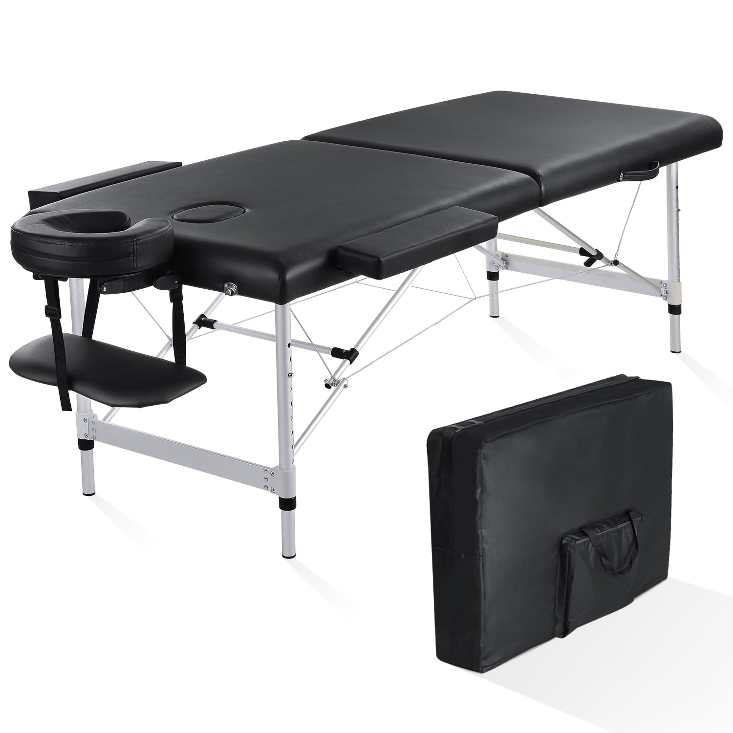 Assembled Massage Table Height:24 – 33In. Assembled Product Length:84 In. Assembled Product Width:23.6 In 1 x Professional Grade Massage Table. 1 x Adjustable Headrest. 2 x Armrests. 1 x Nylon Carry Case. 1 x Arm Sling. 1 x User manual. Naipo Massage Table 2 Folding Aluminum????: Naipo massage table combines luxurious comfort with convenience. A fold-and-carry design ideal for both certified massage therapists, as well as at-home bodywork enthusiasts. The table features professional-grade craftsmanship, including a sturdy aluminum frame along with aluminum push-button adjustable legs. which offers quick, easy, and accurate height adjustment. Its support cables are composed of high-quality steel providing solid support for up to 496 pounds. Ultra-padded with a deluxe 2″ high-density foam that provides ample support while contouring the body. It is constructed with an adjustable headrest and removable winged armrests for additional comfort. This massage table is portable and can be folded up into a carrying case. And this massage bed weighs only 25.4LBS, which is convenient to take.