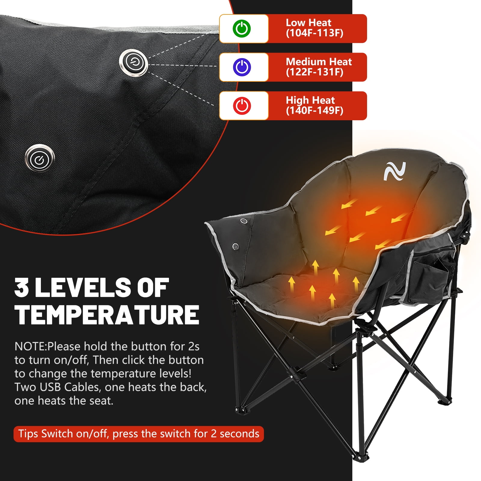NAIZEA Extra Wide Heated Portable Camping Chair, 3 Heat Levels, Folding Moon Saucer Lawn Chair for Outdoor