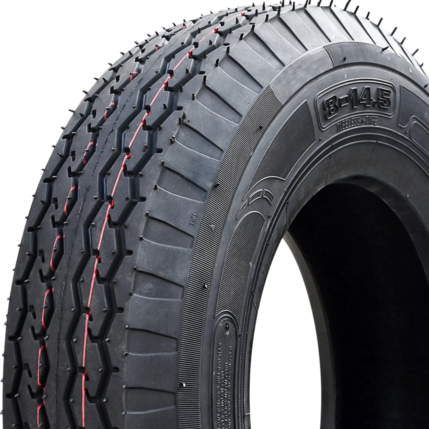 Designed for use on trailers and mobile homes; not approved for use on passenger vehicles Produced by top quality Bias factory in China Larger profile with wider tread surface and ultra-higher carcass strength Triple-bundle with compressed packaging, 2000pcs/ 40HQ Tough construction increases strength and durability for a longer tread life Size: 8-14.5 Load Range: G Product May Vary From Picture Wheel/Rim Not Included
