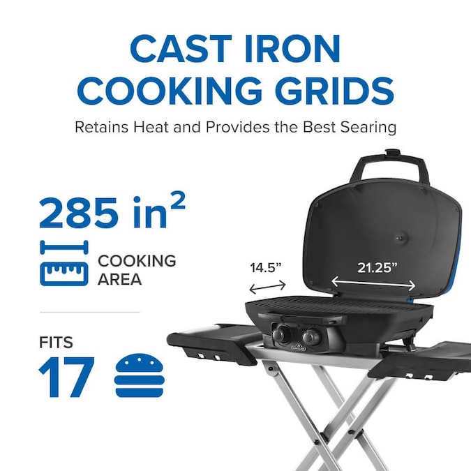 The Napoleon travel Q™ 285X portable propane gas grill with scissor cart is a grill that is leading the way with innovation and quality. Napoleon’s travel Q™ 285X has everything you need for perfect portable grilling anywhere. Featuring all-terrain wheels, easy folding, setup, and compact storage. Two burners provide precise heat for indirect grilling and smoking, or high heat searing and is ideal for cooking small chickens or roasts thanks to a cast aluminum lid. You’ll know it’s a Napoleon with the iconic wave™ cooking grids for those distinctive sear marks. The porcelain coated cast iron cooking grids and griddle season up just like a cast iron frying pan. The travel Q™ 285X has everything you need for successful grilling on the go. Winner of two prestigious awards, the 2014 Vesta in the gas barbecue division, and the award for top ten best value grill from amazing Ribs.com.