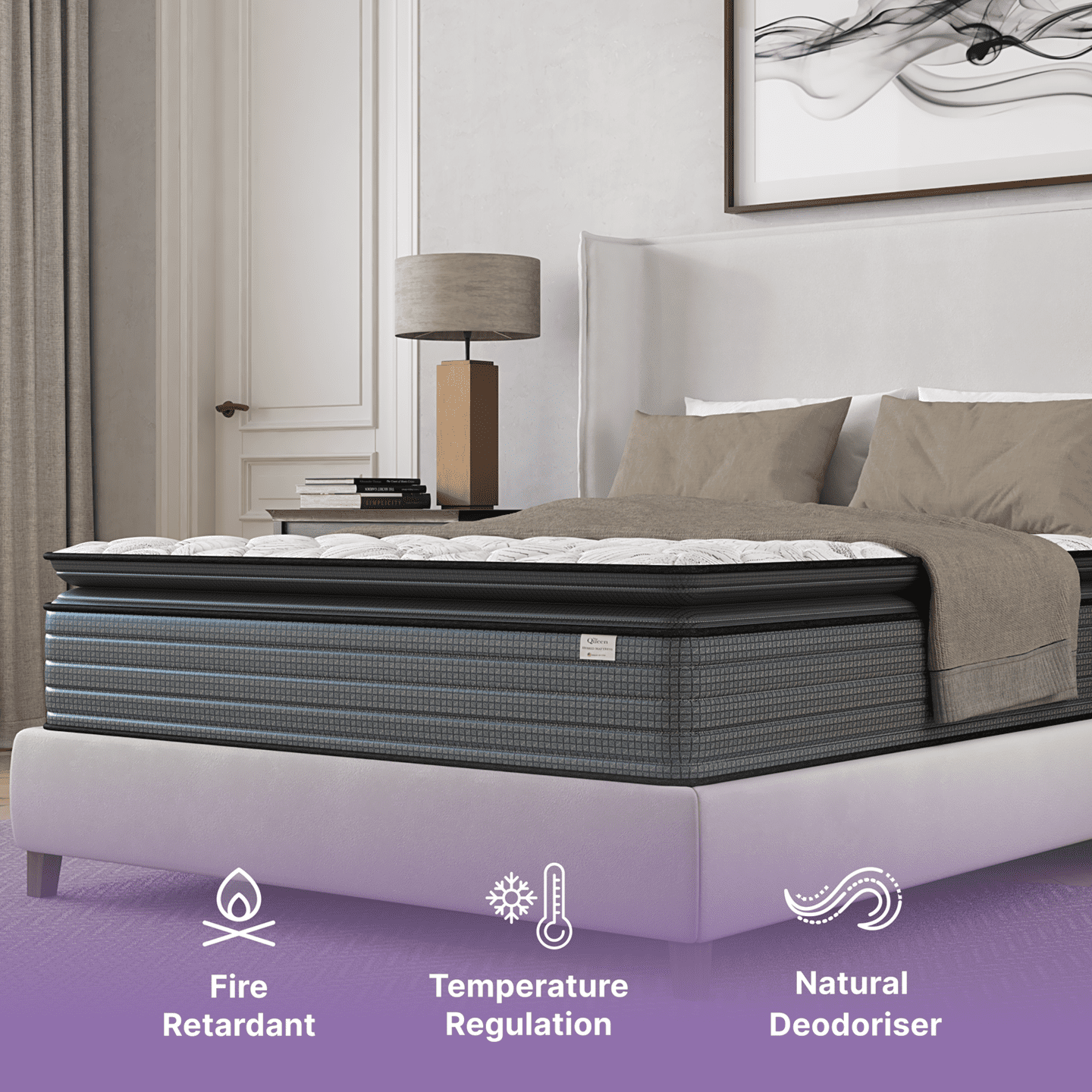 Do you want to sleep like a royal? NapQueen Isabella Pillow Top Hybrid Mattress has a beautiful and soft quilted cashmere cover that will make you feel like you are sleeping in a royal bed. Perfect insulation properties work magic, so you don’t feel hot at night. Features and perfect skin touch help adjust to body temperature, making it the ideal mattress for all seasons. 360 individually power packed wrapped coils, and memory foam layer that helps distribute body pressure to help you wake up refreshed. The CertiPUR-US certified polyurethane foam is made without harmful chemicals. Also compatible with any adjustable bed frame.