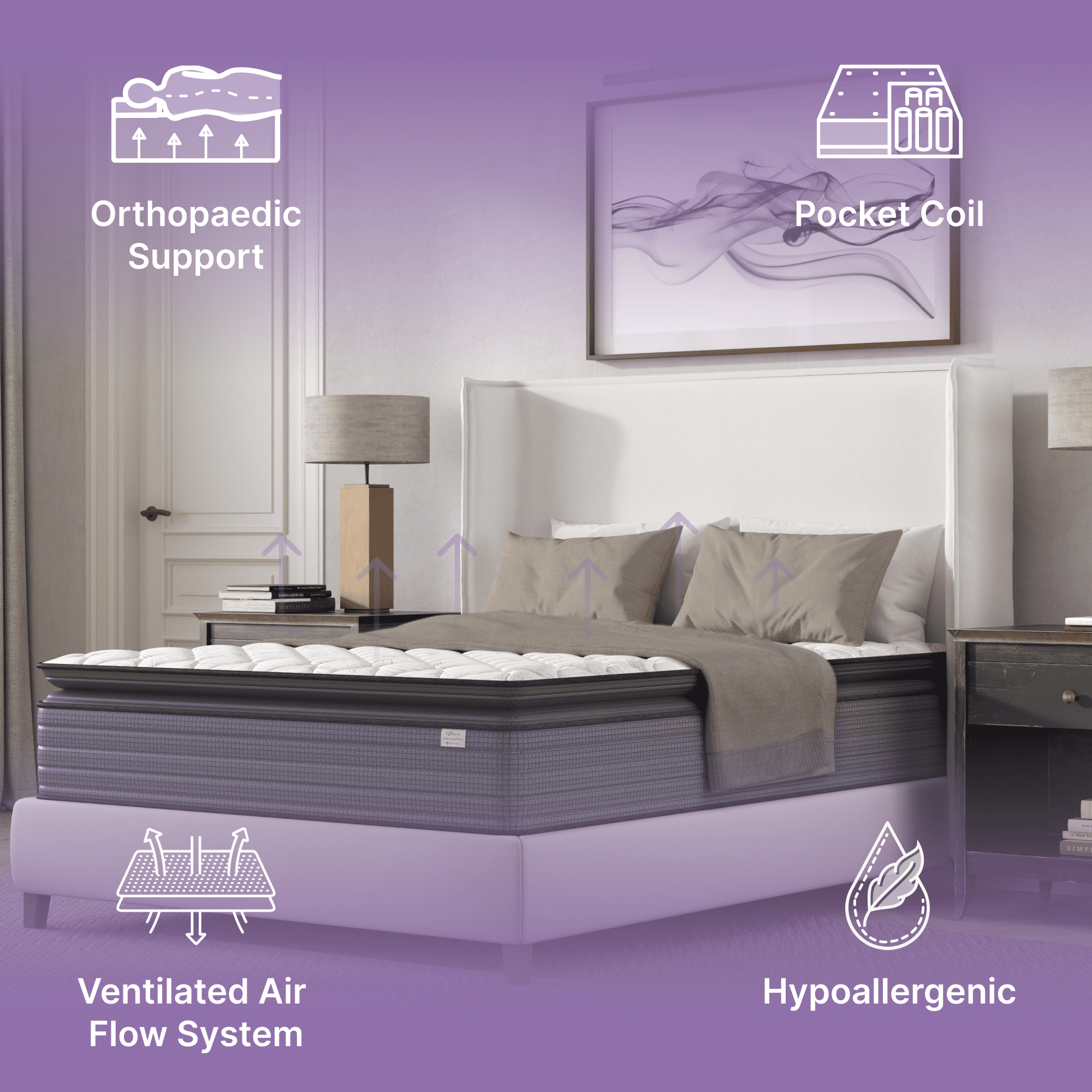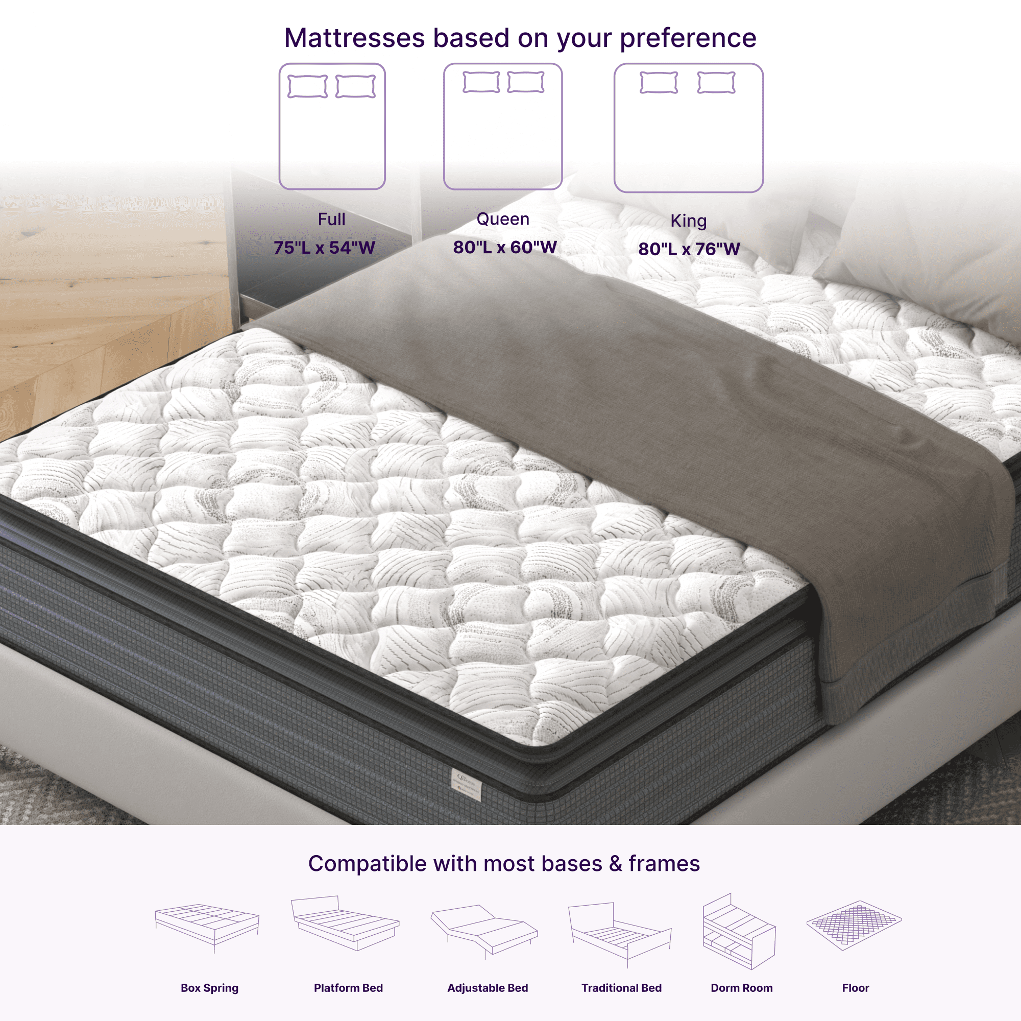 NapQueen Isabella 14”, Queen Hybrid Pillow Top Mattress, Fiberglass-Free, Adult