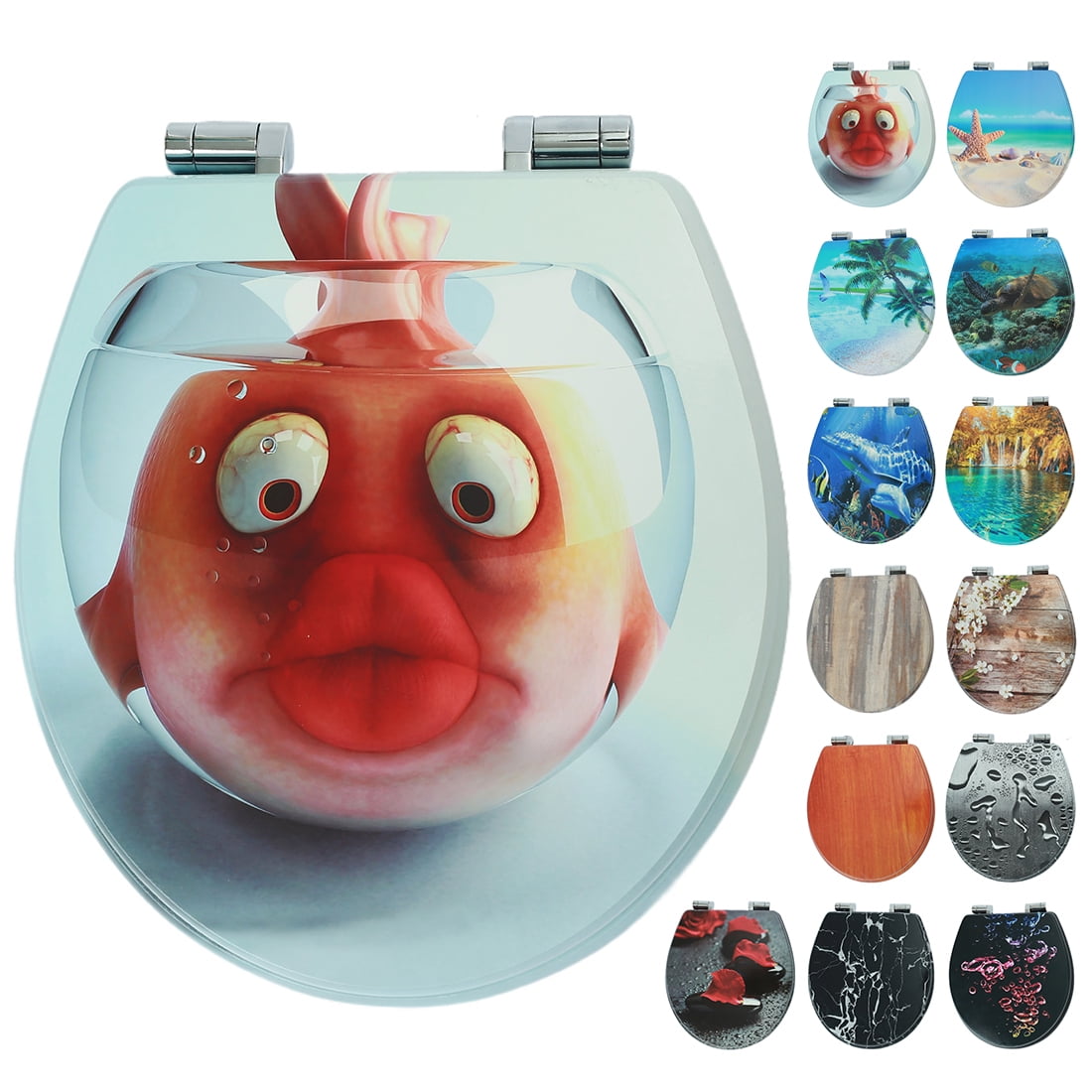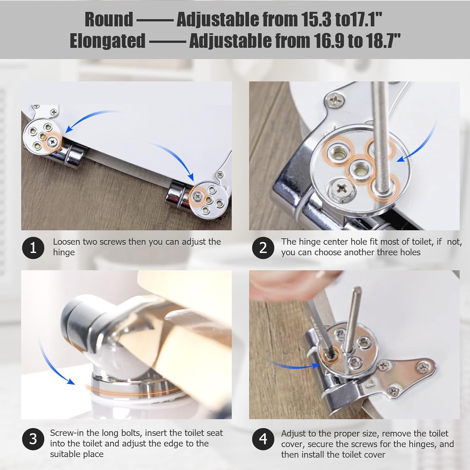 Selling Point: ⭐【Stable & No Wiggle】: Impact absorbing heavy duty hinges secures seat into place. ⭐【Easy Installation】: The seat fastening system will never come loose, and it is easy to install without extra tools. ⭐【Solid Wood Material】: With durable and earth-friendly materials and processes, durable non-porous enameled wood seat provides a superior high-gloss finish, which resists chips, scratching and stains. ⭐【No Slamming】: Seat closes slowly and quietly without slamming, eliminating pinched fingers. ⭐【Perfectly Fits Most Round Toilets】: Standard fit compatible with most elongated front toilets, including er, American Standard, ToTo and many more. Recommended for residential use. ⭐【High-Quality】: toilet seats feature a durable surface, stable hinges and spacers that can support up to 440 pounds. Once installed, it never loosens and stays lifted perfectly. If there is shifting, don’t worry. Please check whether the screws are tightened or the installation location is correct. And you will get a wonderful fit toilet seat. ⭐【Stylish & Unique Appearance】:Different style and looks are available, which will be a special decoration for your toilet. Advanced manufacturing process and high quality material provides long serving life and better use experience. Specification: Item Weight:5.9pounds Package Dimensions:18.9 x 14.2 x 0.99 inches Material:‎Wood Shape: Oval, Round ❗NOTE: 1.Due to different personal measurement methods, there will be an error of 1-3 cm.(1 inch = 2.54 cm) 2.If you have any questions, please contact us as soon as possible, we will try our best to help you!