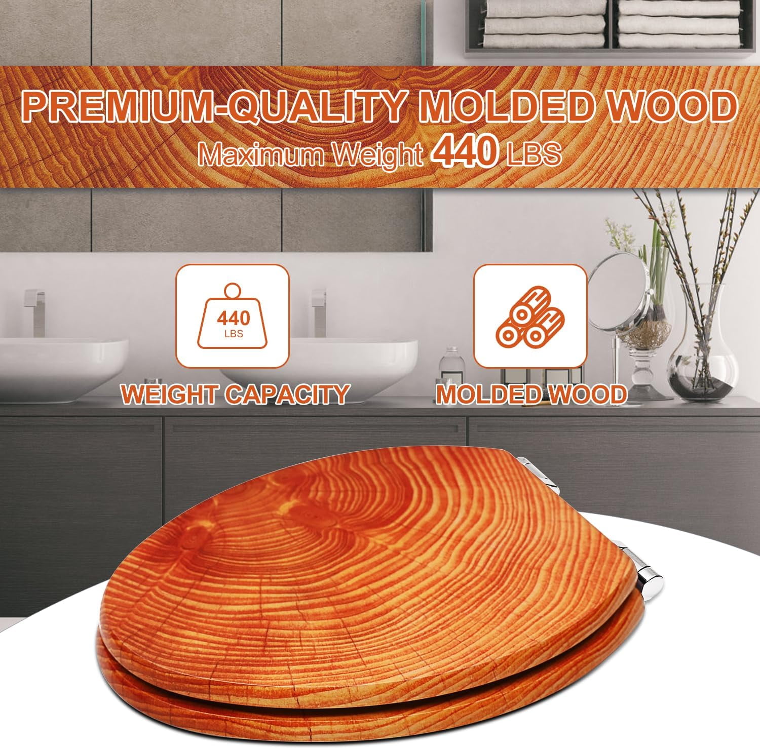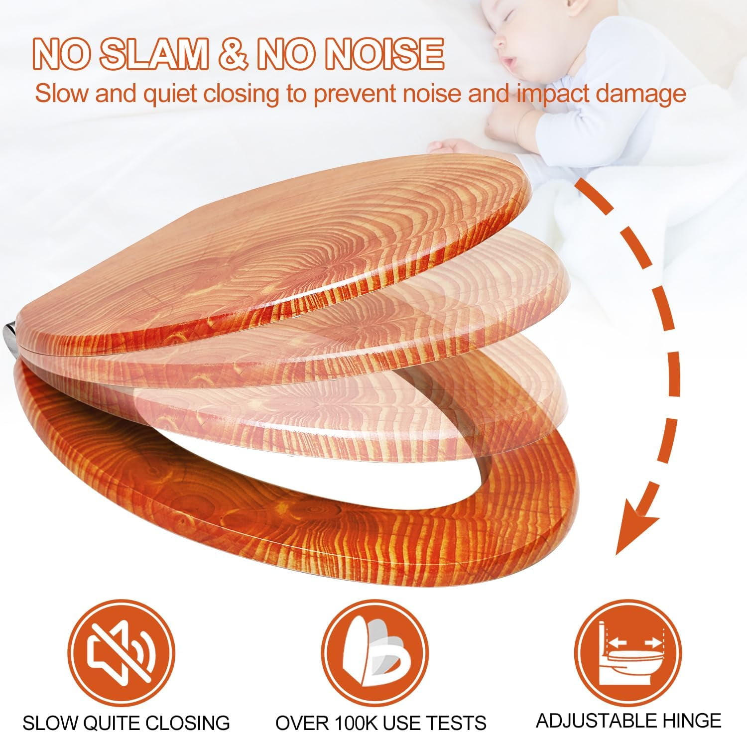 Nastarki Elongated Toilet Seat, Slow Close Wood Toilet Seats, Wooden Toilet Seats with Strong Alloy Hinges
