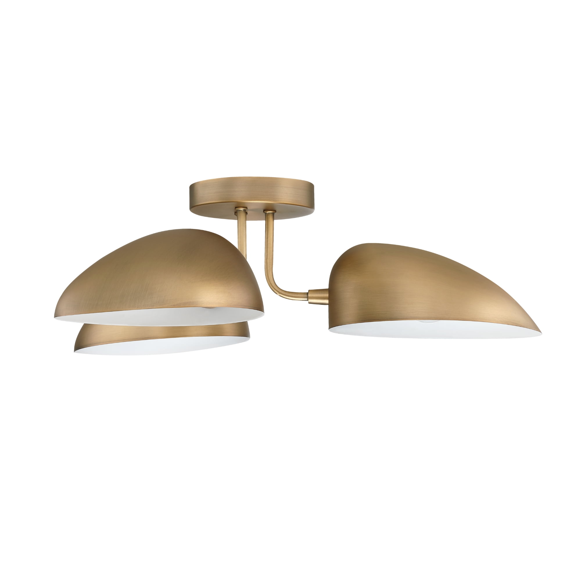 Argo light fixture features 3 individual arms with three ample shades that gracefully illuminate interiors. Its vintaged brass finish creates a unique and retro design to complement any room. The ceiling mount light has adjustable shades to direct upwards for a soft lighting effect or adjust the shades facing down to provide ample light and style to any room. Argo semi-flush mount is versatile and can be used with a dimmable bulb to control the ambiance of the room. Suggested Bulb: Type A19, Max. Wattage: 180W (60W per bulb) The retro design of Argo with rounded curves provide the perfect focal point of intrigue and sophistication to install in your hallway and entryways or as a light fixtures ceiling for your kitchen, or as a bedroom ceiling light. Easy 30-minute assembly and lifetime manufacturer warranty: try for 100 days.