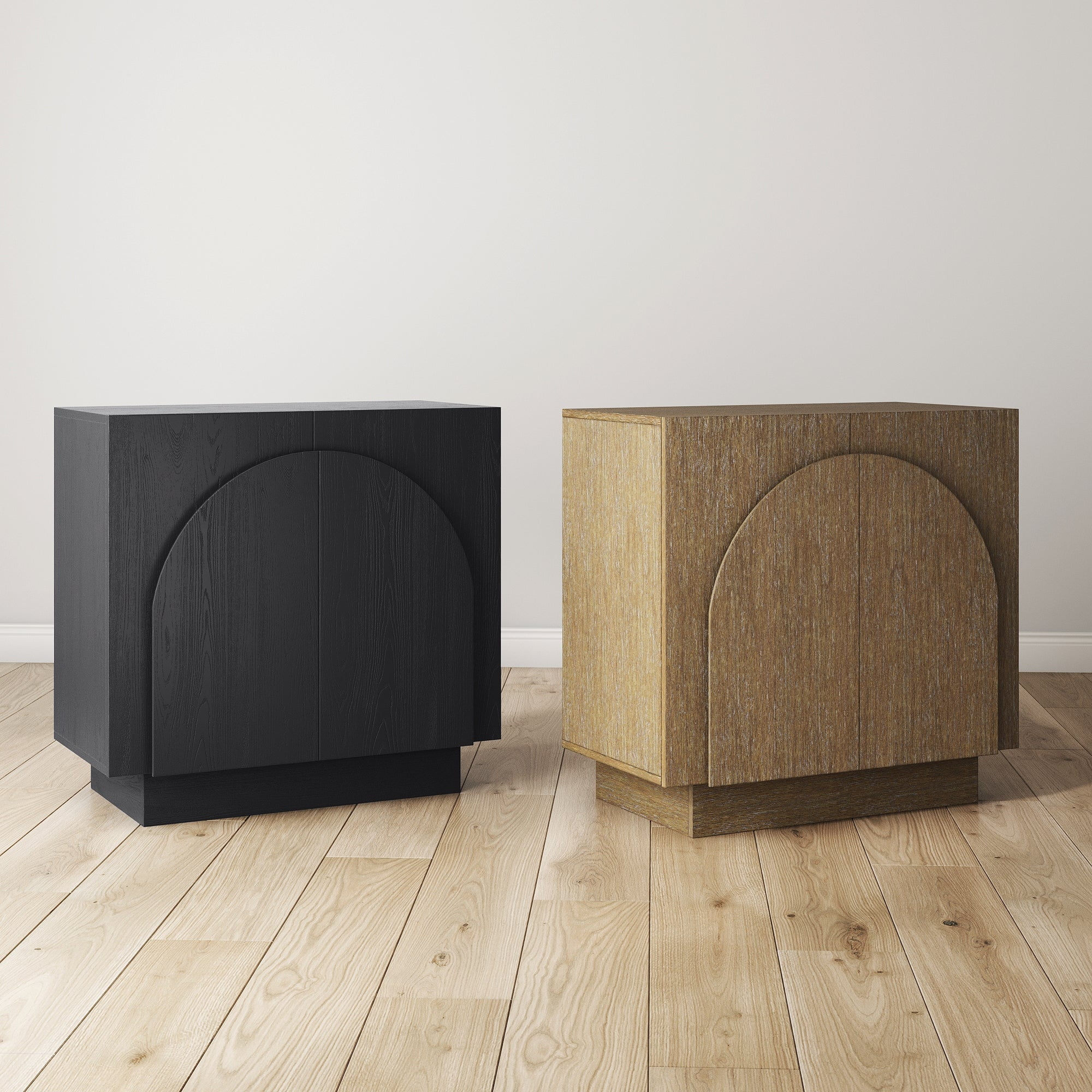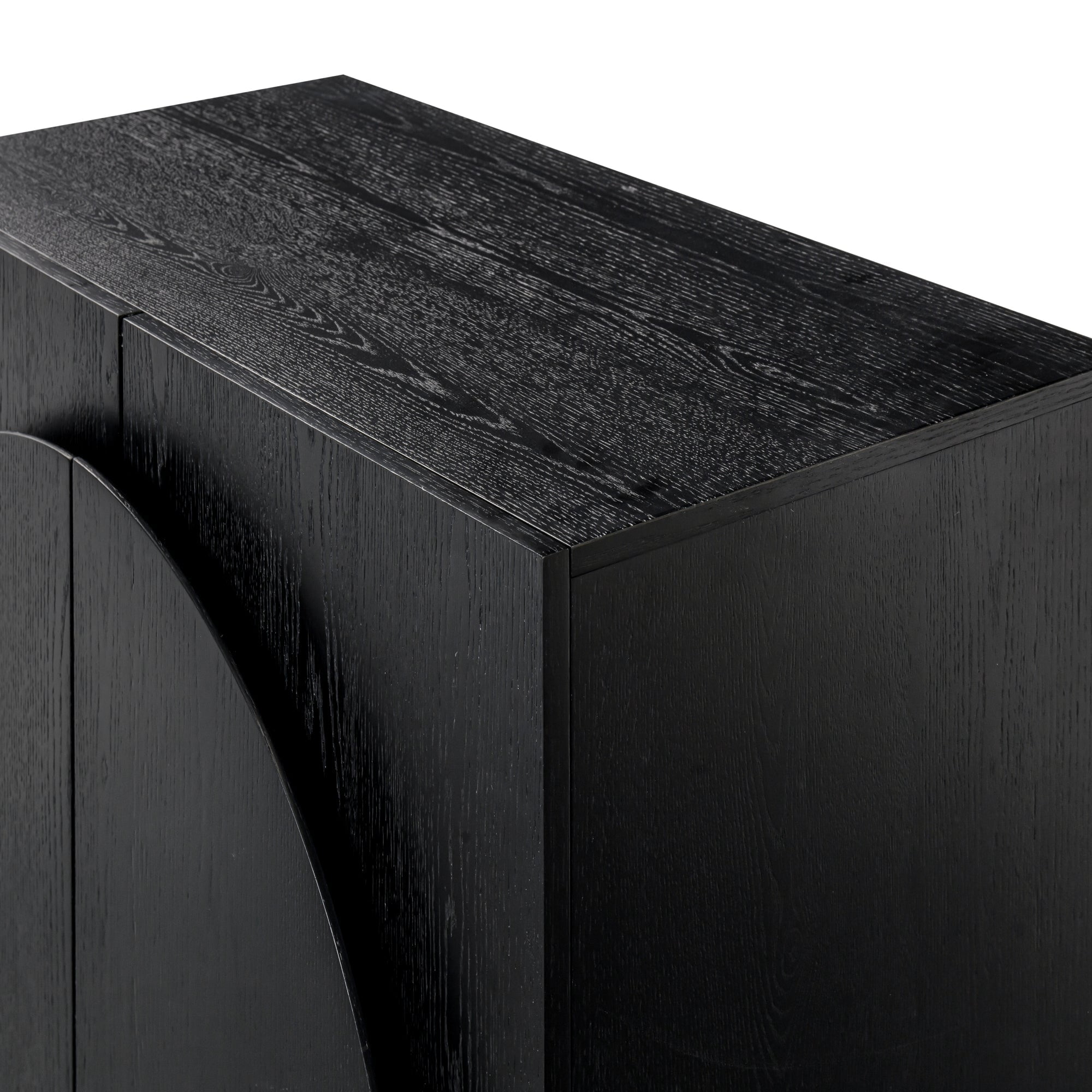 Iris is a mid-century modern credenza or storage cabinet that will transform your living space in minutes. It features a round-edge silhouette giving it a unique yet timeless design. Crafted in clean black oak finish, this accent cabinet adds character and warmth to any room.