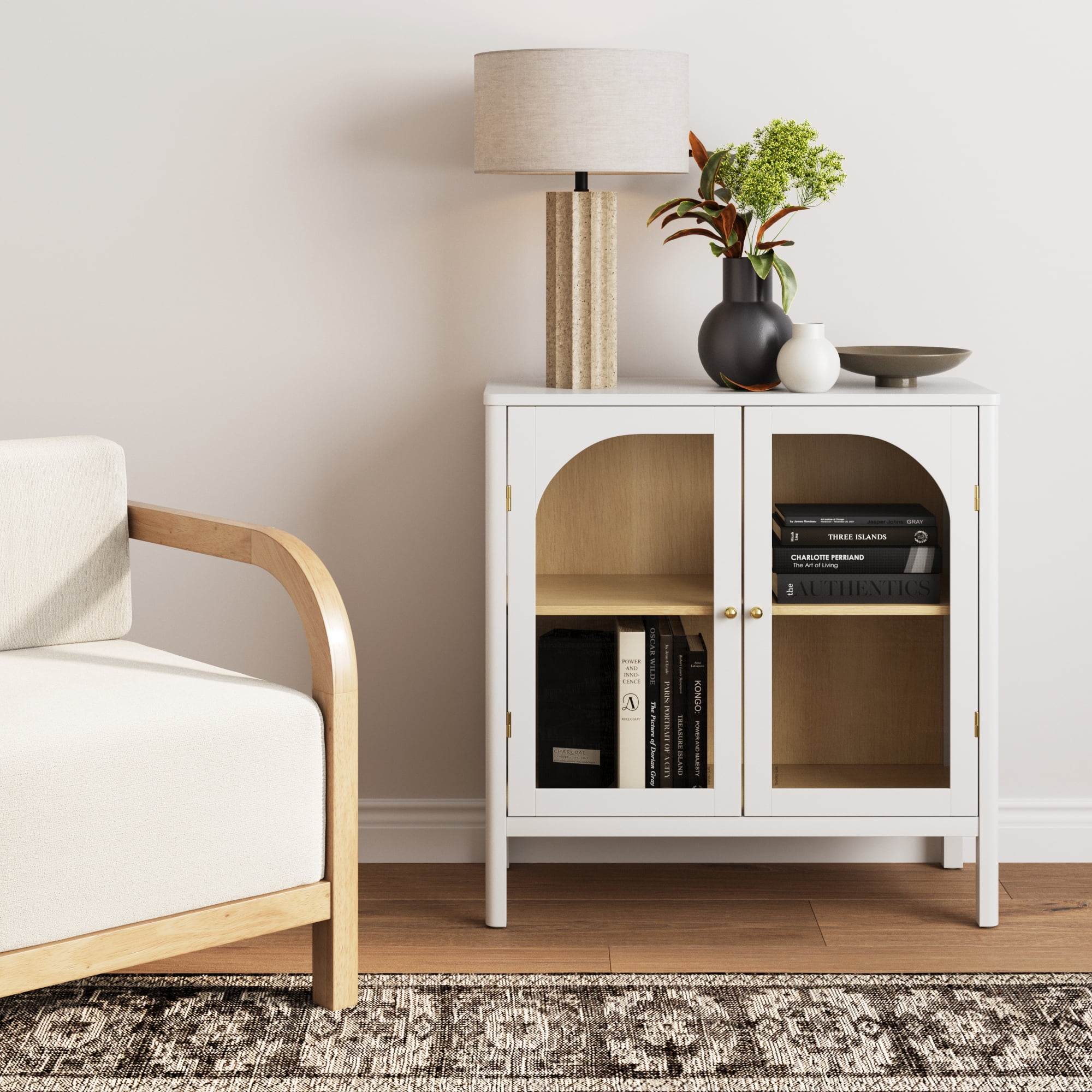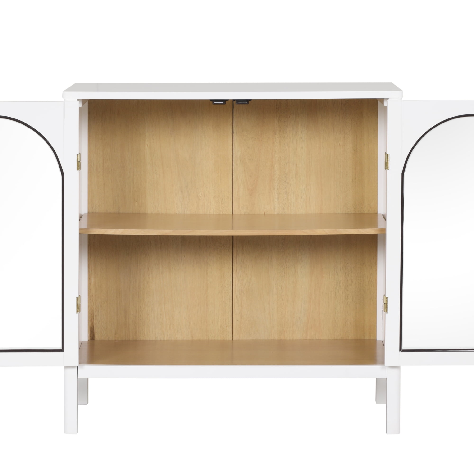 Mason is the ideal storage cabinet to display your precious china and flatware. The blend of white, light oak, and brass hardware will give any room that classic elegance, making it a perfect accent piece to your dining room. This credenza highlights its curved glass doors and rounded frames that give it a delicate charm while offering generous storage space. Designed as a modern buffet cabinet, Mason is a stylish and functional addition to your home. Nathan James is the furniture company built for this generation. You don’t need to spend a fortune to get quality design-first furniture and when we say easy assembly, we mean it. Our guarantee is our word. Your purchase is backed by a 100% money-back guarantee. If you have any quality issues just contact us and we will send you a replacement immediately—no questions asked. This product is not recommended for commercial use. Materials: – Rubberwood – MDF – Tempered Glass – Metal Handle Assembly Must-Haves: – Packaging carton as working surface Weight Limit: – 50 lbs