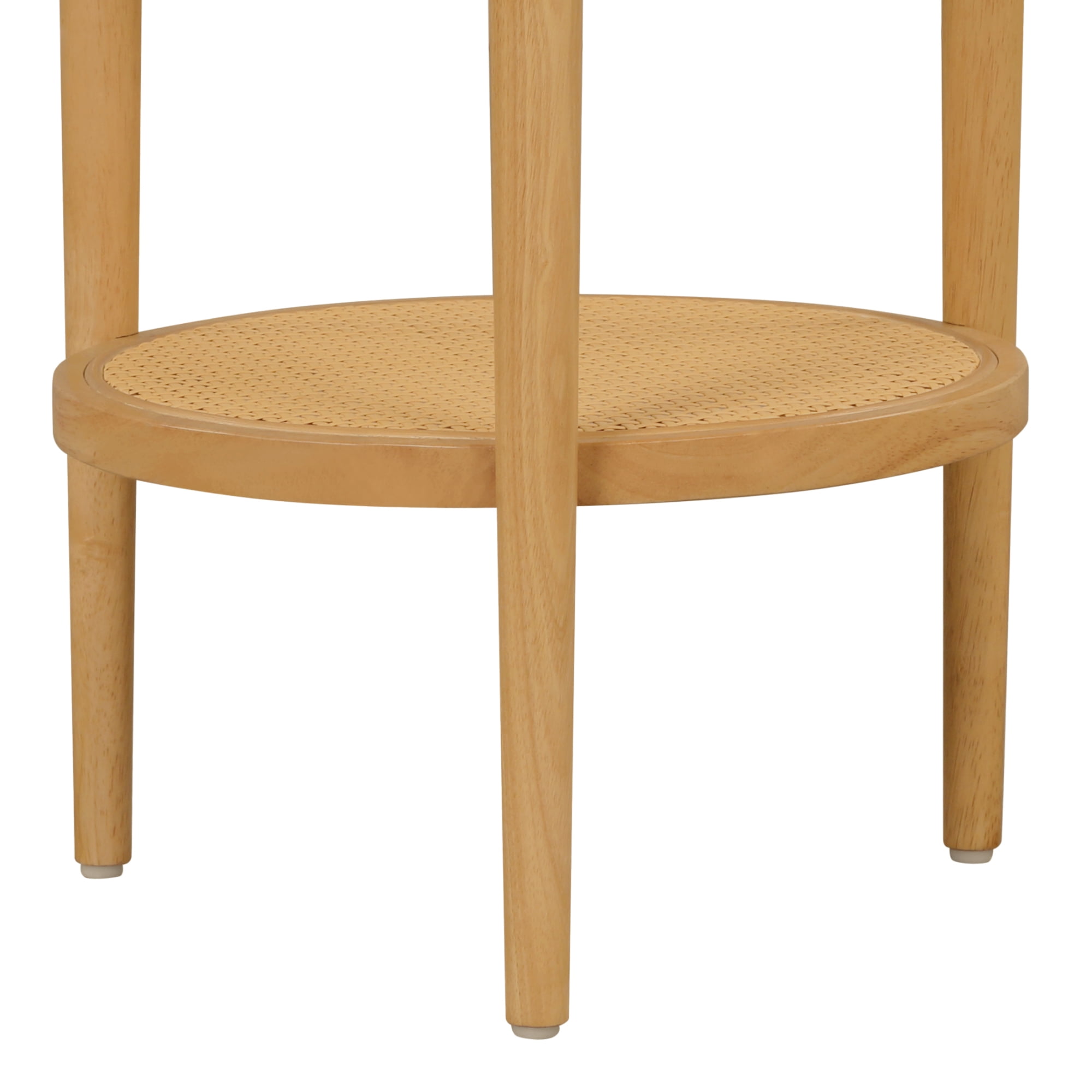 Nathan James Sonia Bohemian 2-Tier Round End Table in Light Wood With Rattan Storage Shelf