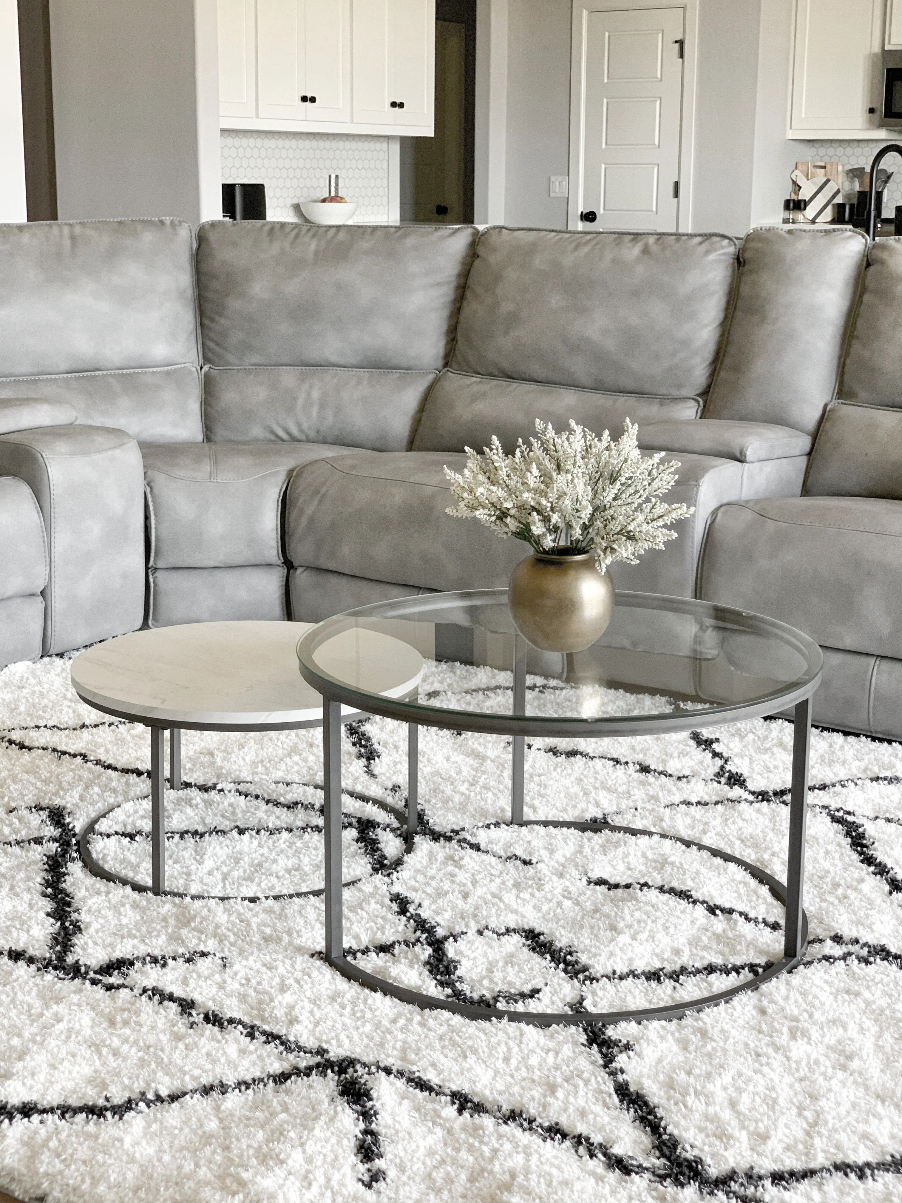 Stella is a unique coffee table with its set of two round nesting tables for a modern space-saving solution in your living room. The modern coffee table is the perfect mix of materials for a luxurious accent piece in your living room. The tempered glass tabletop of the taller table complements beautifully the white marble finish of the smaller table. This round coffee table set is a sturdy design thanks to the powder-coated black matte metal base that offers a clean and minimal design.