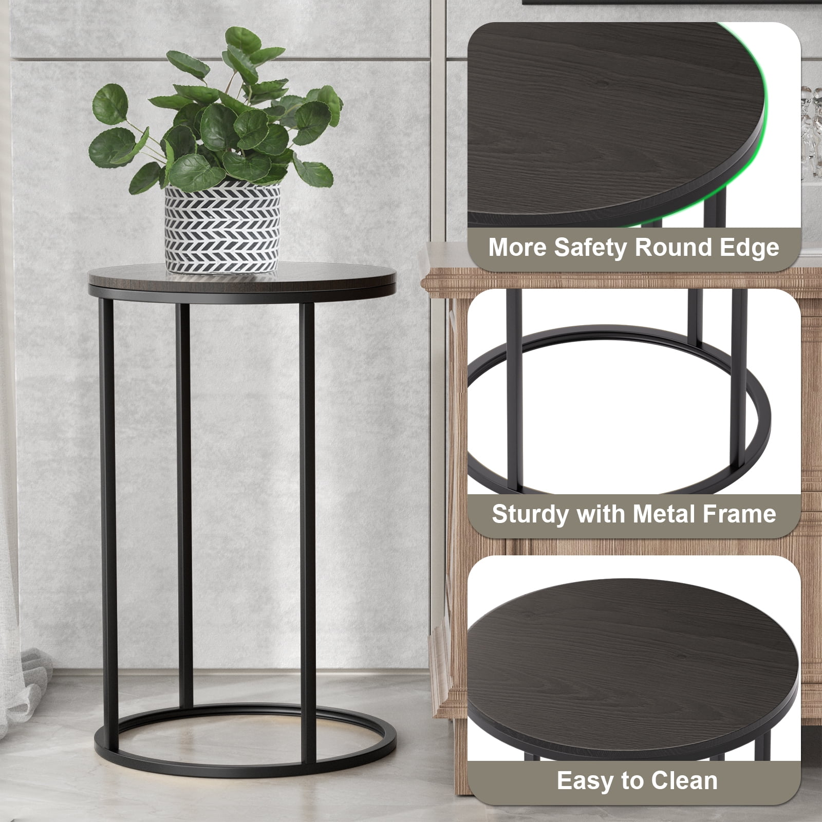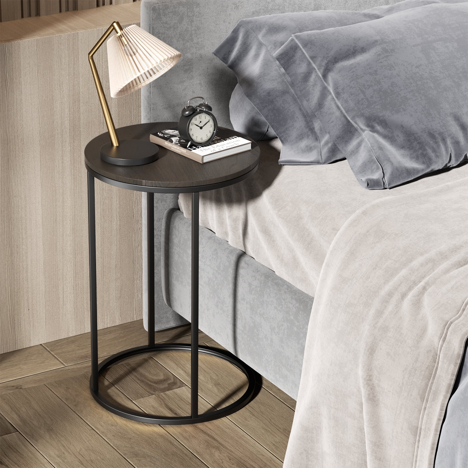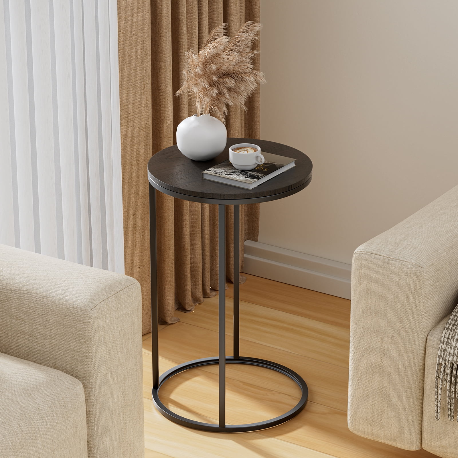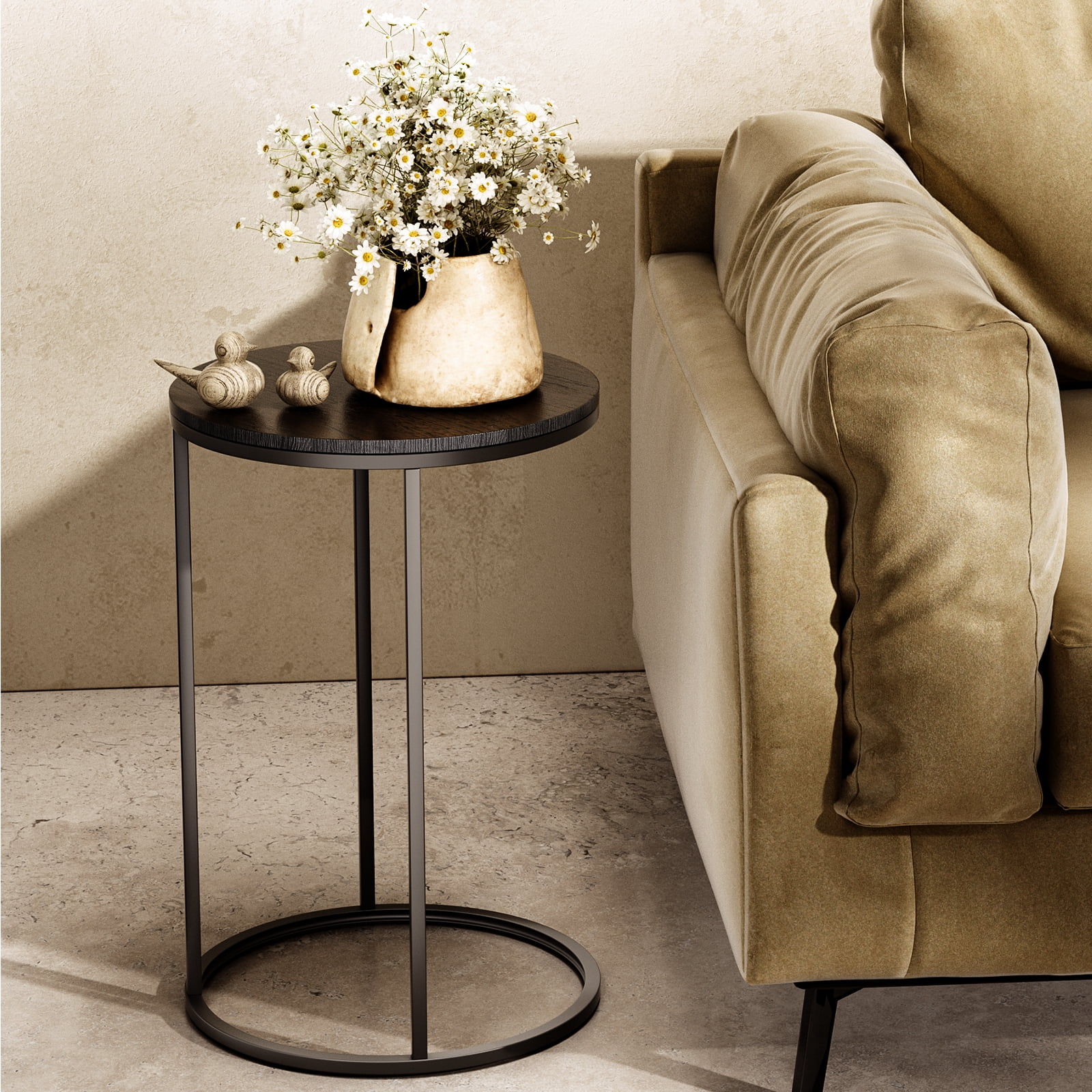 Nathaniel Home 23.5″ H Snack C-Shaped Table, Elegant Modern Sofa Side Table, Round End Tables with Metal Frame, Laptop Coffee Holder for Living Room Small Space Black/Black