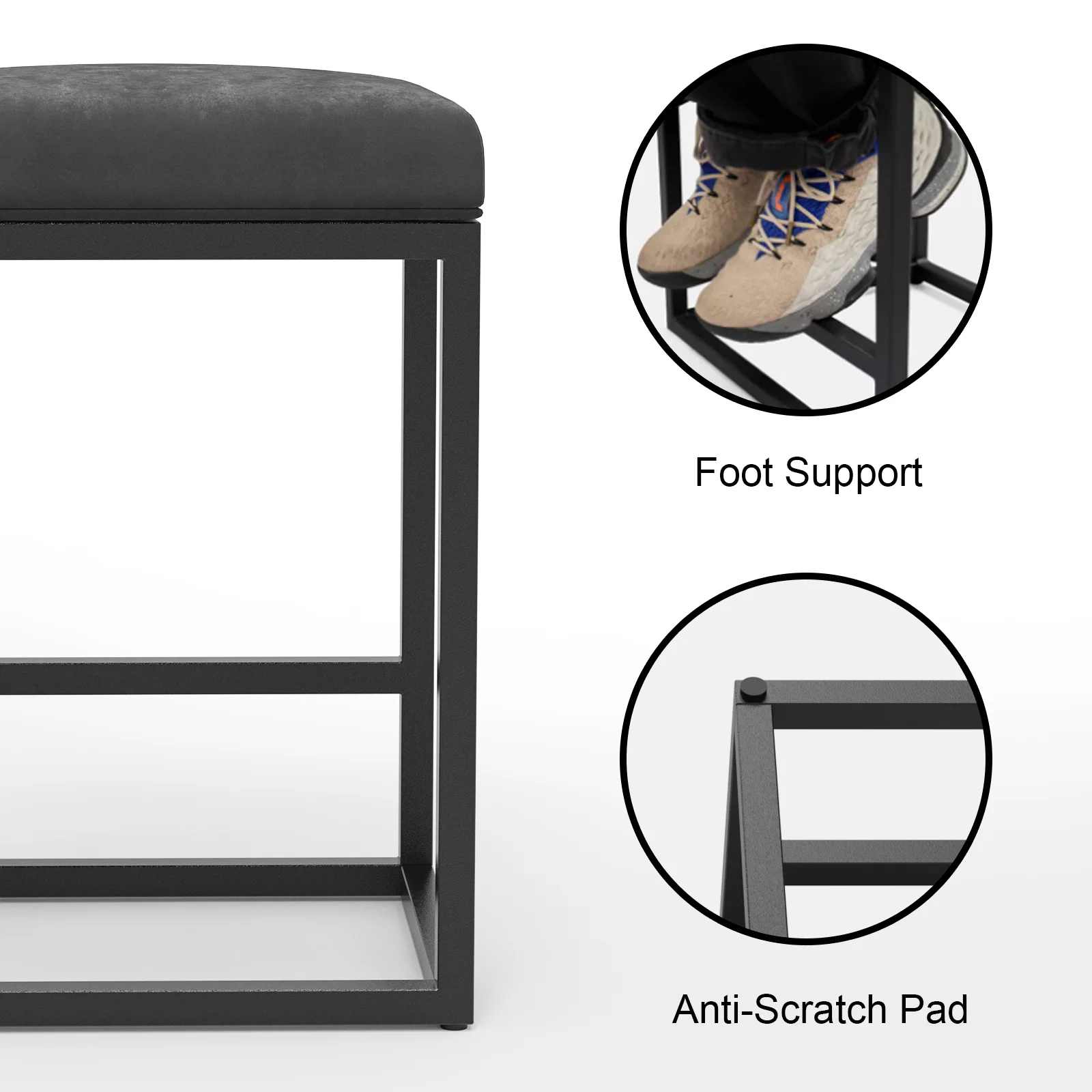 Easy to Clean: The PU leather chair covered with hot stamp cloth are free stain resistance. Stain would not penetrate into the sponge foam, just stays on the surface, If there is a stain on the surface of the seat, it can be cleaned up by a gentle wipe with a damp cloth. Easy to Assemble: The package includes all necessary hardware and instructions. Easy assembly is required by twisting some screws, only 5 minutes. Waterproof & Comfortable: The 3.5″ thick soft padded cushion, comes with waterproof function, water will not penetrate the sponge, will only stay on the surface. 3 centimeters of recycled cotton and 3 centimeters of new cotton is particularly comfortable. Sturdy Construction: Each leg of the stool is covered with screw-in footpads ,which can also protect your floor from slipping and being scratched. The counter stool is made of chromed metal steel frame, which ensures more sturdy. Customer Support: If you have any questions about the product, please contact us, we are glad to provide you with a satisfactory solution. We are working hard to provide better furniture products and good services.