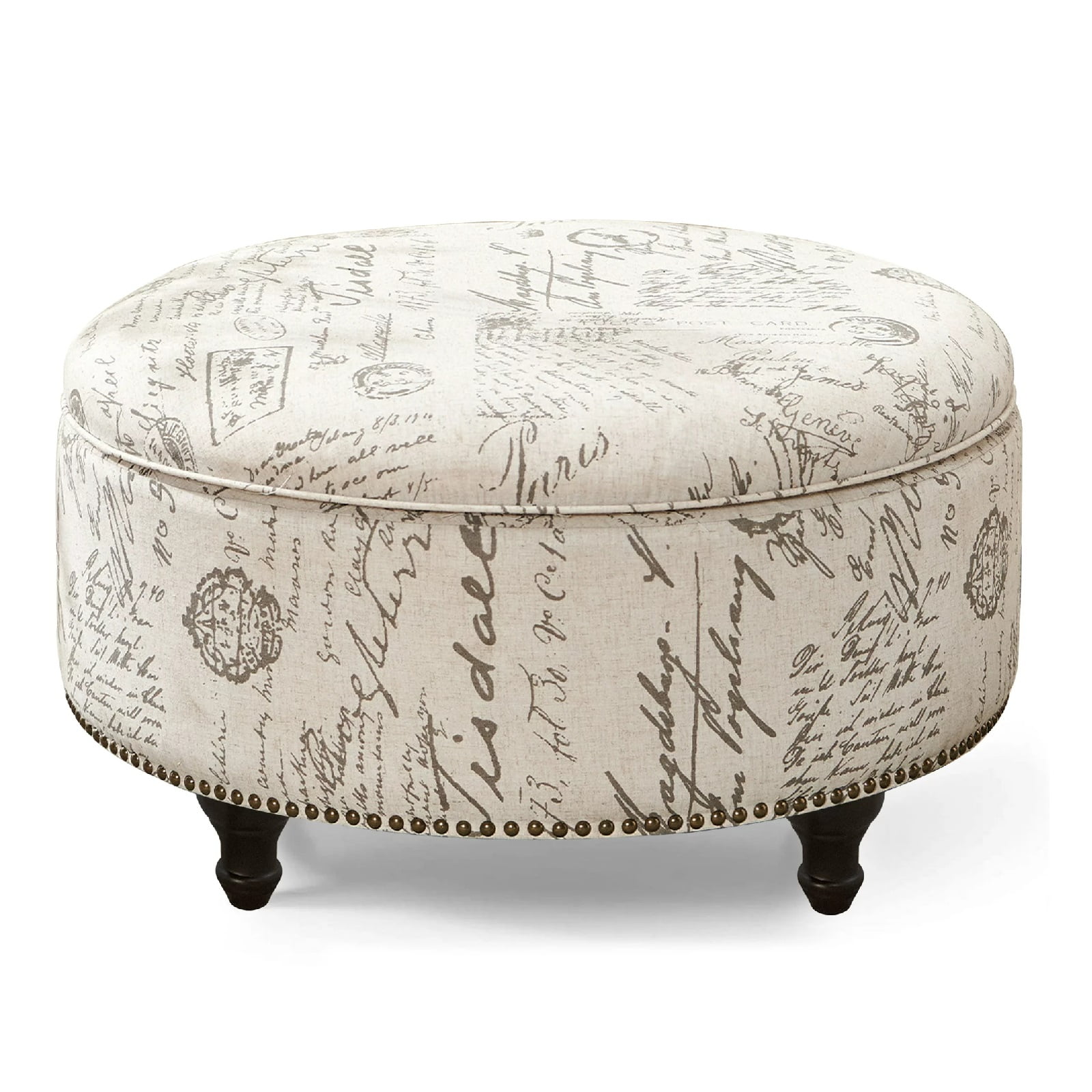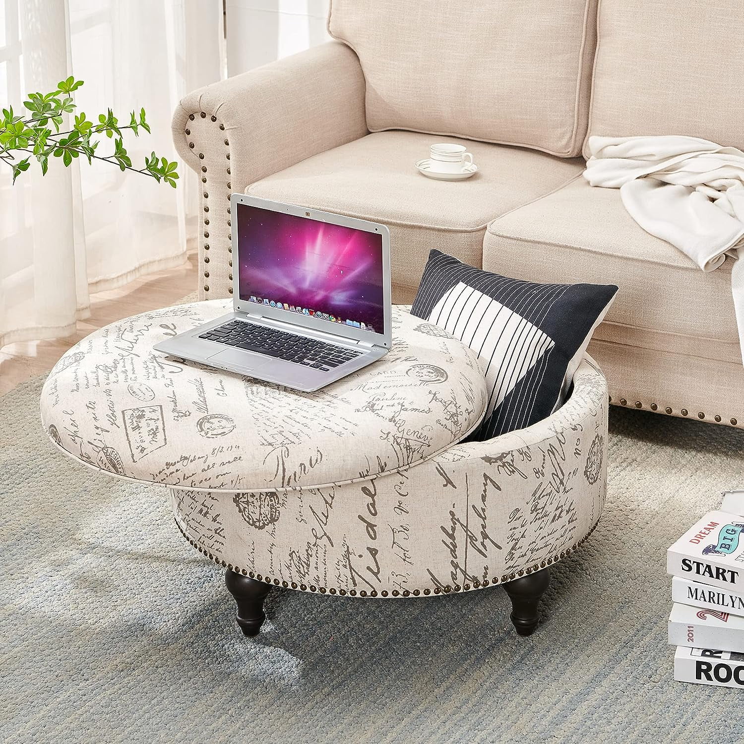 Nathaniel Home, 30″ Round Storage Ottoman Footstool with Removable Lid, Button Tufted Ottoman Coffee Table with Legs, Large Ottoman with Storage for Bedroom, Beige