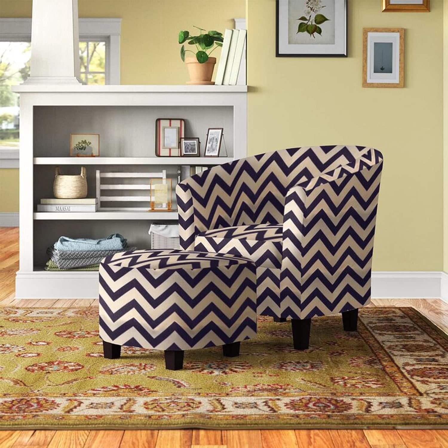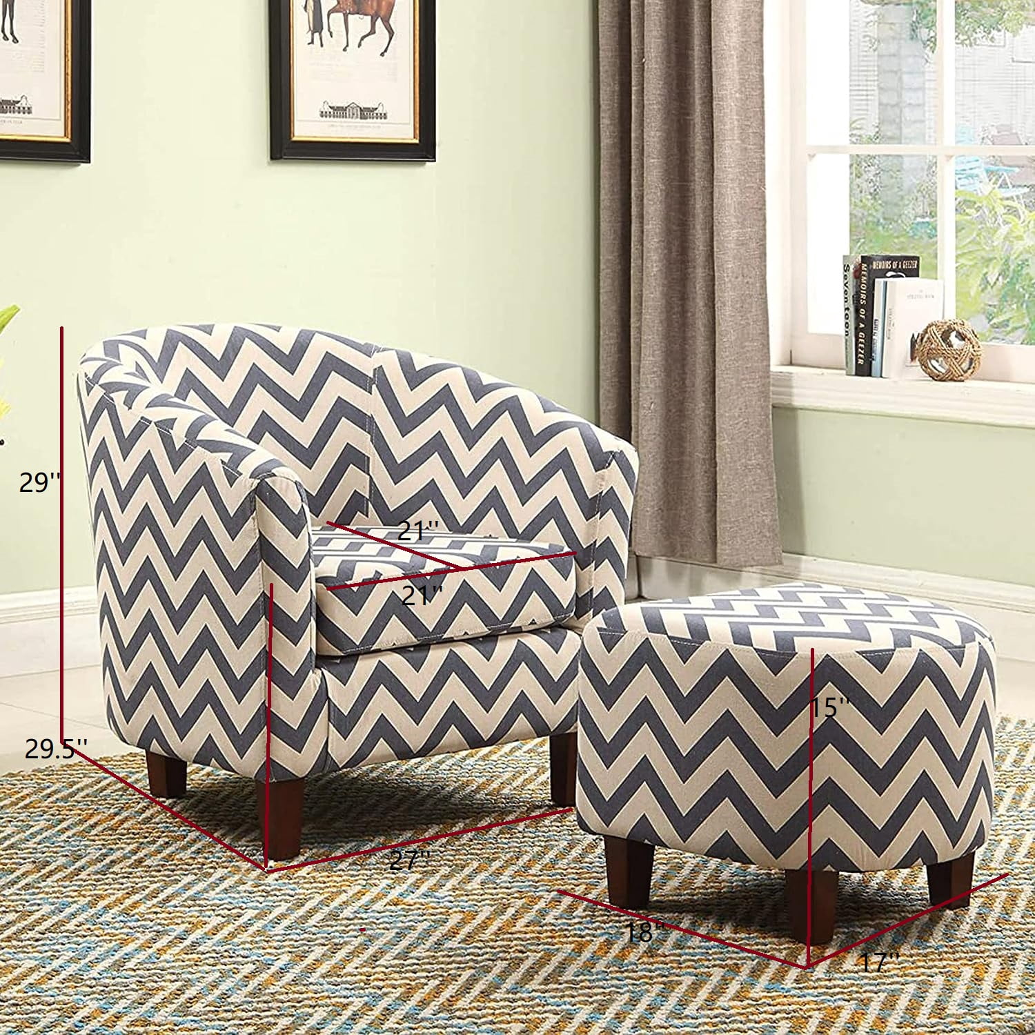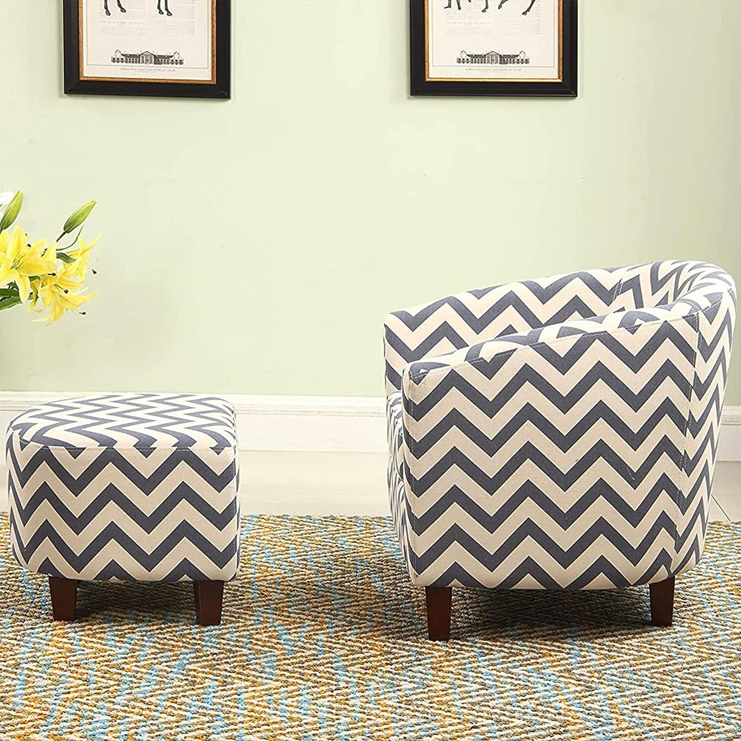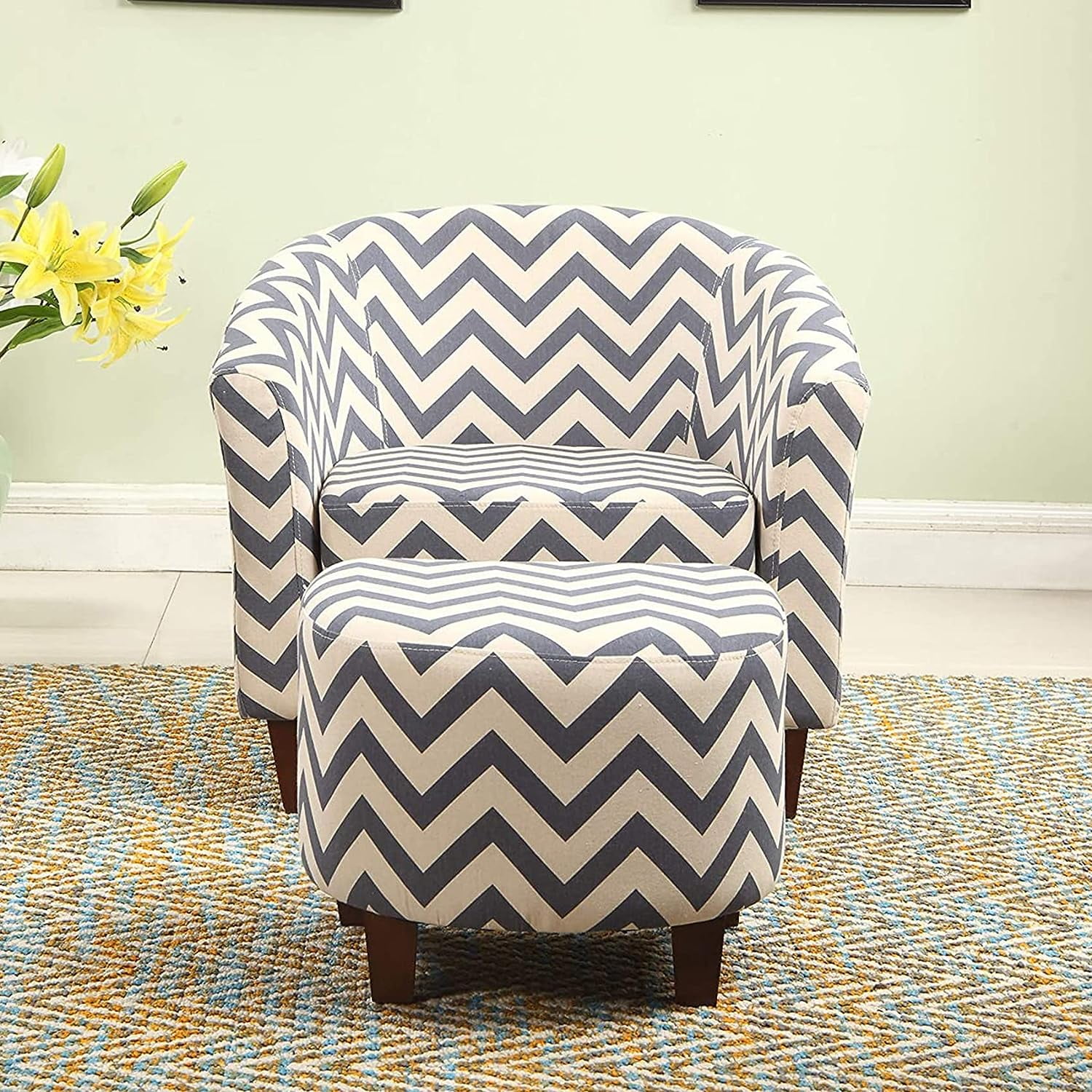 Nathaniel Home Modern Upholstered Living Accent Chair, Fabric Chevron Tub Chair with Round Ottoman