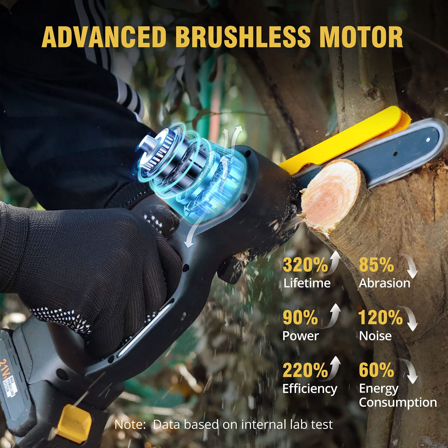 NaTiddy Mini Chainsaw,6-Inch Brushless Mini Cordless Chainsaw with 2 x 2000mAh Battery,2 Chains,Handheld Small Electric Chainsaw for Wood Cutting Branch Trimming