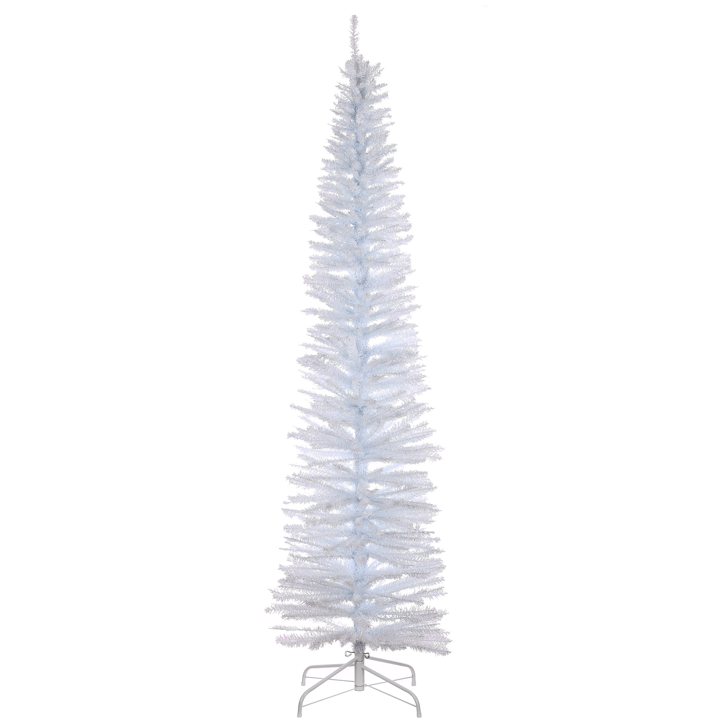 7 ft. Artificial White Iridescent Tinsel Pencil Slim Christmas Tree, White Iridescent, Includes Stand