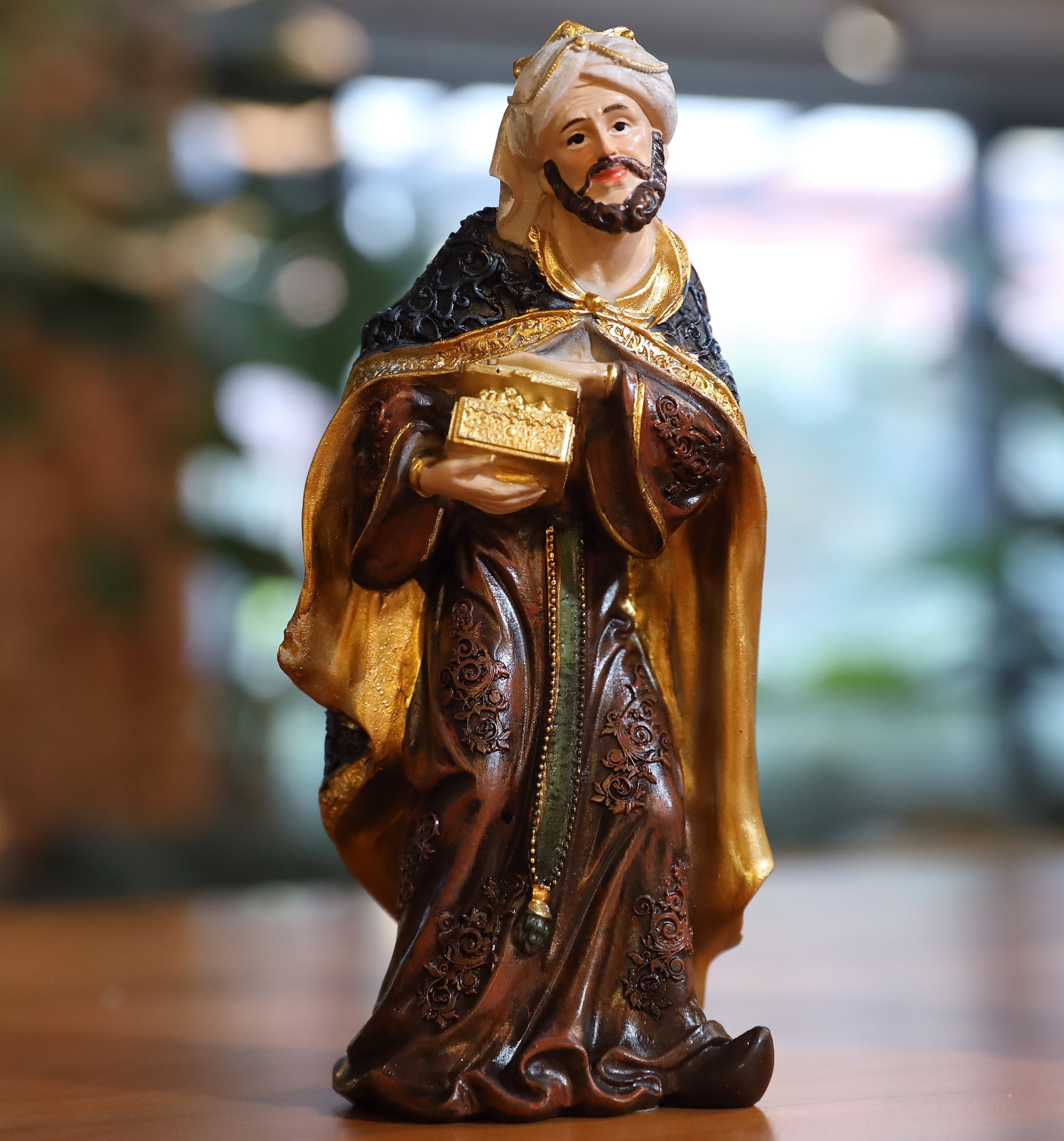Nativity set includes 11 hand-painted figures: Joseph, Mary, Baby Jesus, Shepherds, Angel, The Three Kings, Cow, Sheep, and Donkey Figures are carefully constructed of high-quality resin and stone material, ensuring durability and longevity Zayton collection is prized for its attention to color, detail, and the positioning of the figures’ hands, faces, and bodies Dimensions: