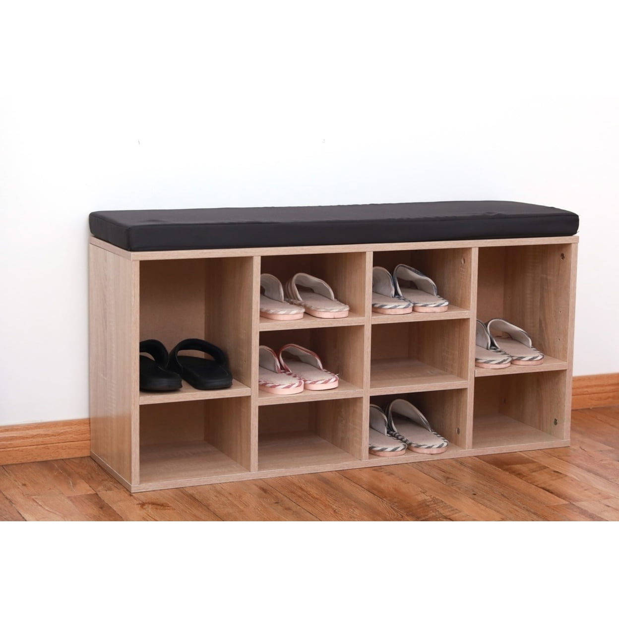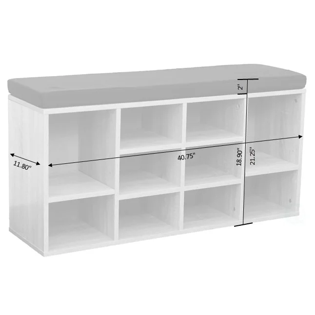 Dimensions: 11.75″ W x 40.75″ D x 19″ H Easy to assemble – Can be used as a shoe organizer, bedroom and hall way bench Bench base provides superior stability compared to bench legs or feet Features 10 cubbies of various sizes, useful for storing both shoes and boots Large top has a comfy cushion when you need a seat The Basicwise Natural Wooden Shoe Cubicle Storage Entryway Bench with Soft Cushion for Seating combines the comfort of a cushioned bench and cubby shoe storage for efficient use of the entryway. The storage bench has 10 cubbies of various sizes, useful for storing both shoes and boots.
